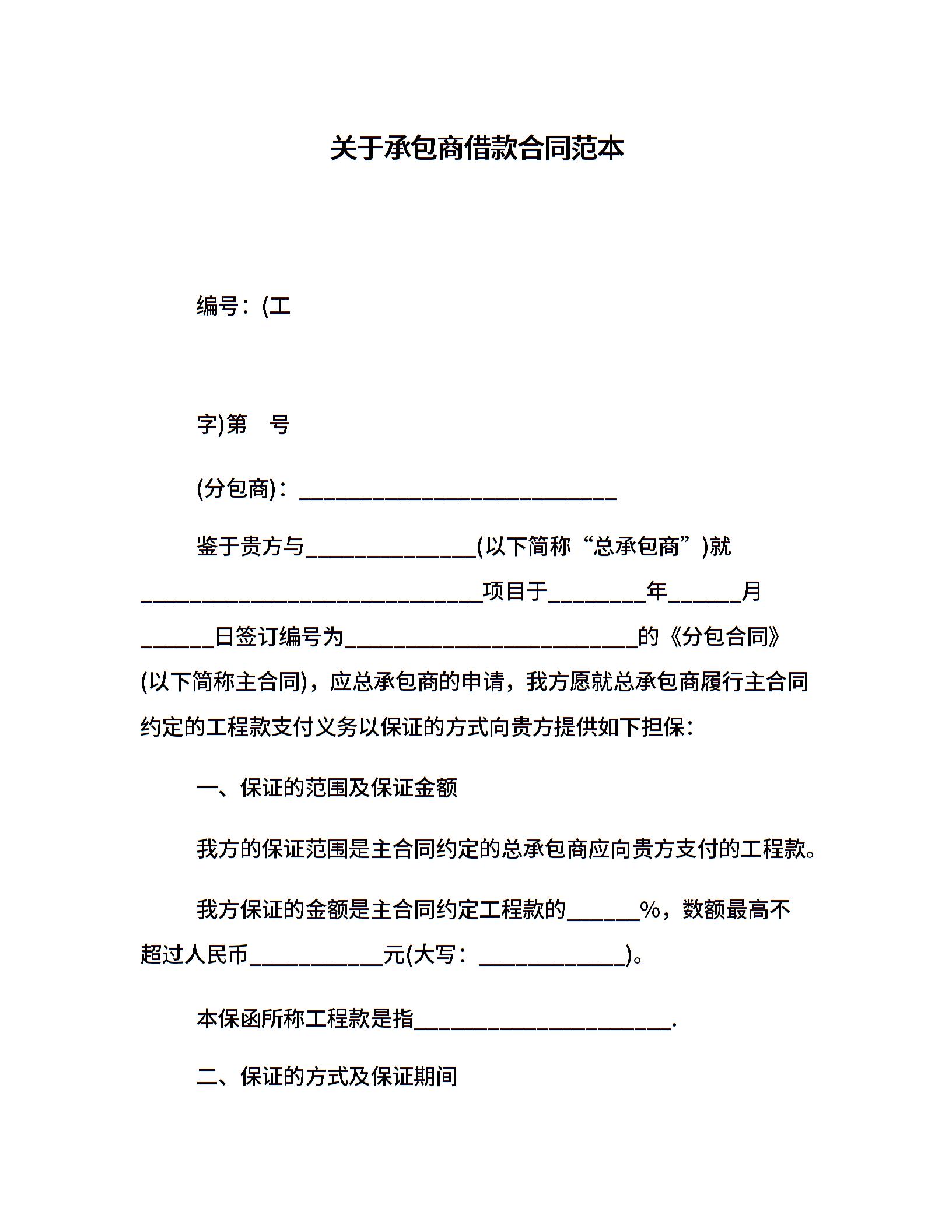 关于承包商借款合同范本