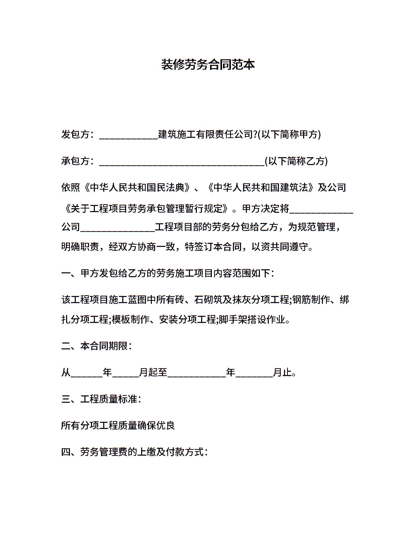装修劳务合同范本