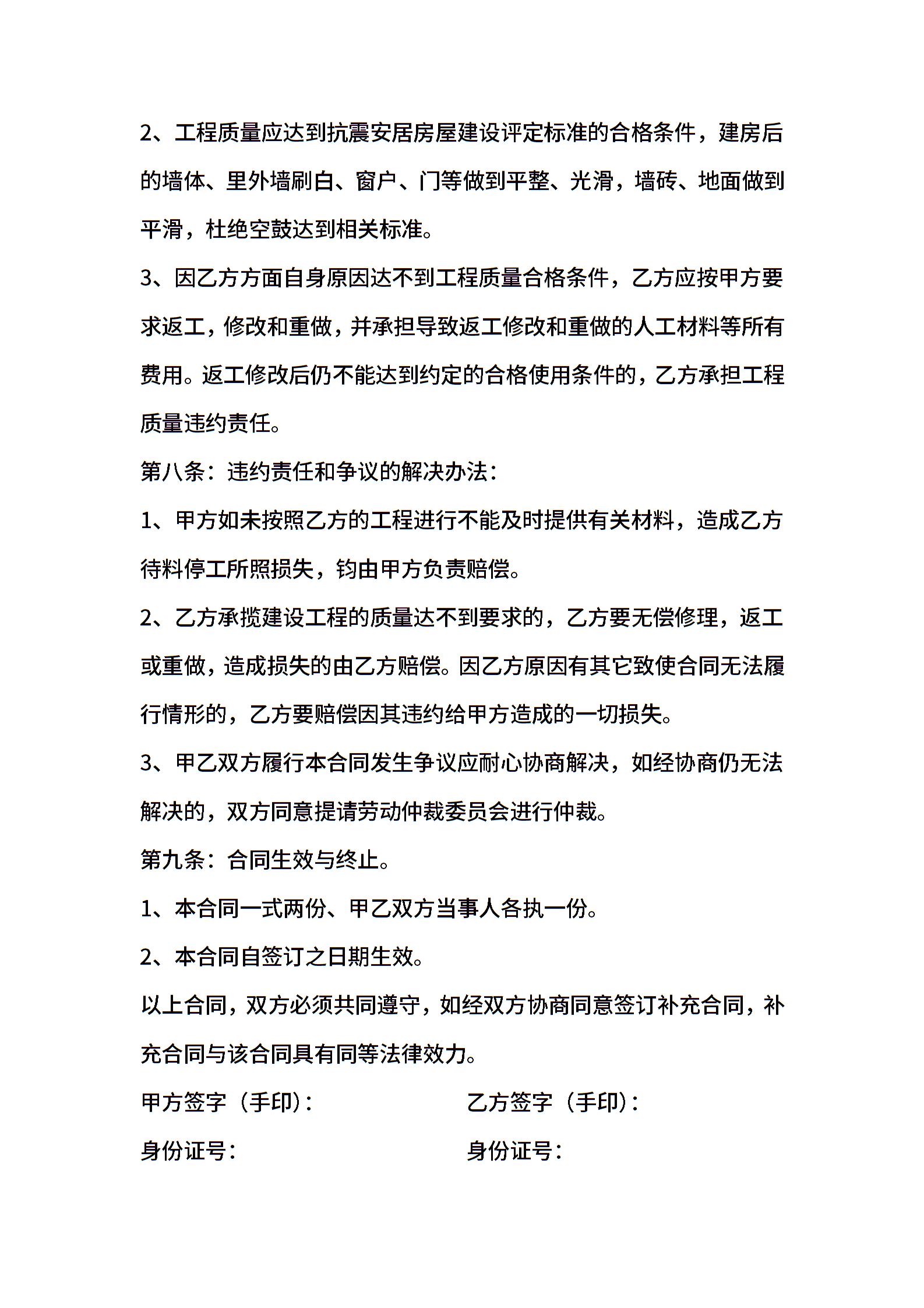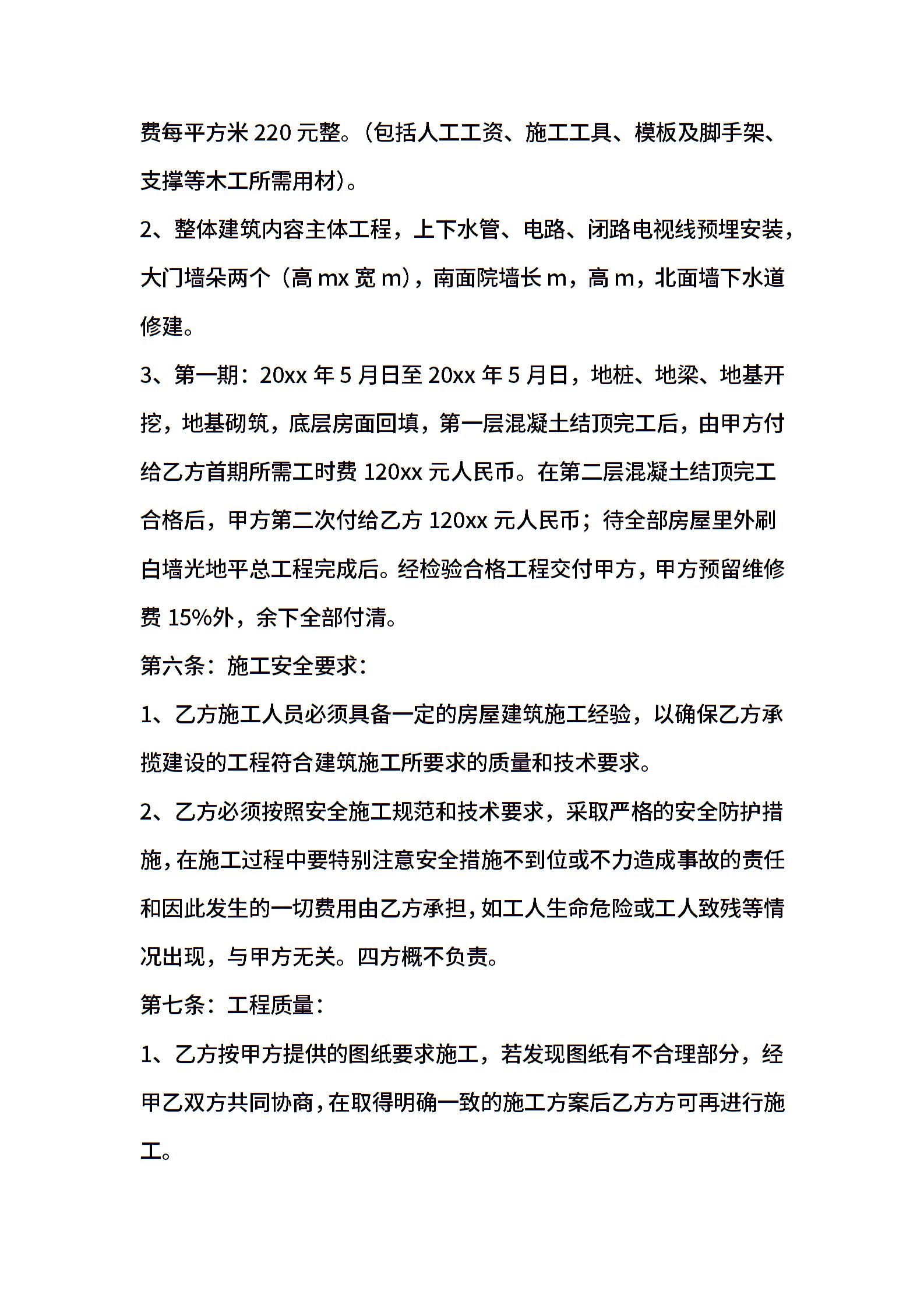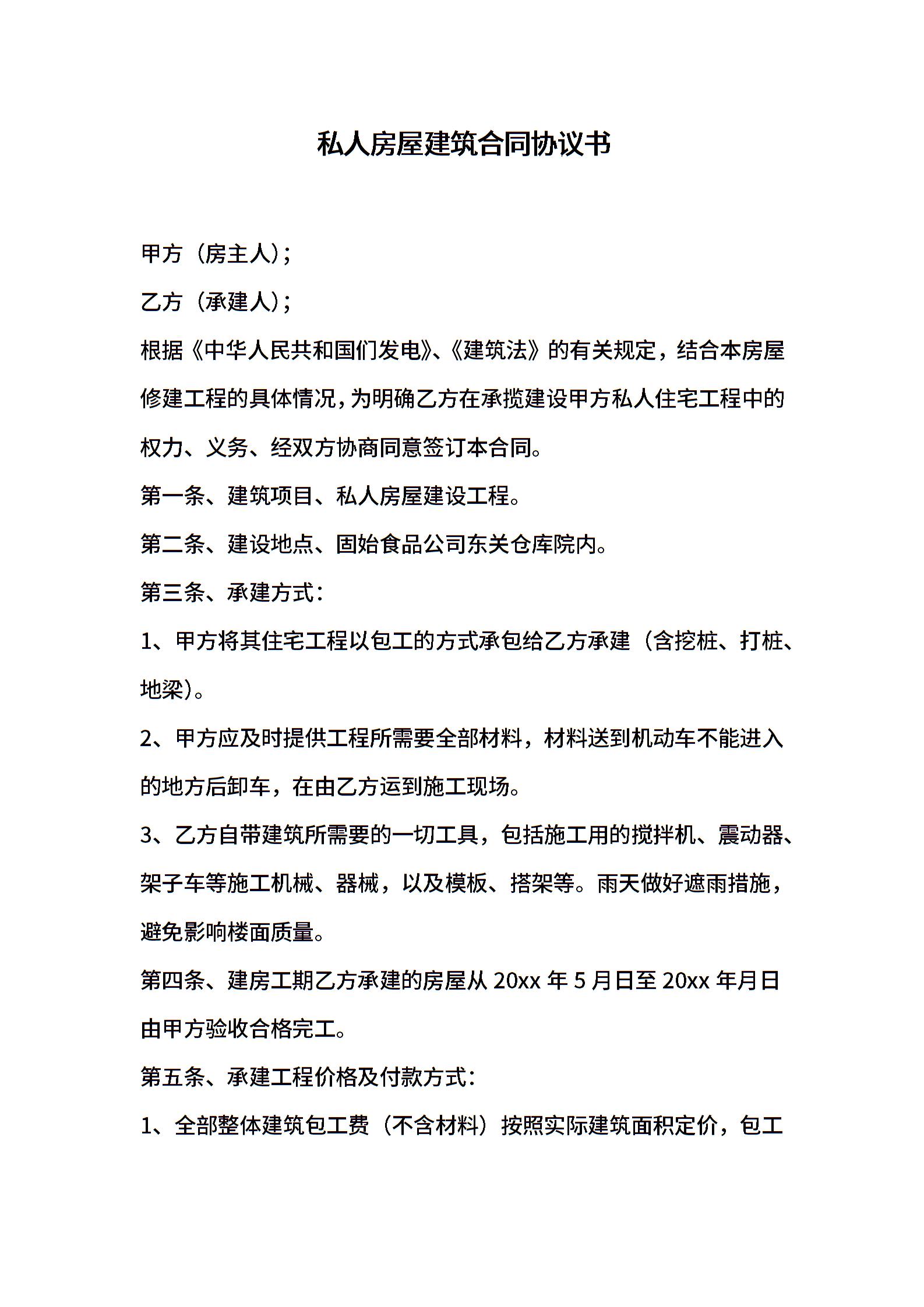 私人房屋建筑合同协议书