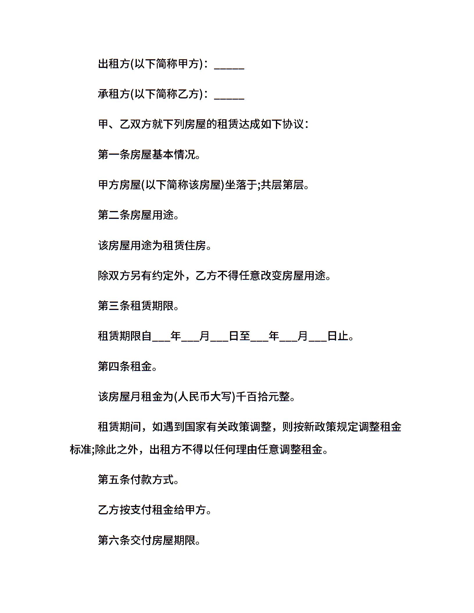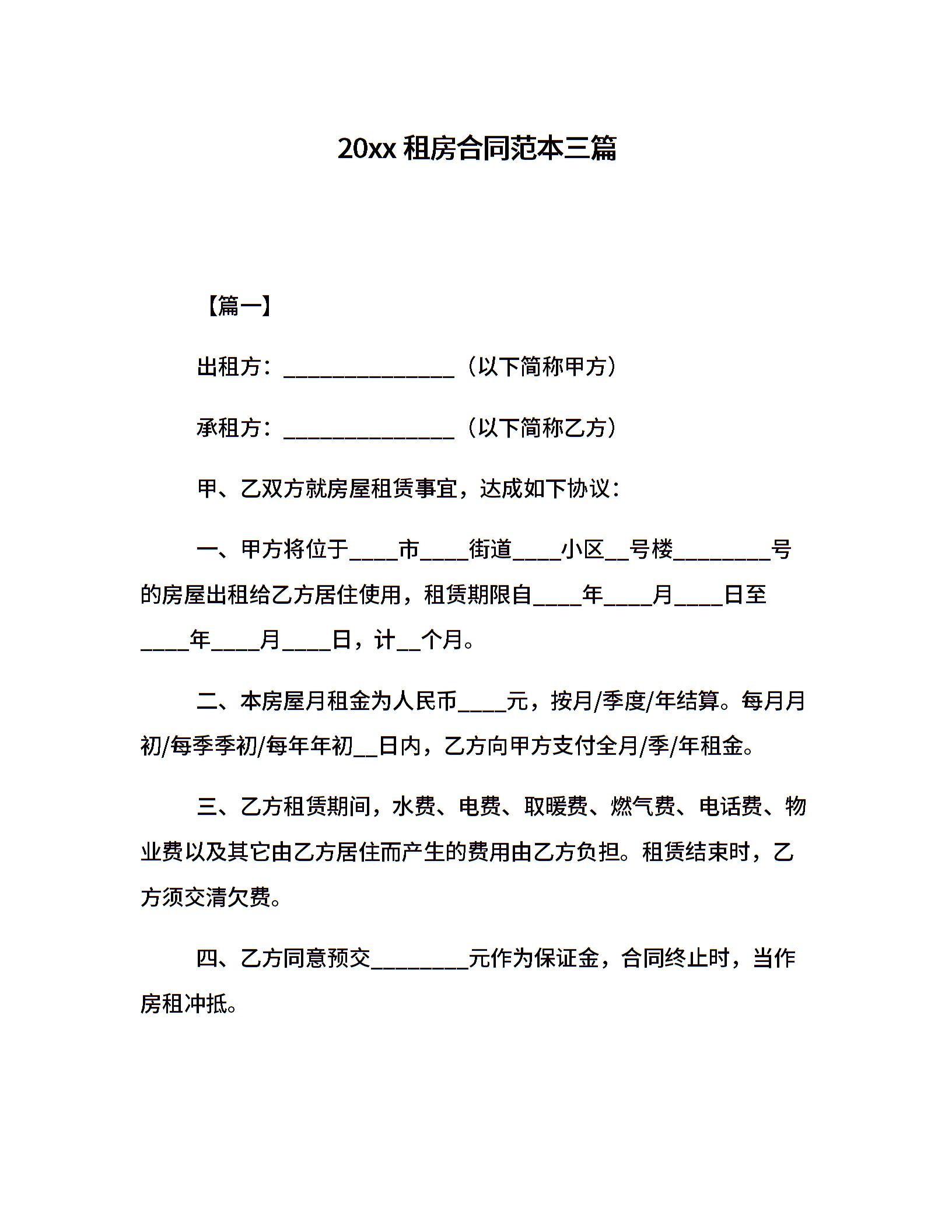20xx租房合同范本三篇