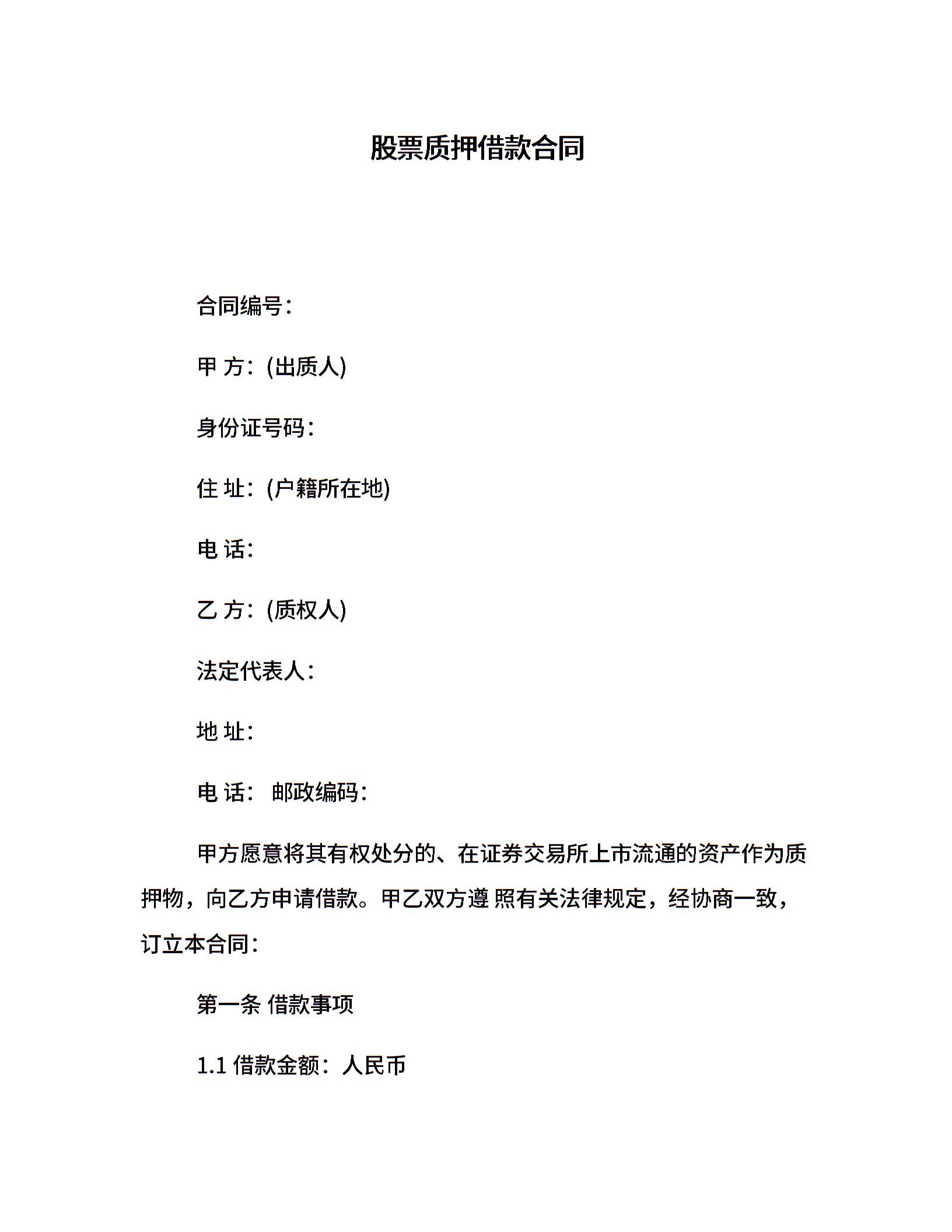 股票质押借款合同
