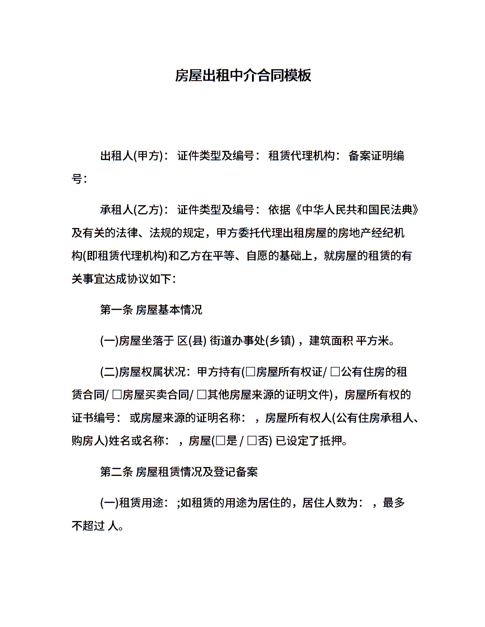 房屋出租中介合同模板