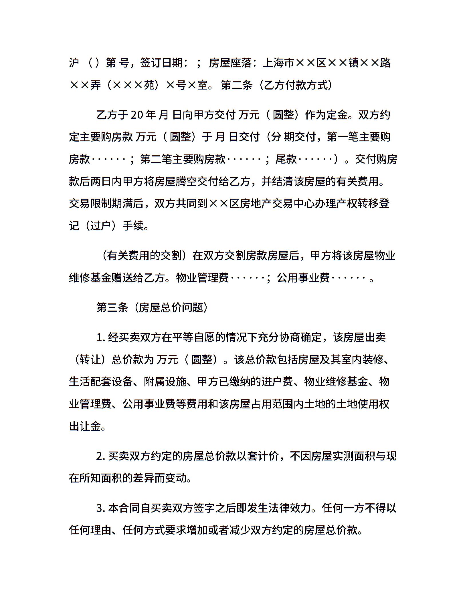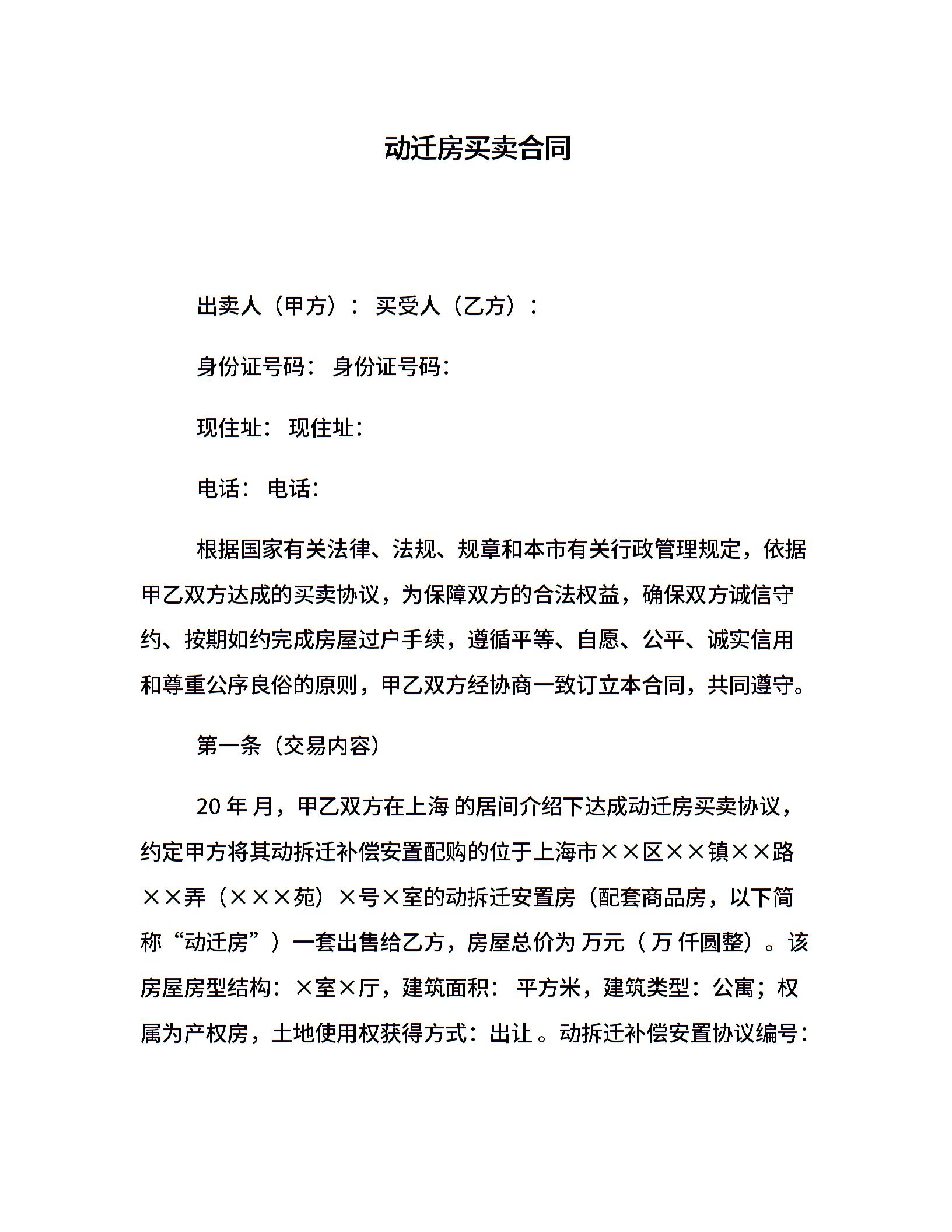 动迁房买卖合同
