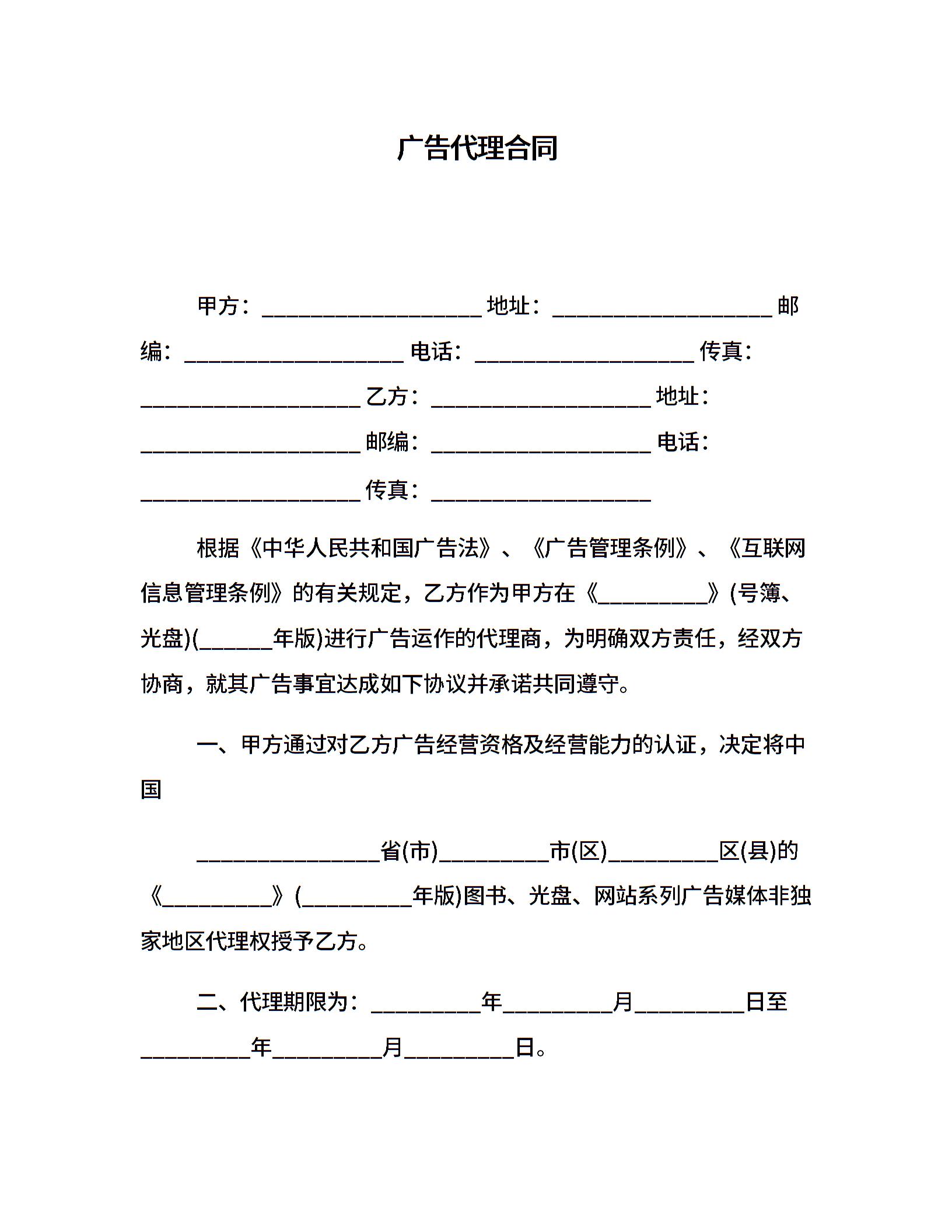 当前位置:量子办公 > 合同模板 > 代理合同 >