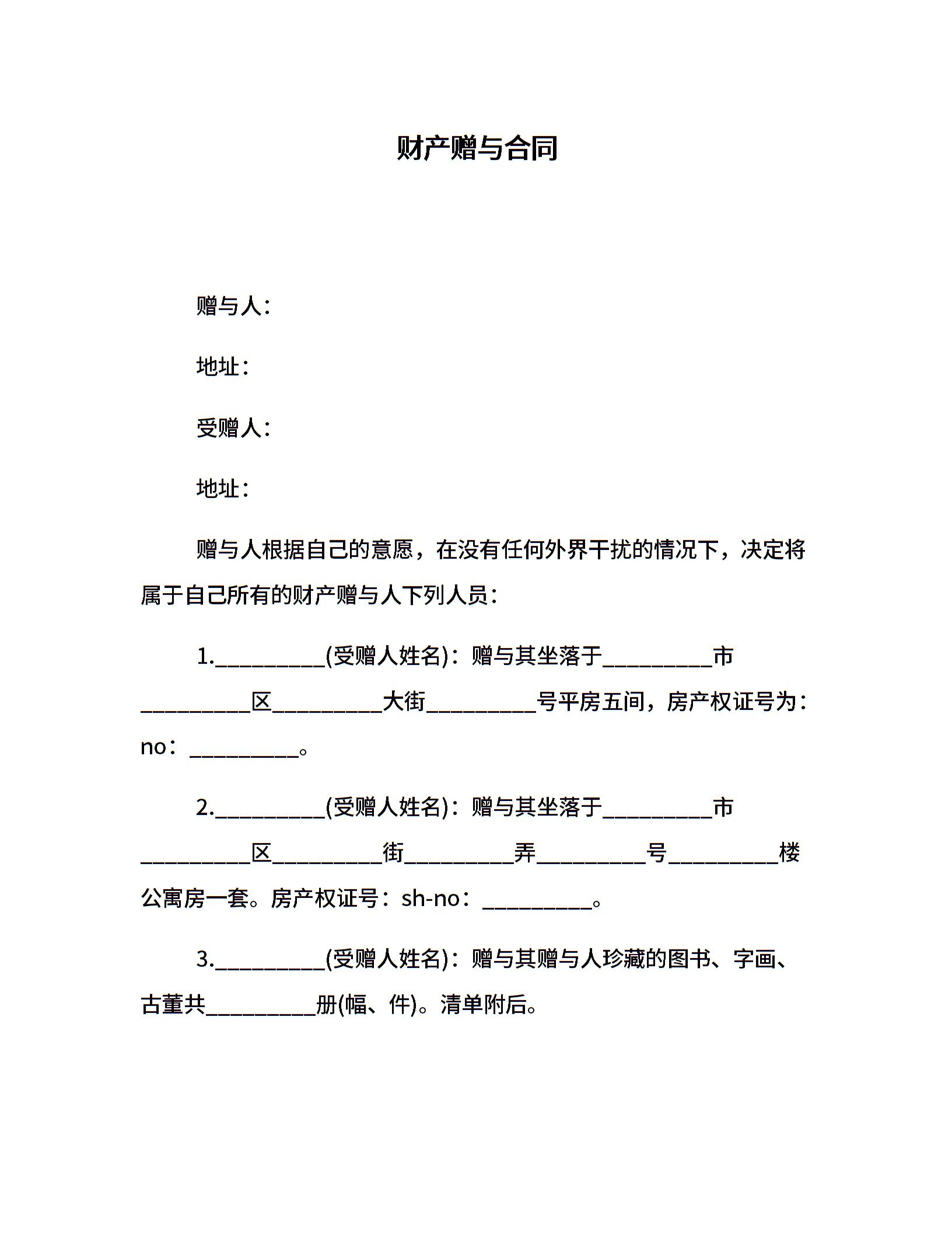 财产赠与合同