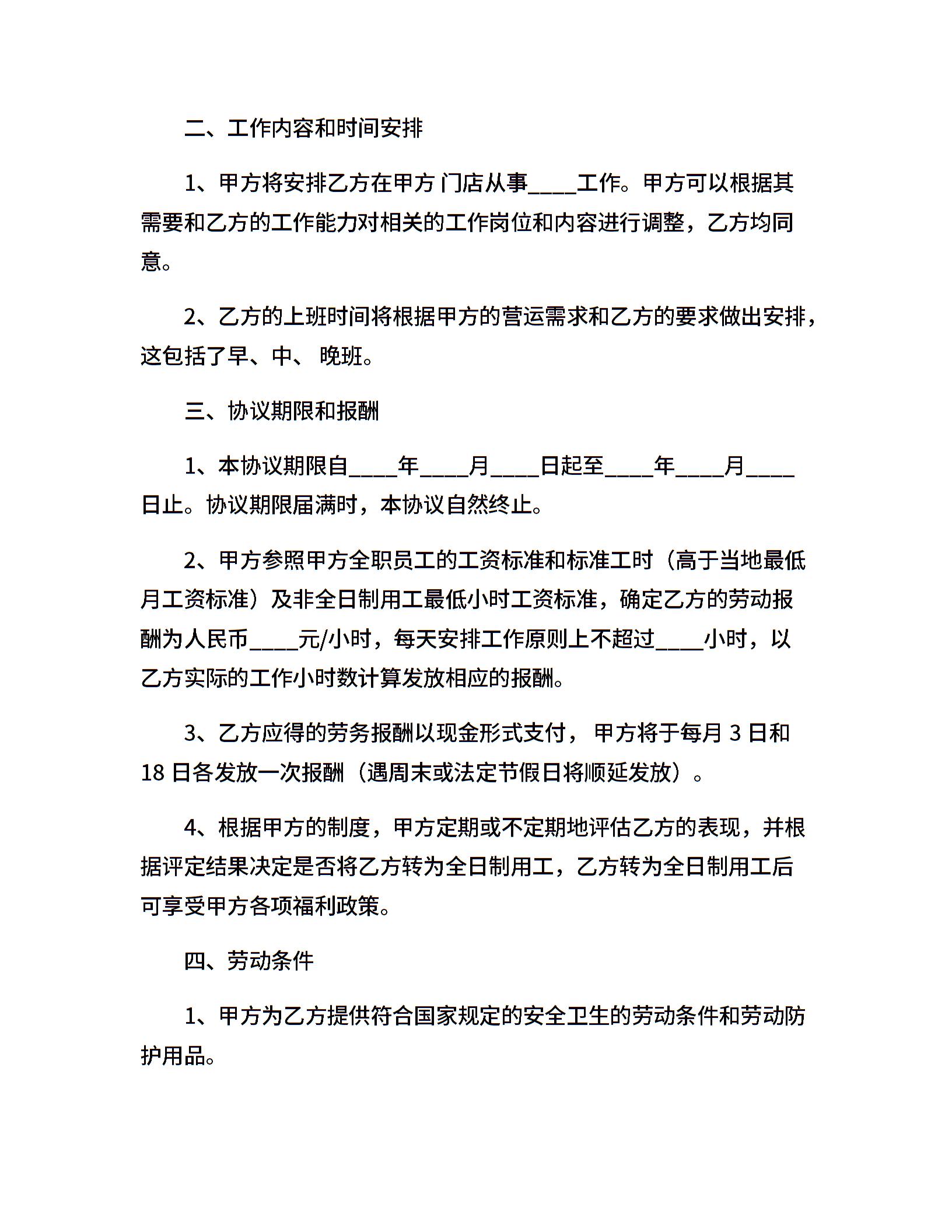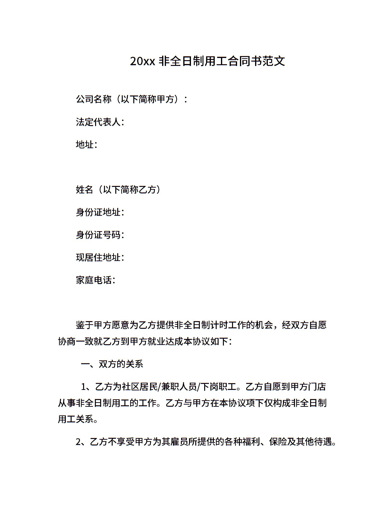 20xx非全日制用工合同书范文