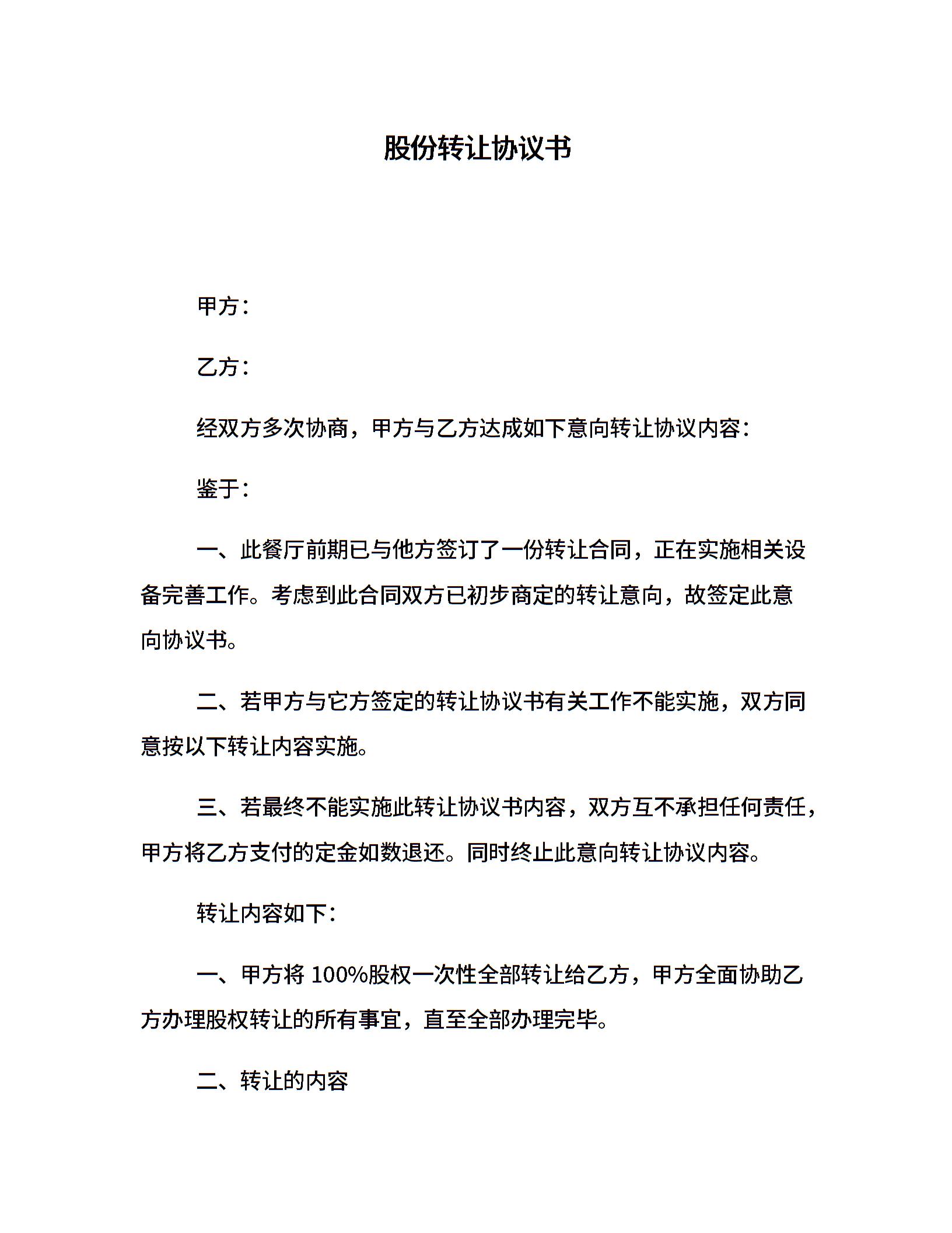 股份转让协议书