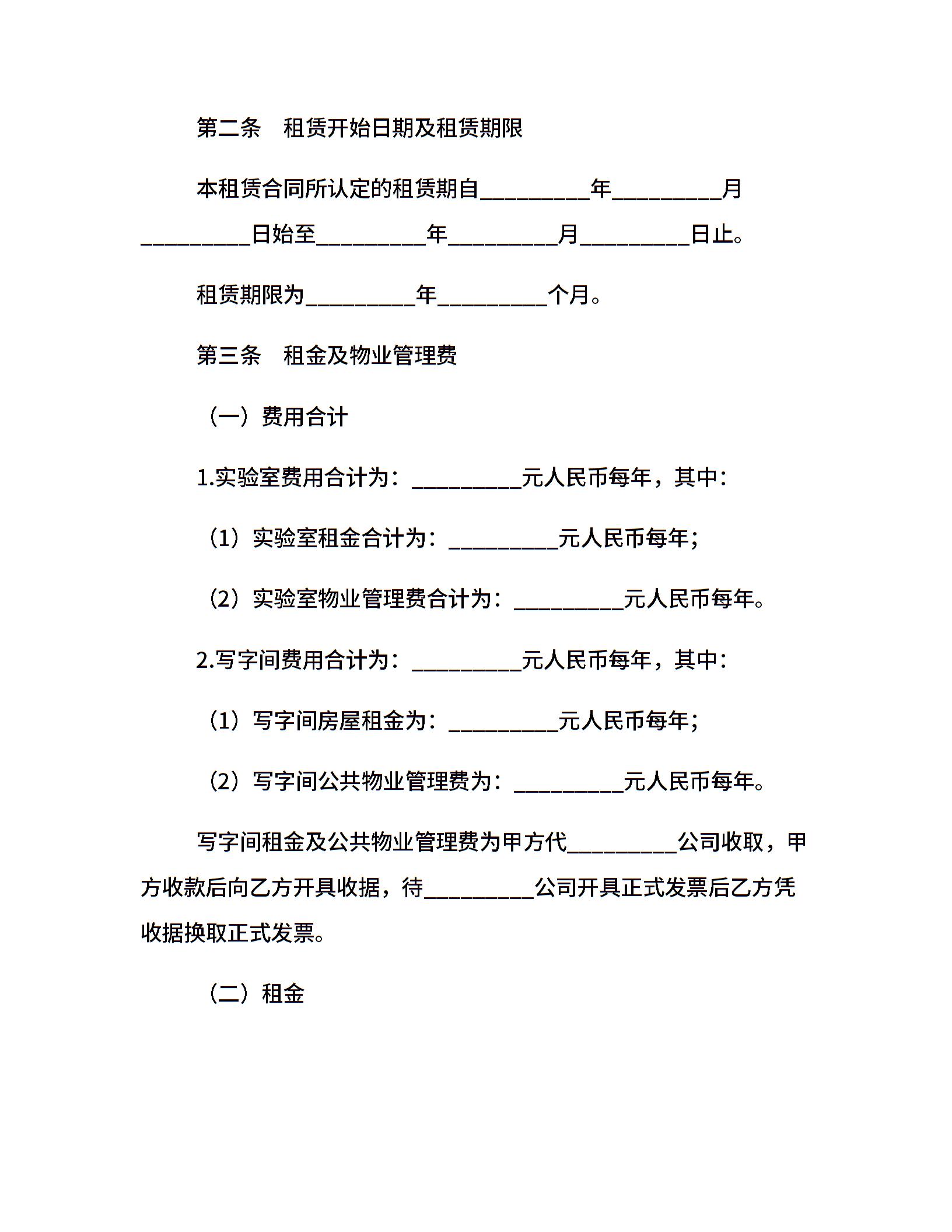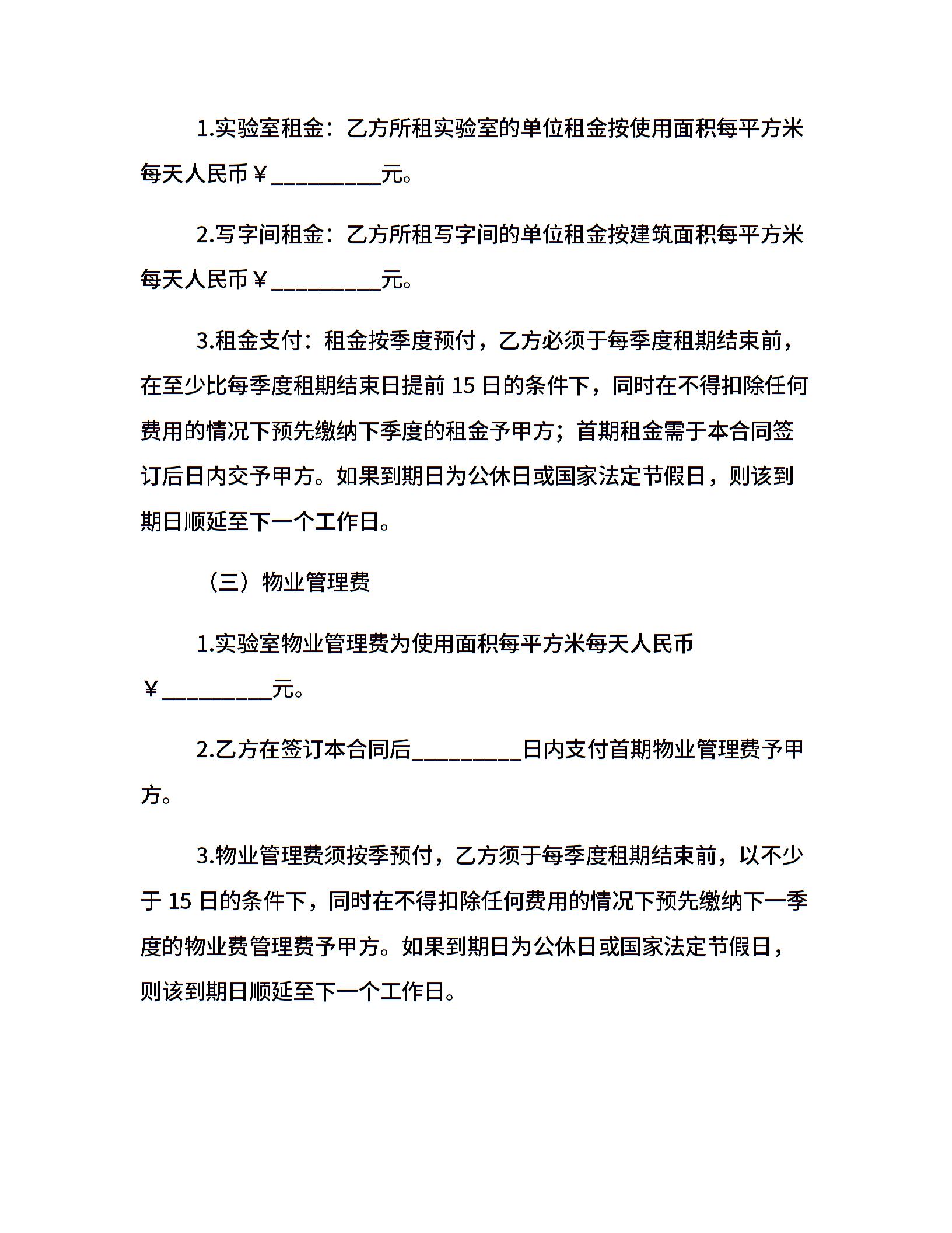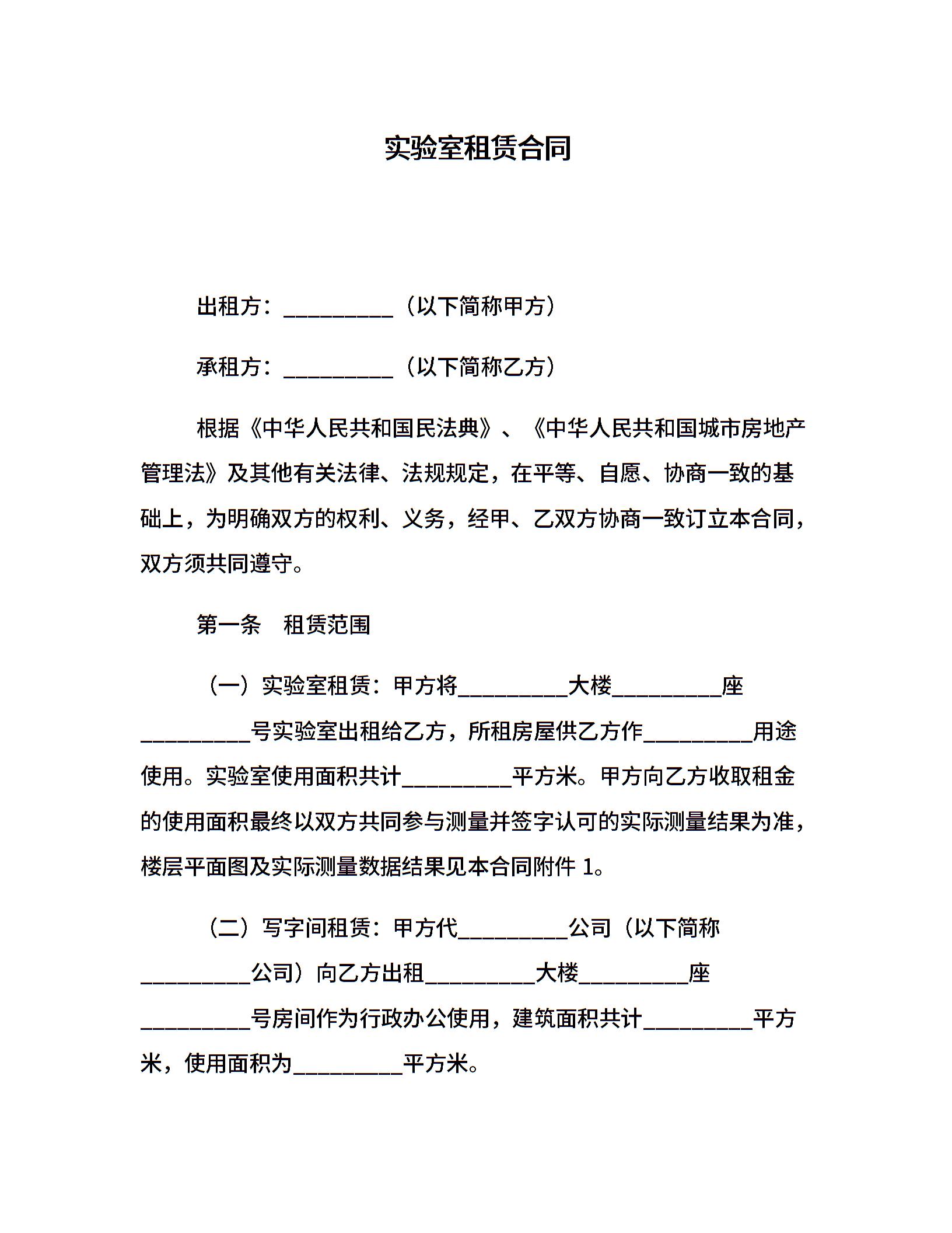 实验室租赁合同