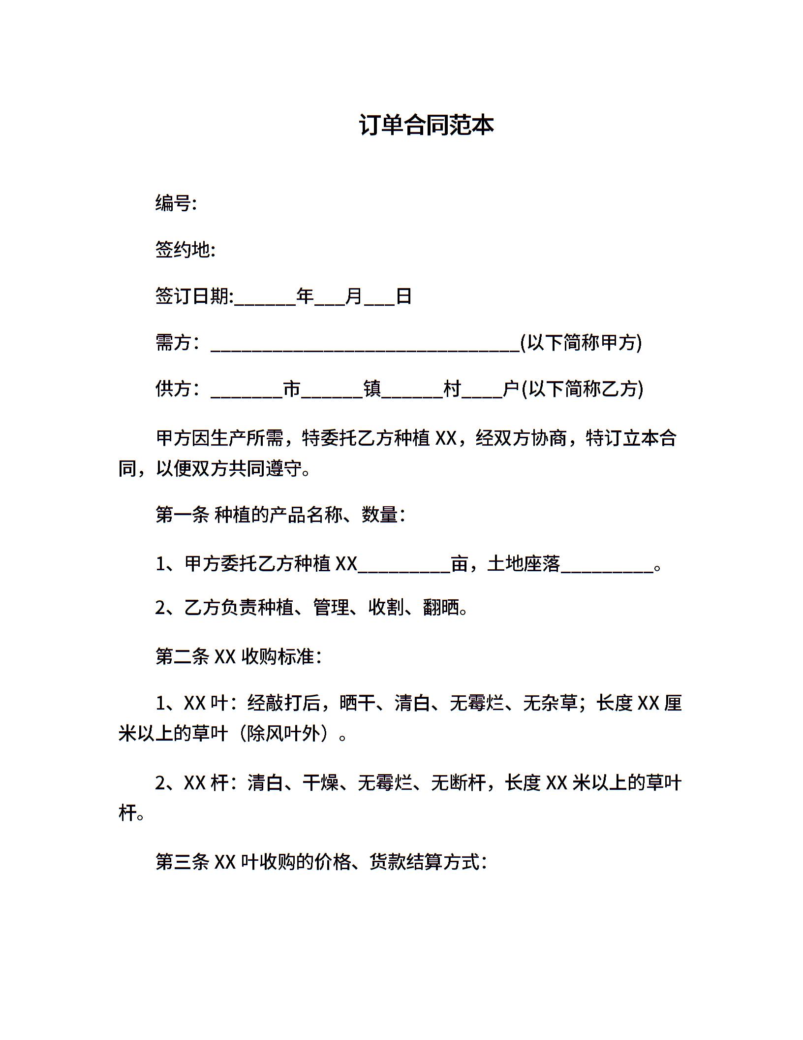 订单合同范本