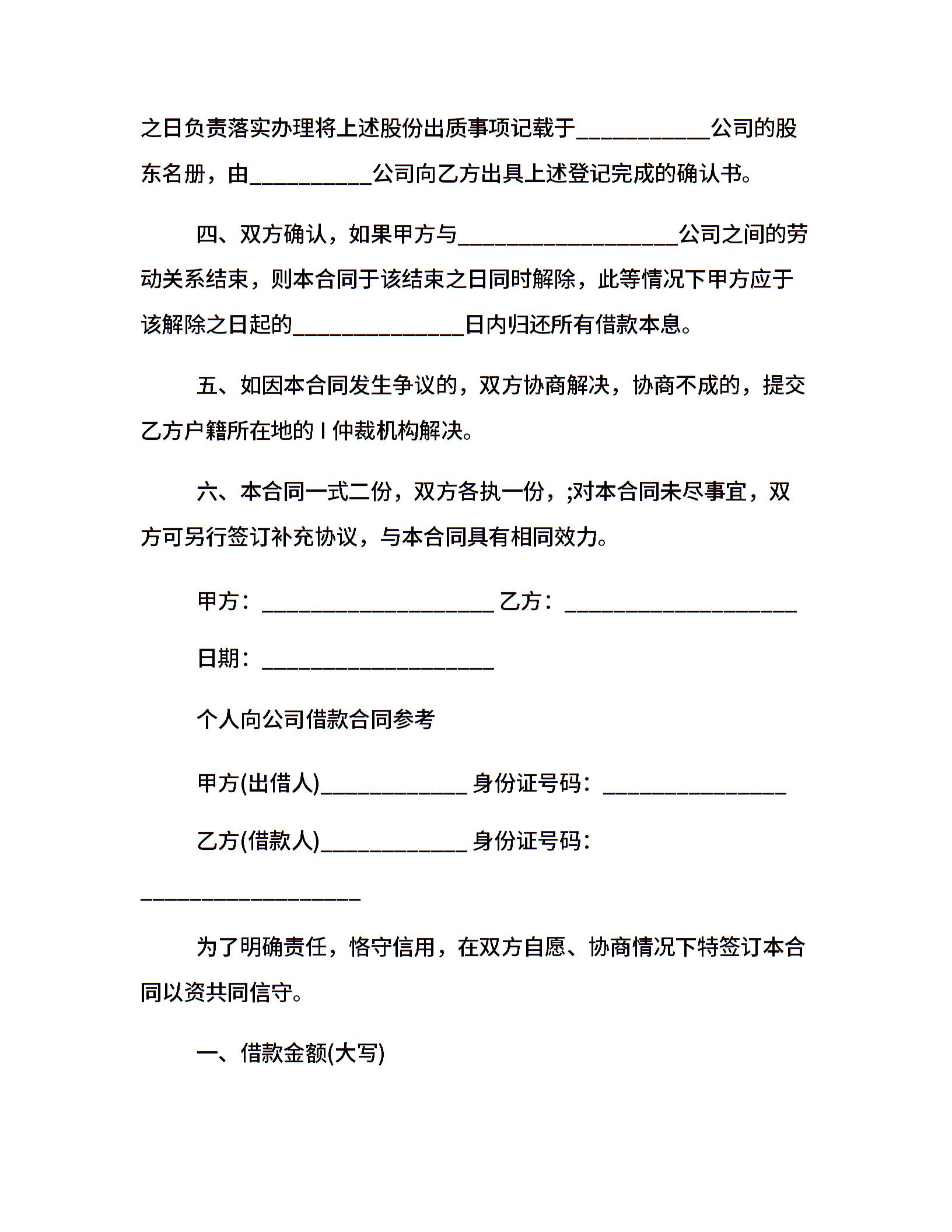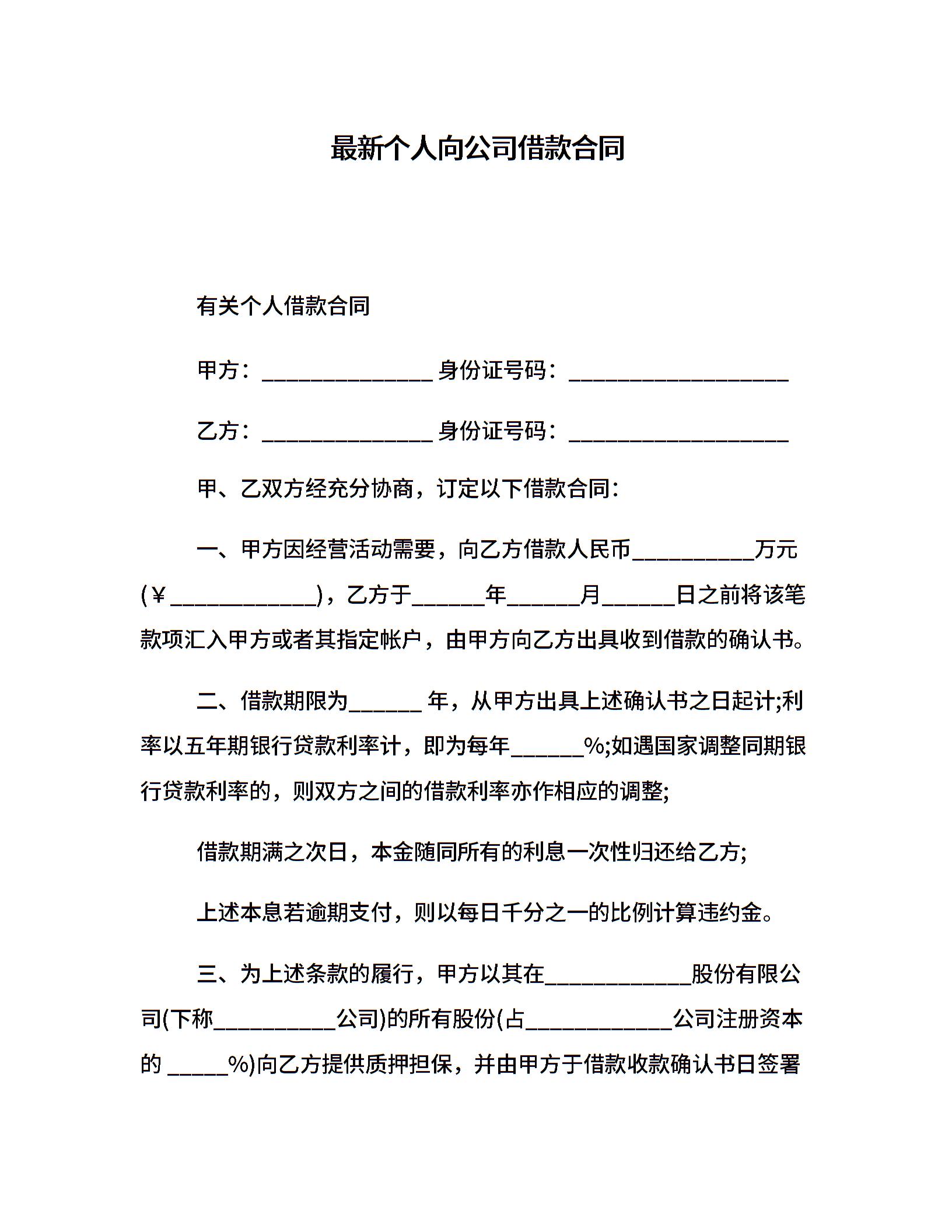 最新个人向公司借款合同