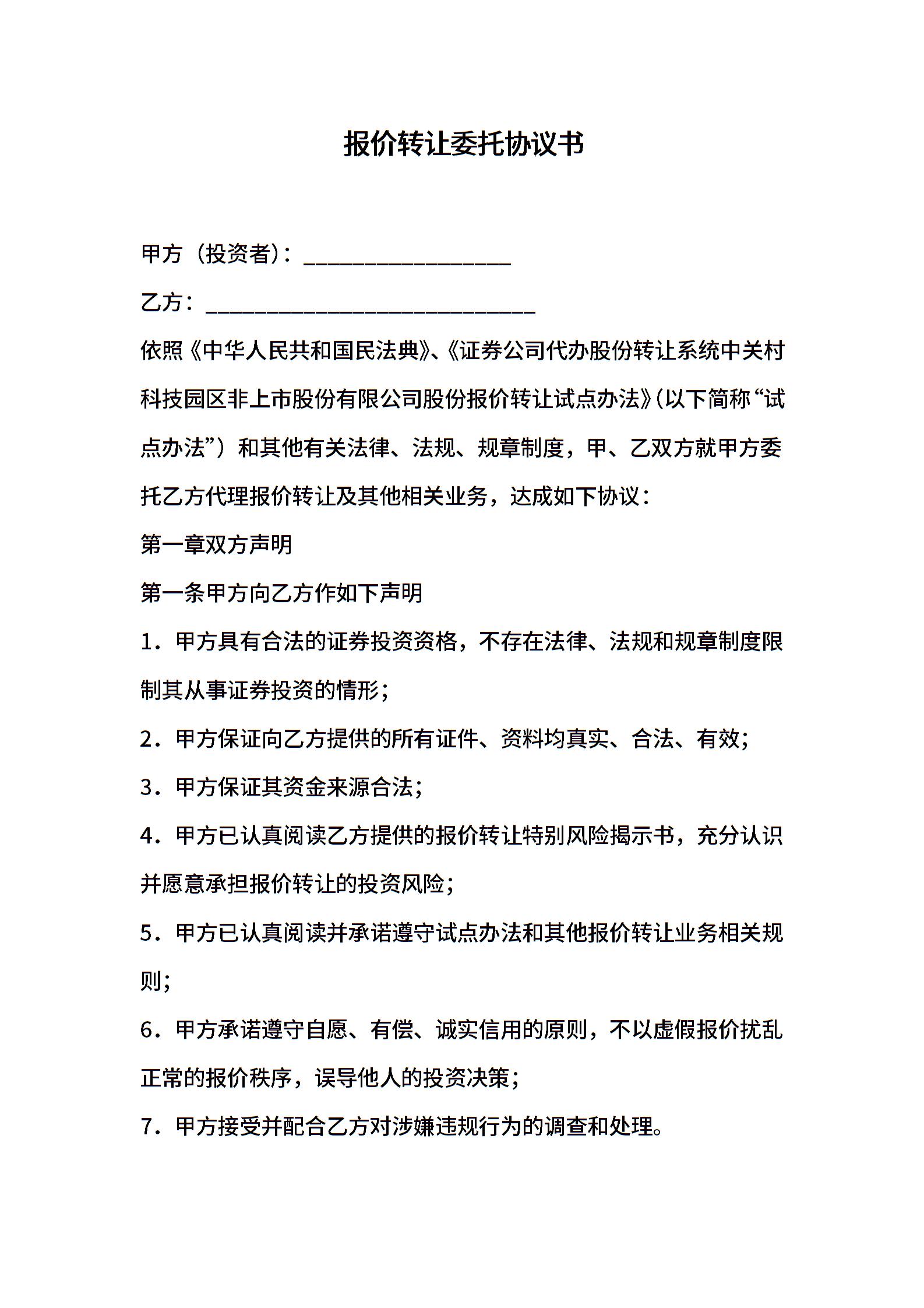 报价转让委托协议书