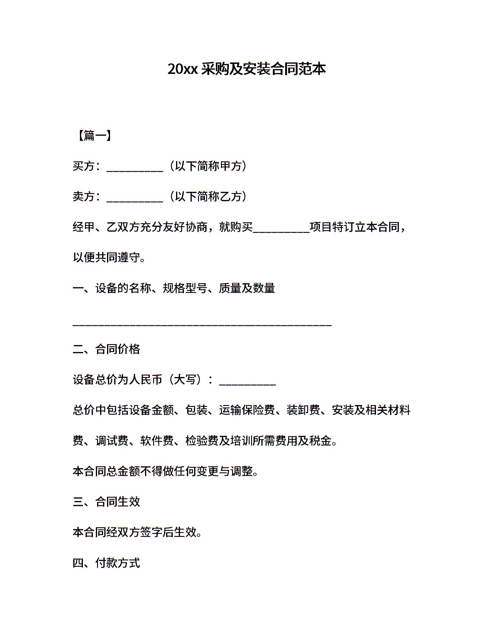 20xx采购及安装合同范本