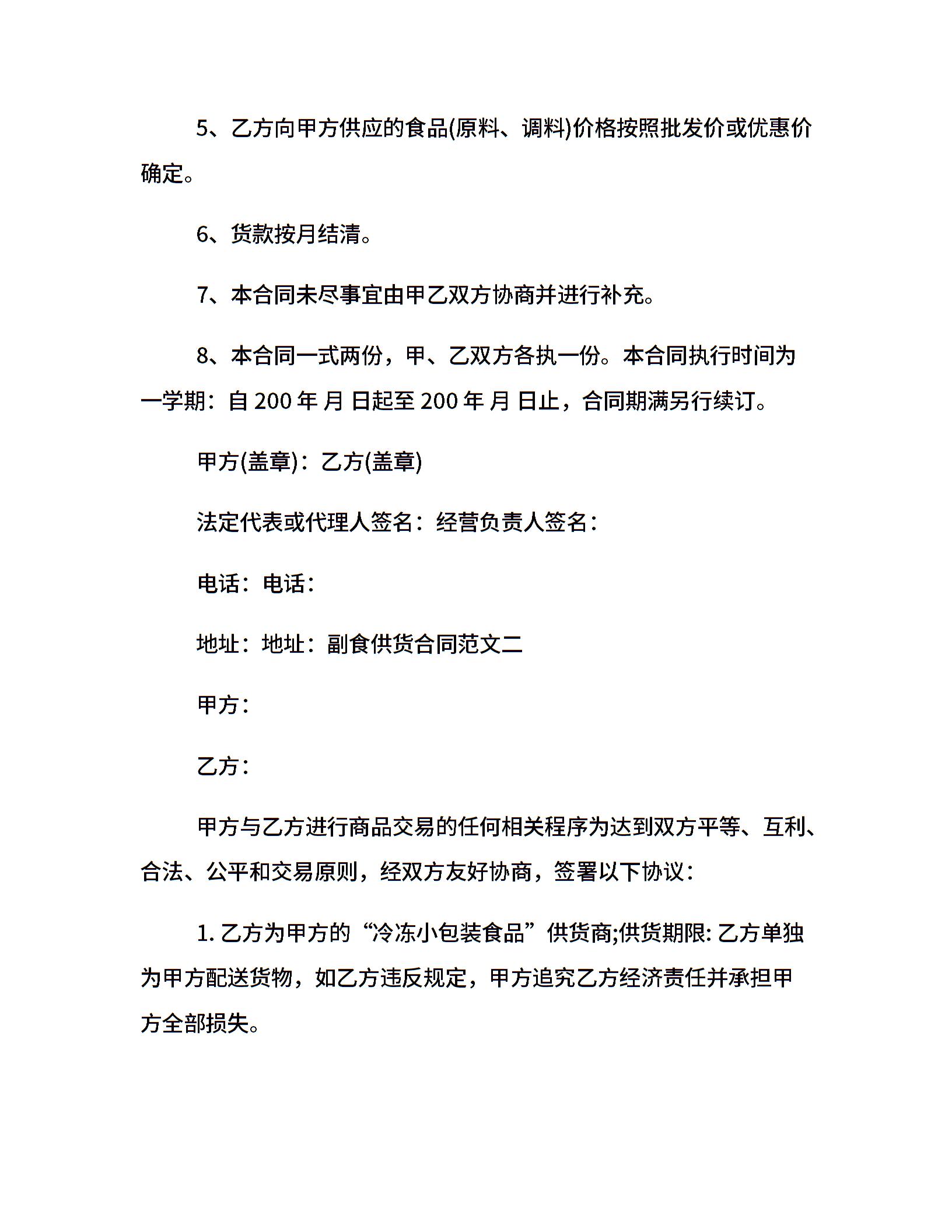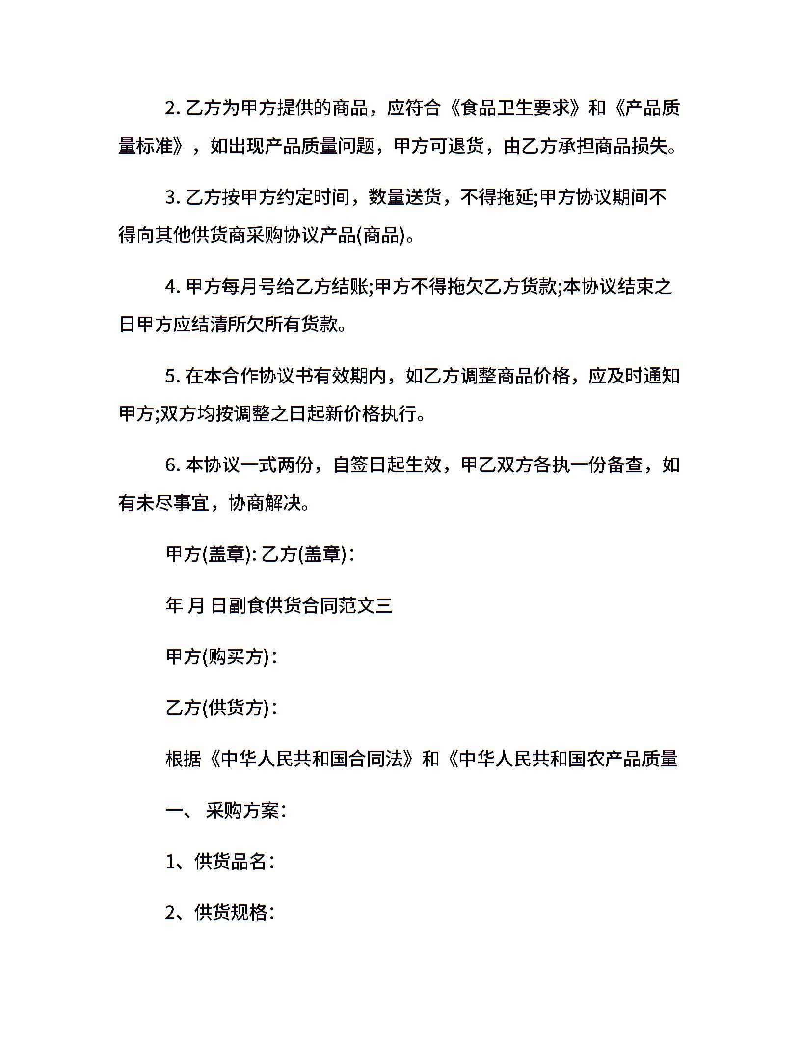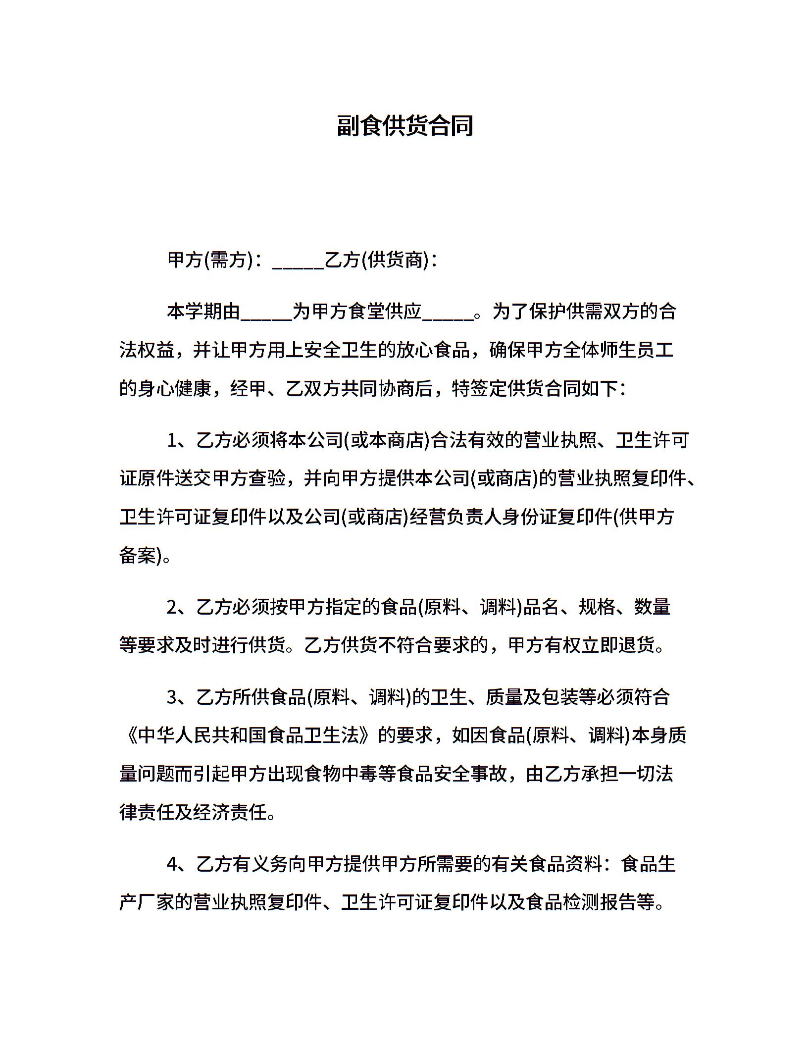 副食供货合同