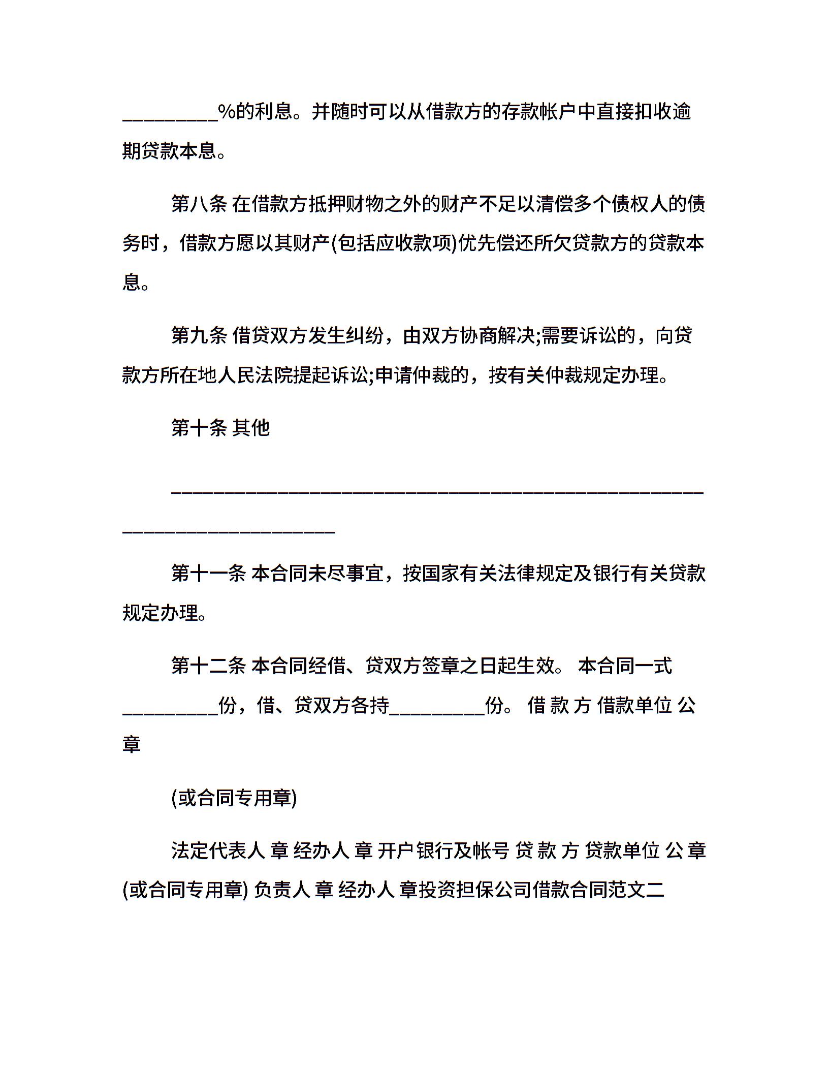 投资担保公司借款合同范本