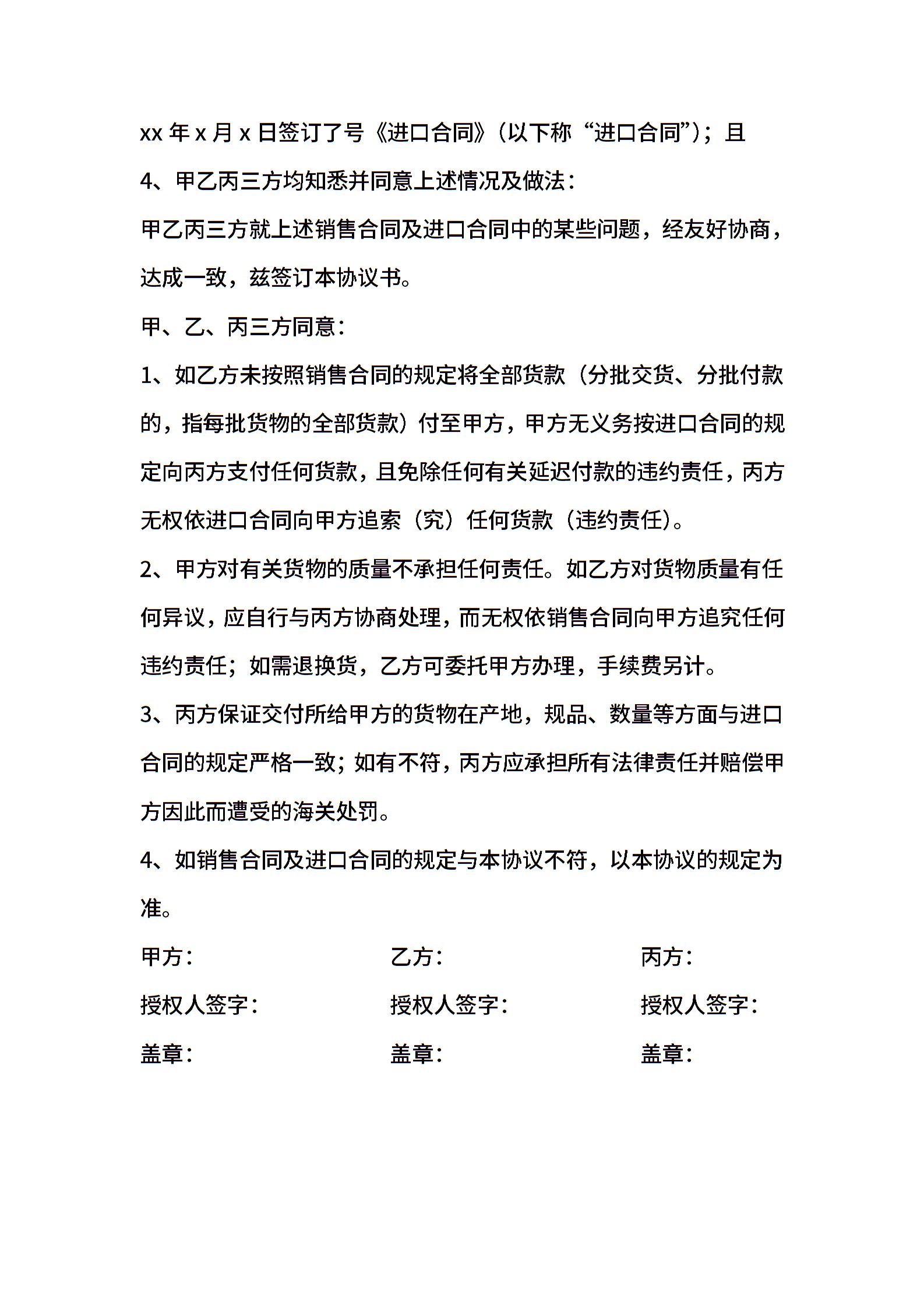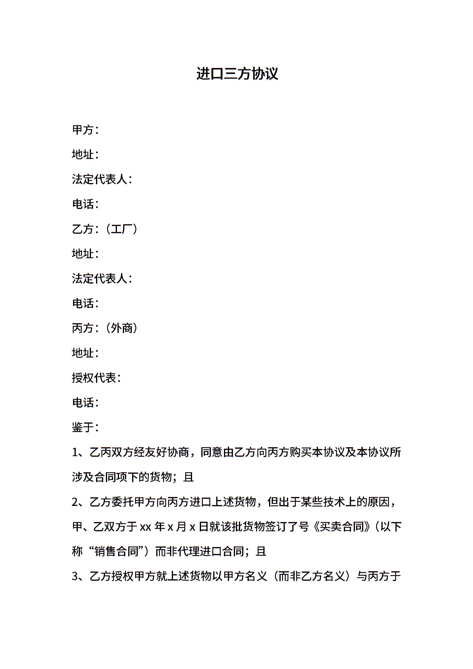 进口三方协议