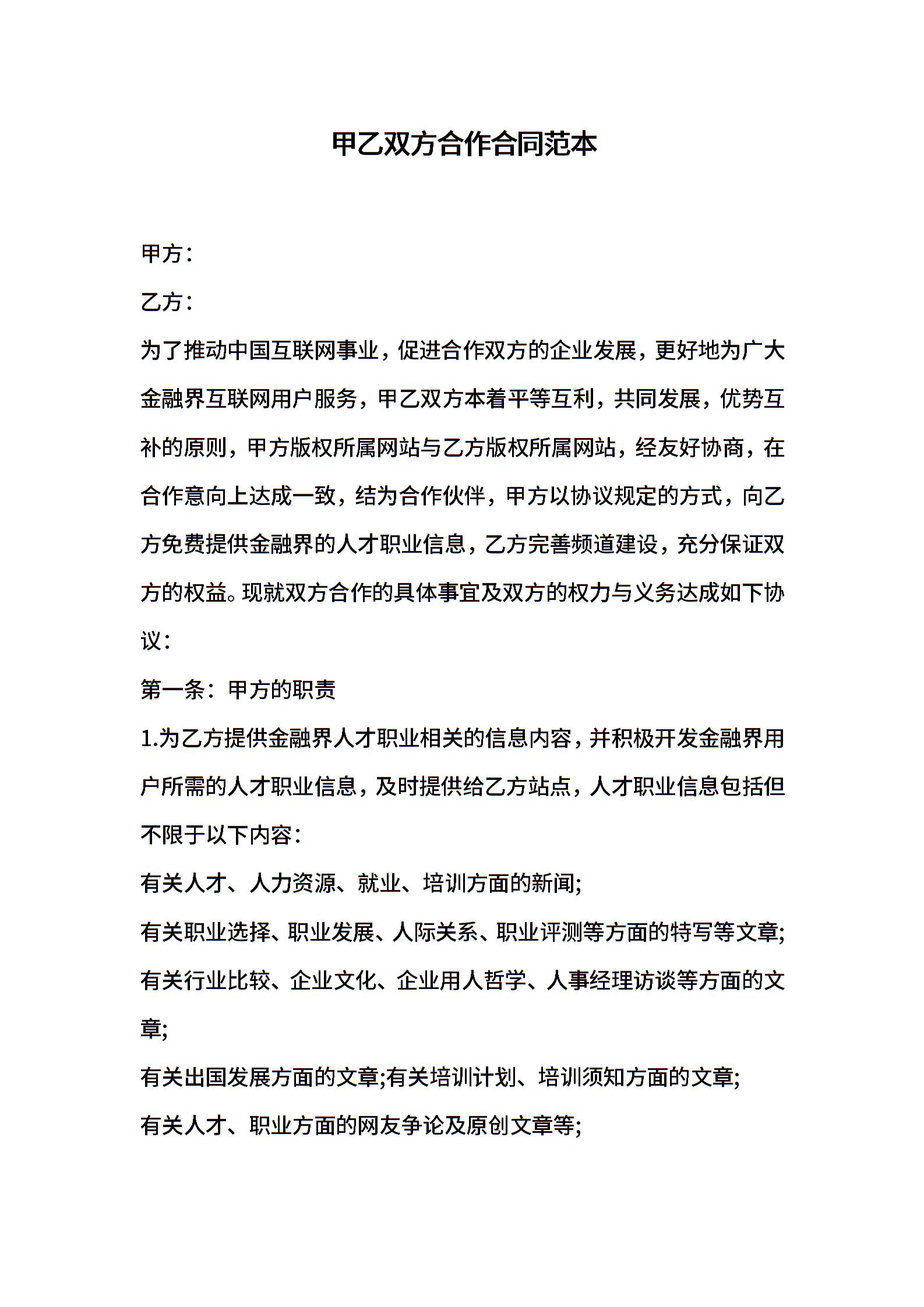 甲乙双方合作合同范本