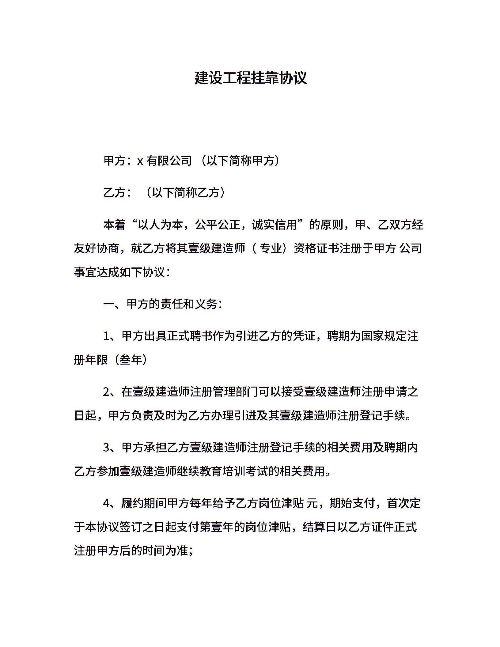 建设工程挂靠协议