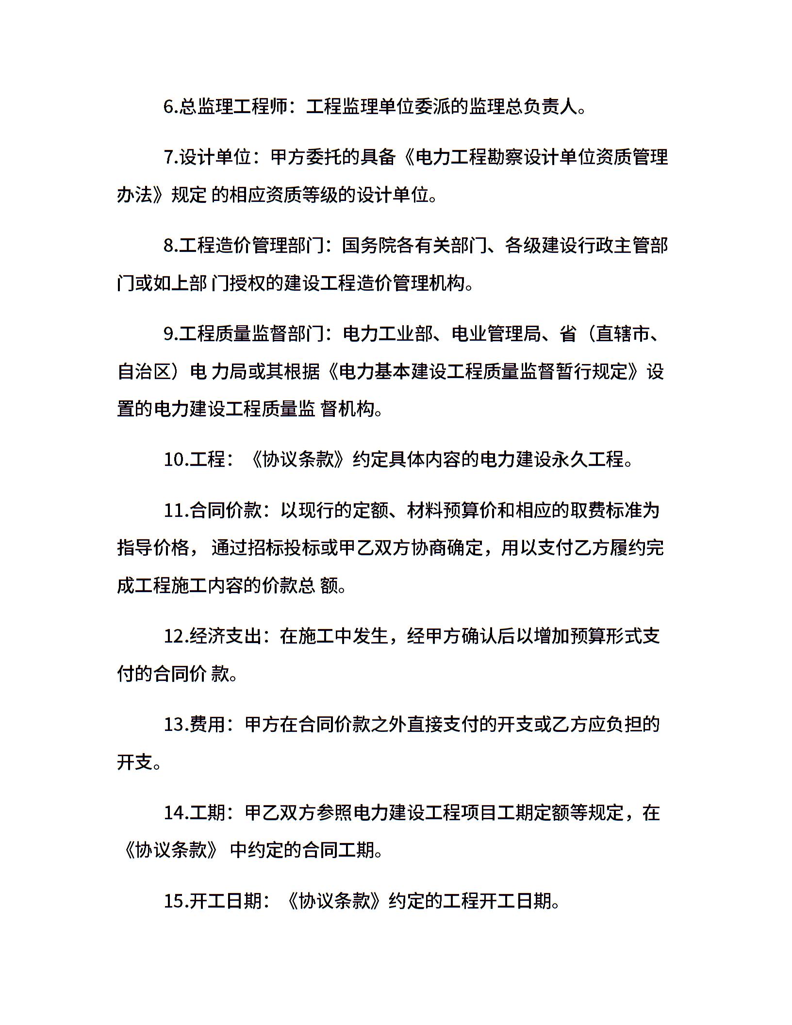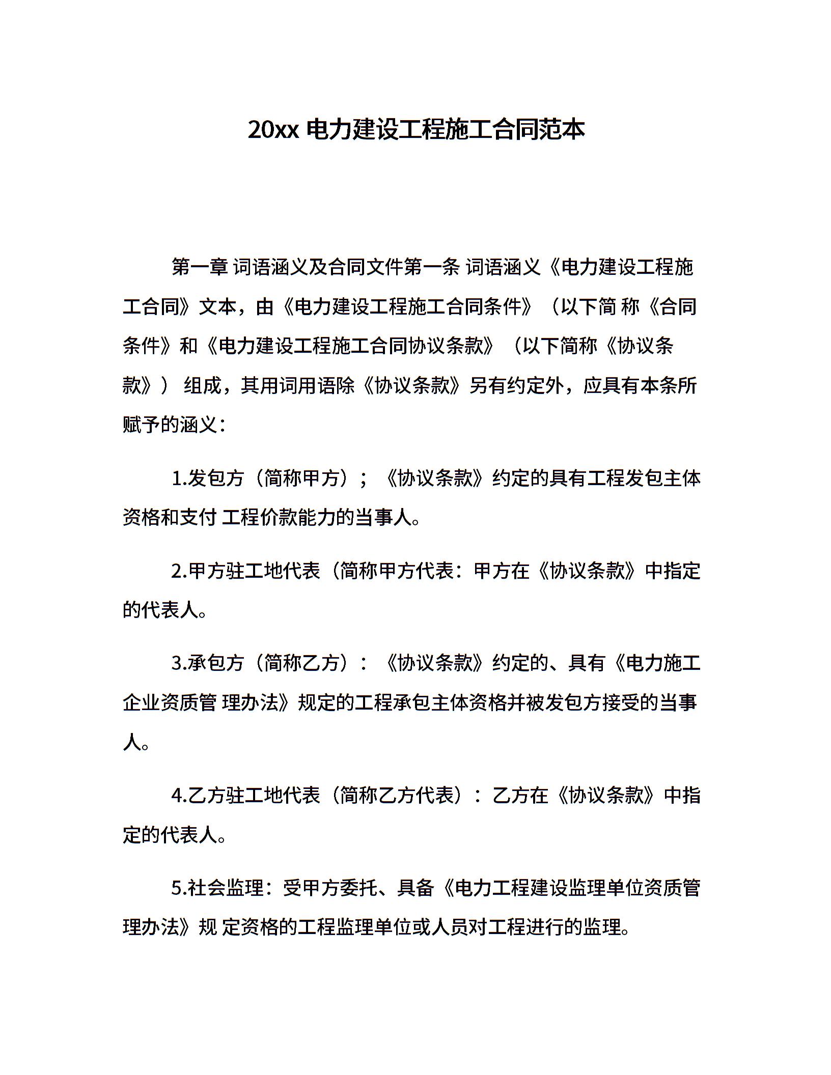 20xx电力建设工程施工合同范本