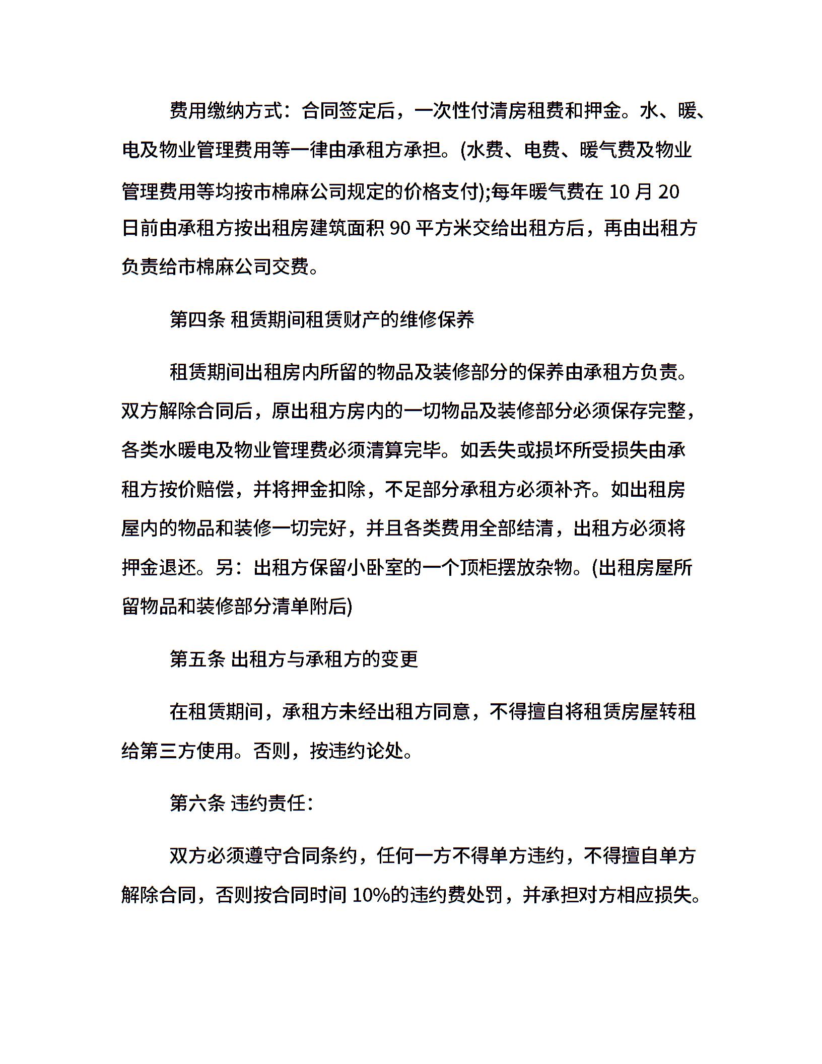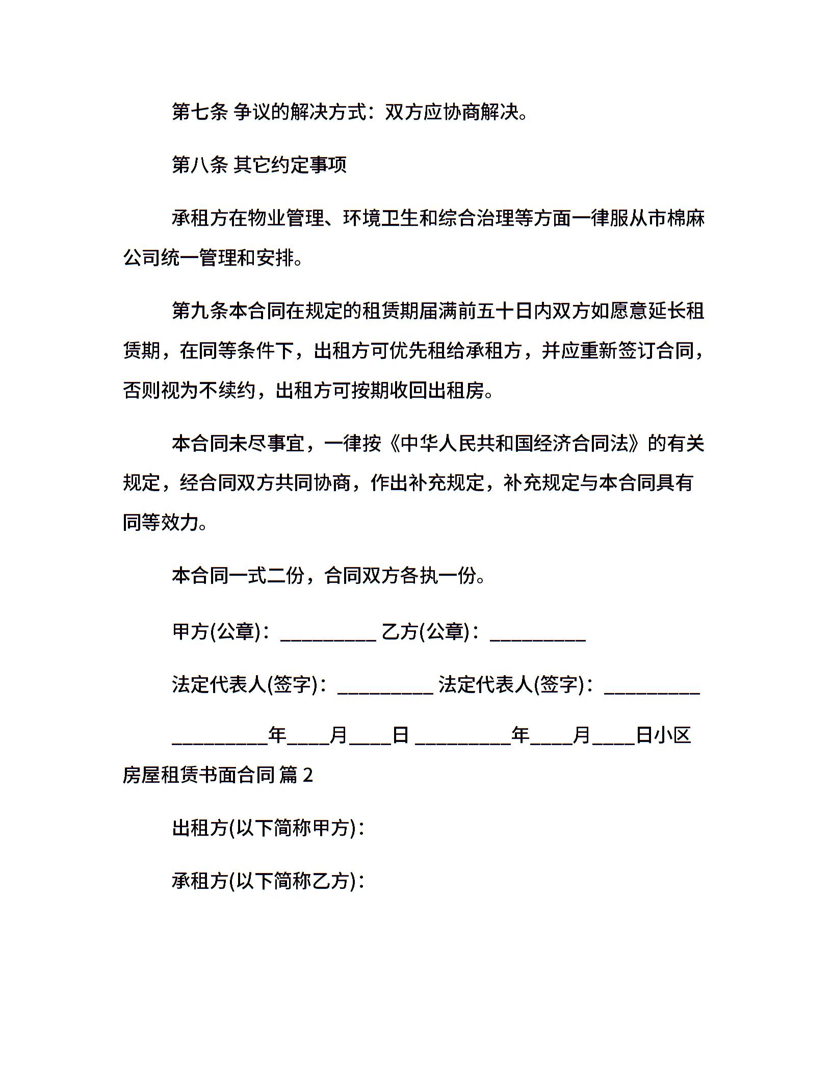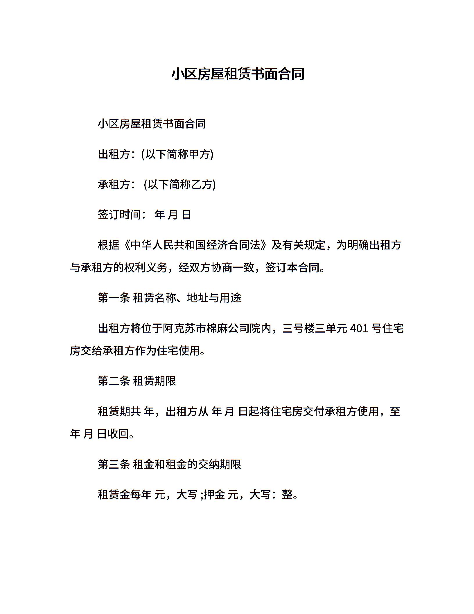 小区房屋租赁书面合同