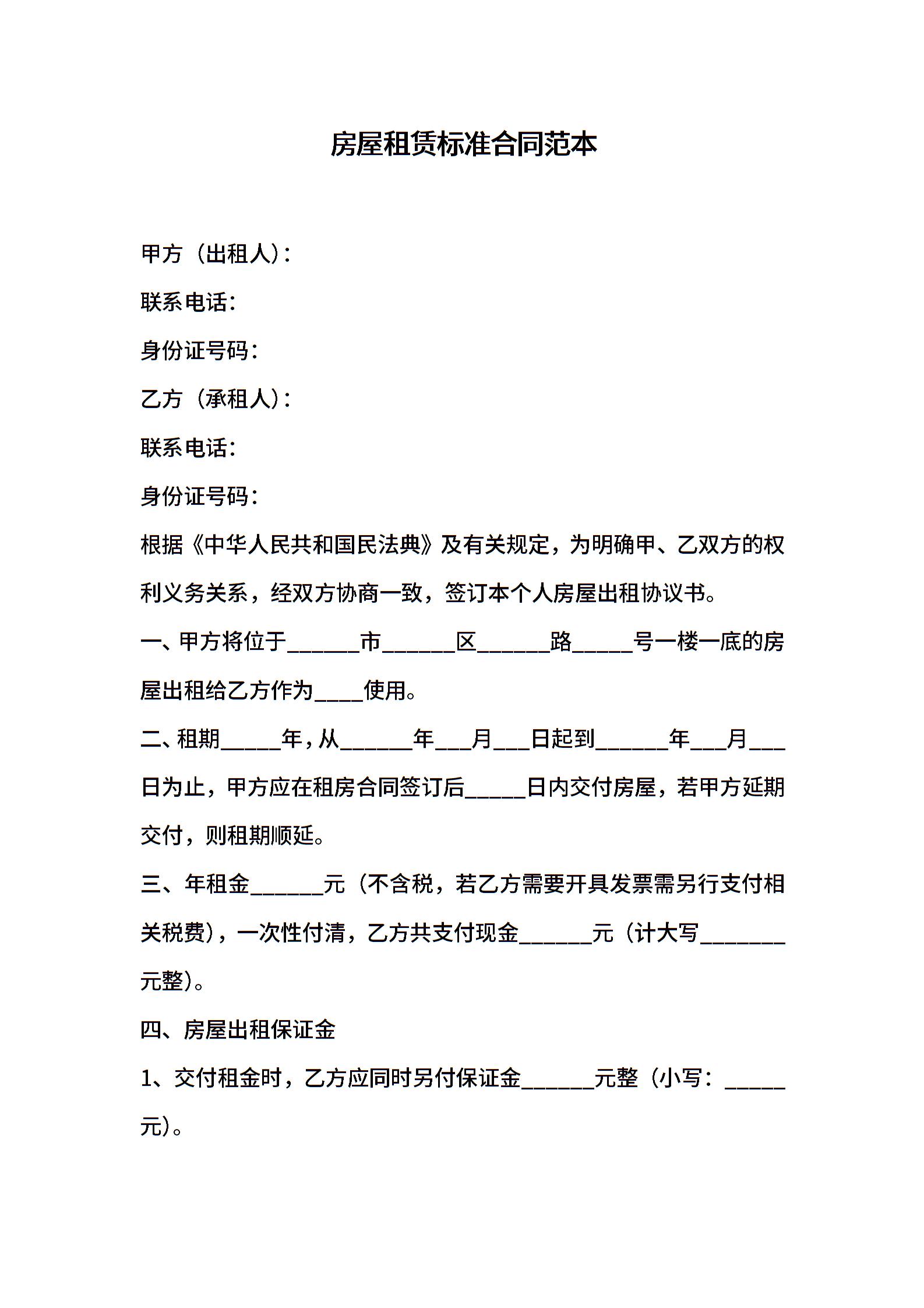 房屋租赁标准合同范本 (3)