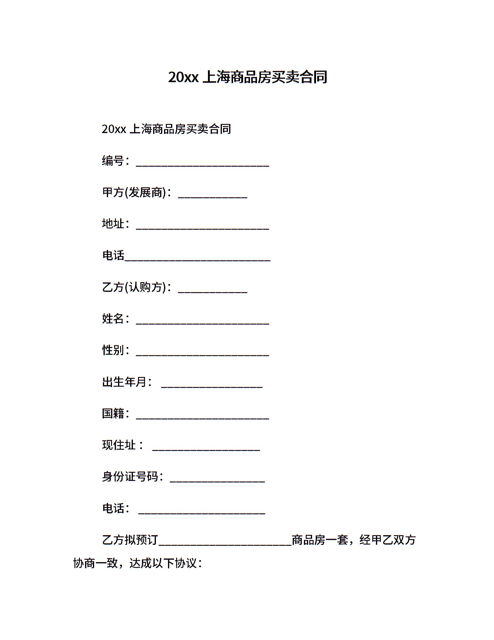 20xx上海商品房买卖合同