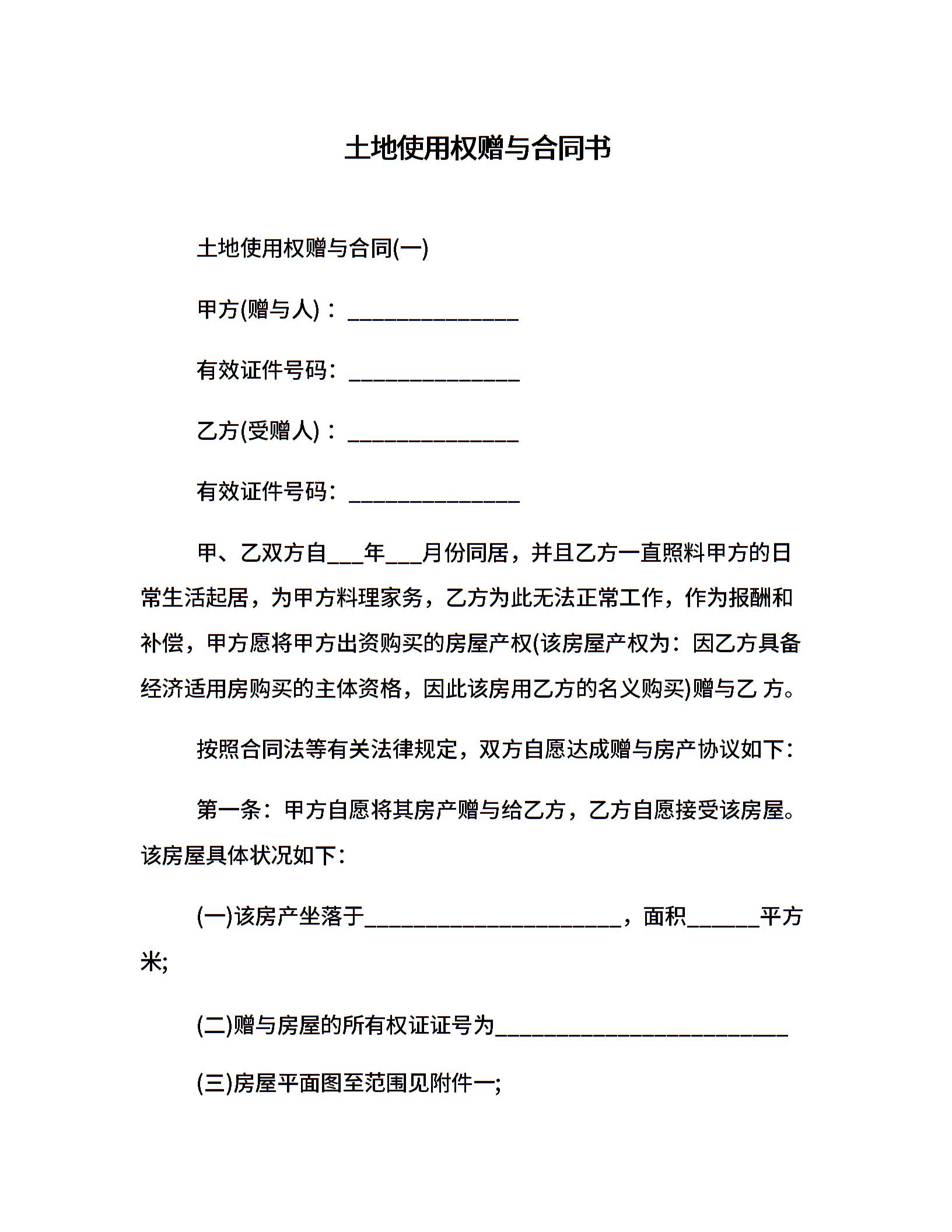 土地使用权赠与合同书