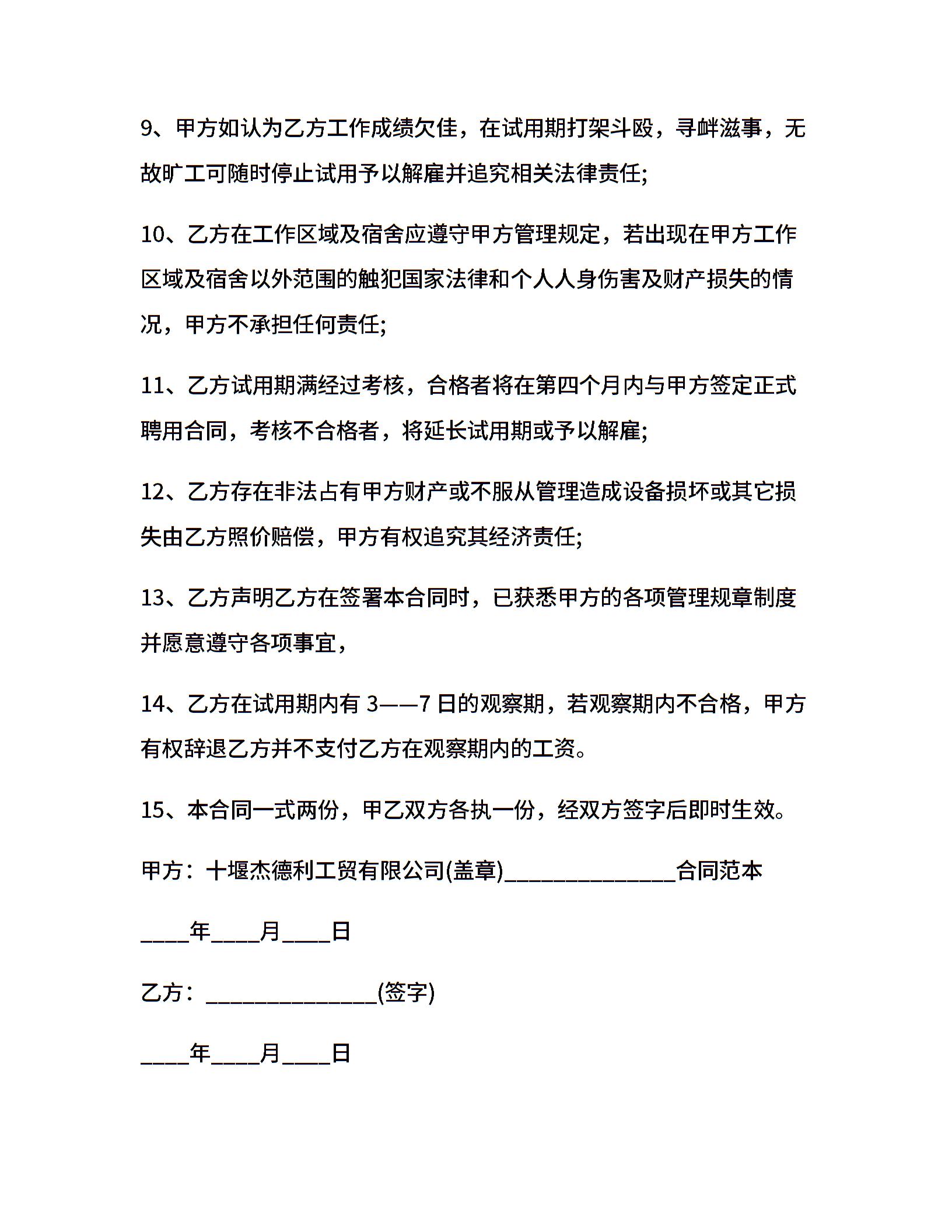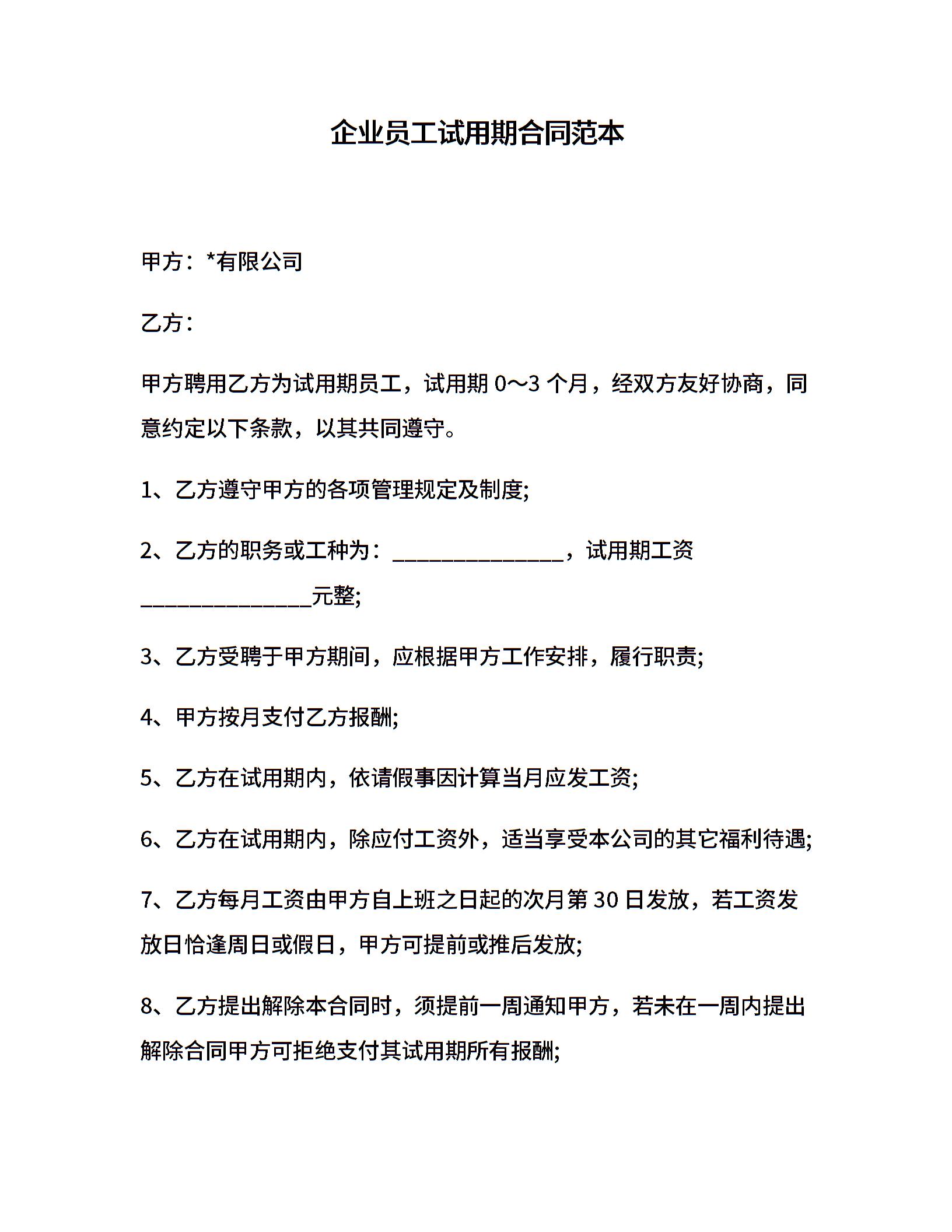 企业员工试用期合同范本