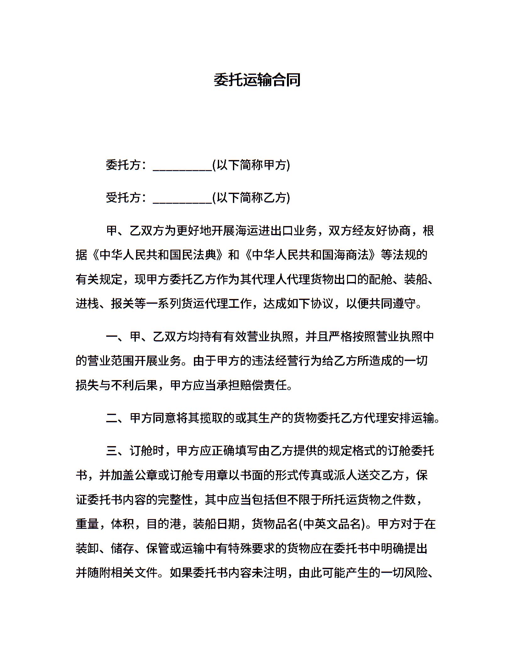 委托运输合同