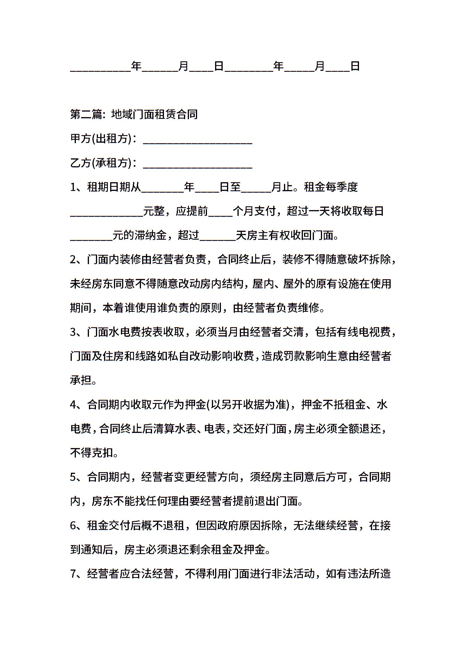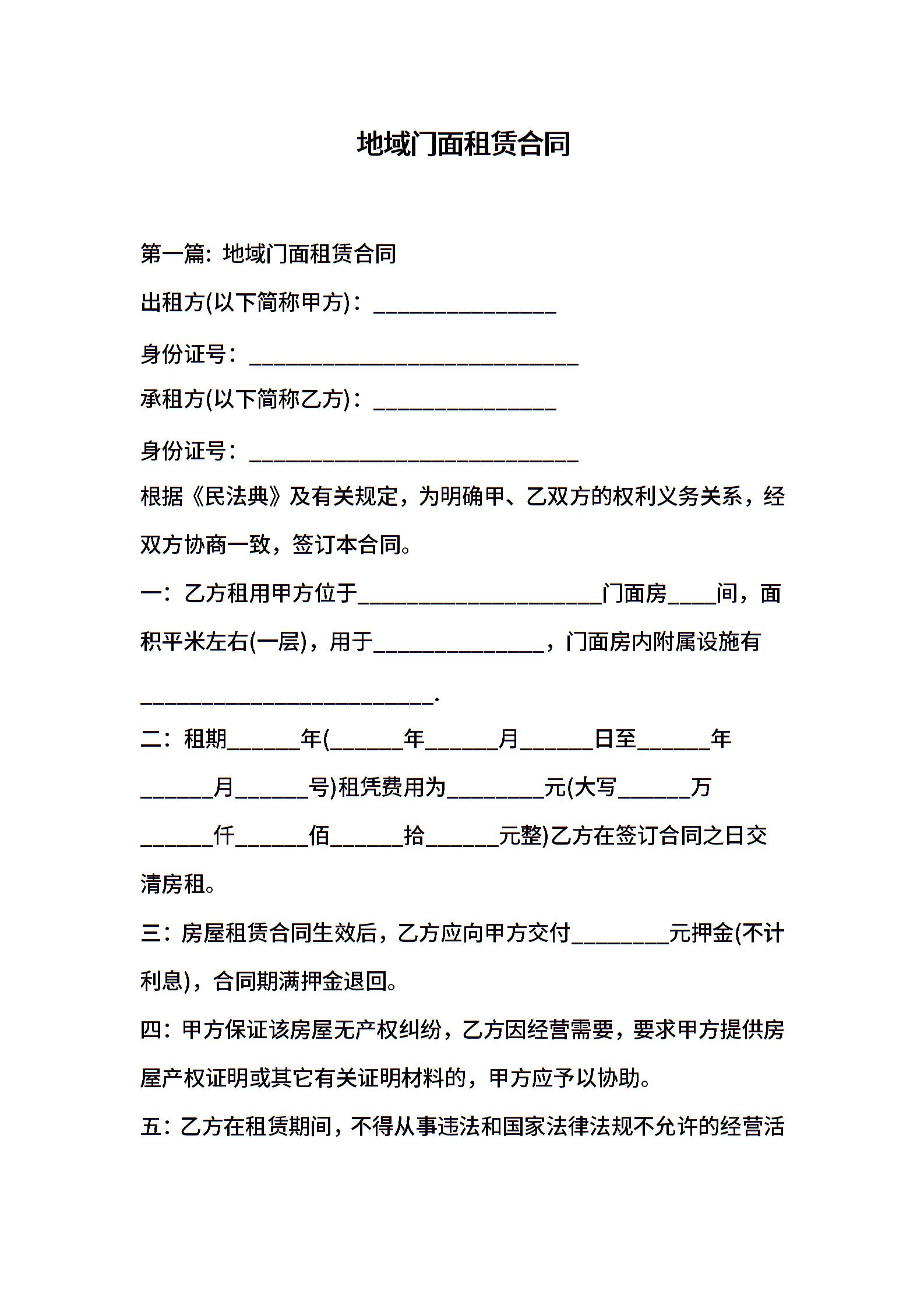 地域门面租赁合同样本