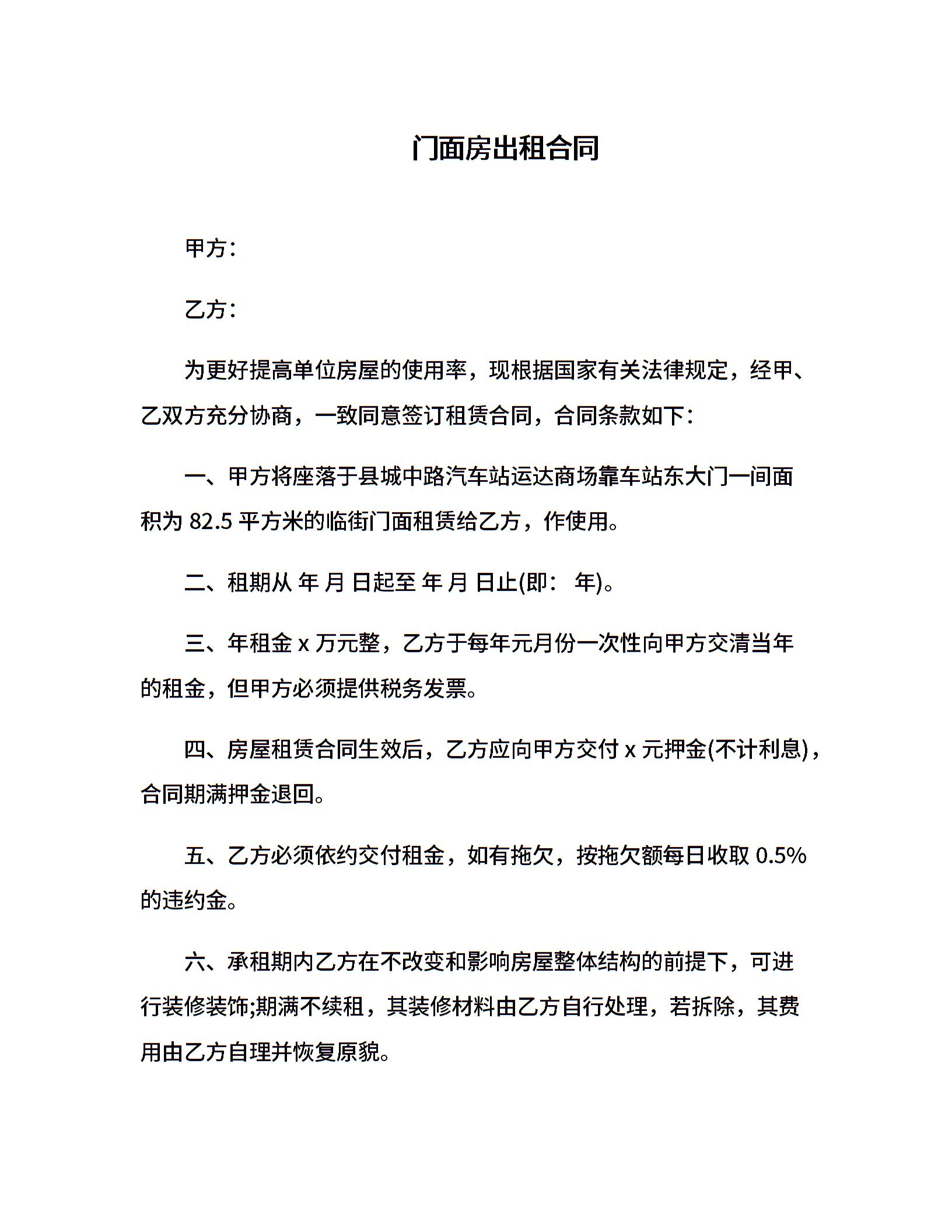 门面房出租合同
