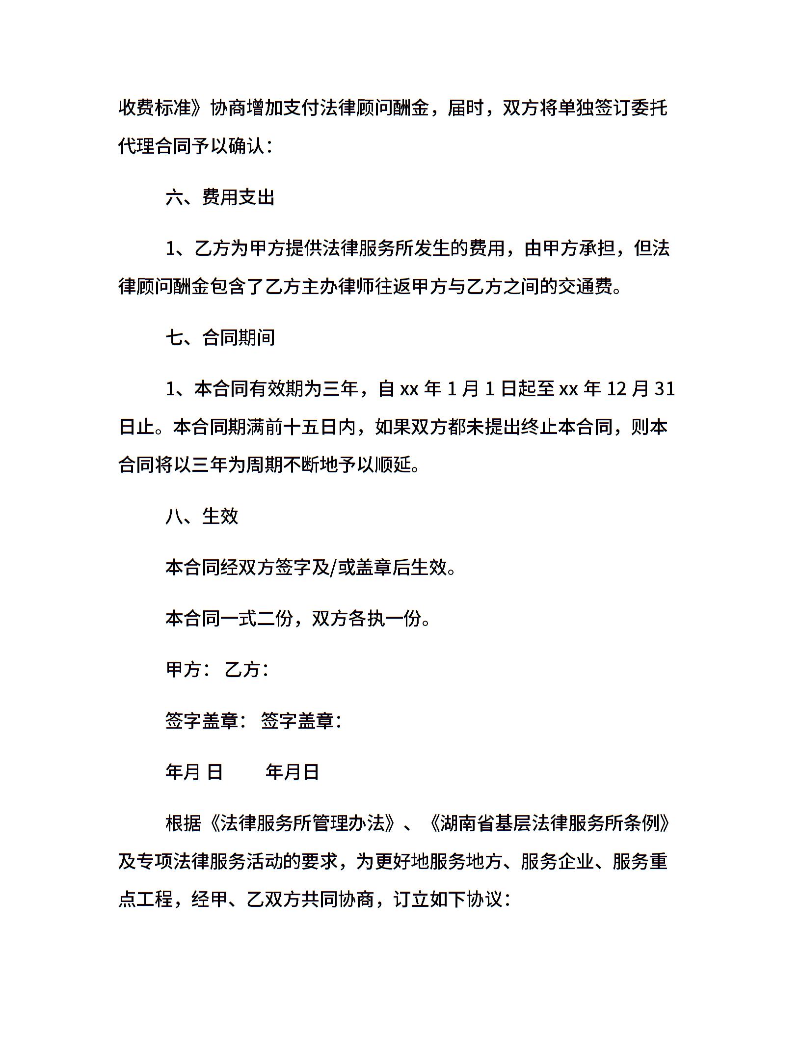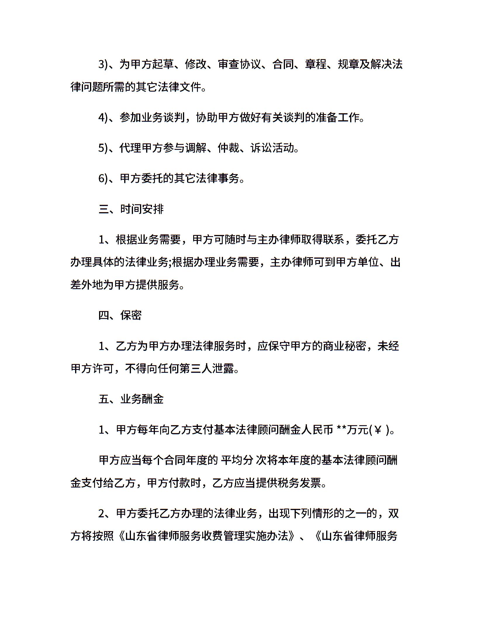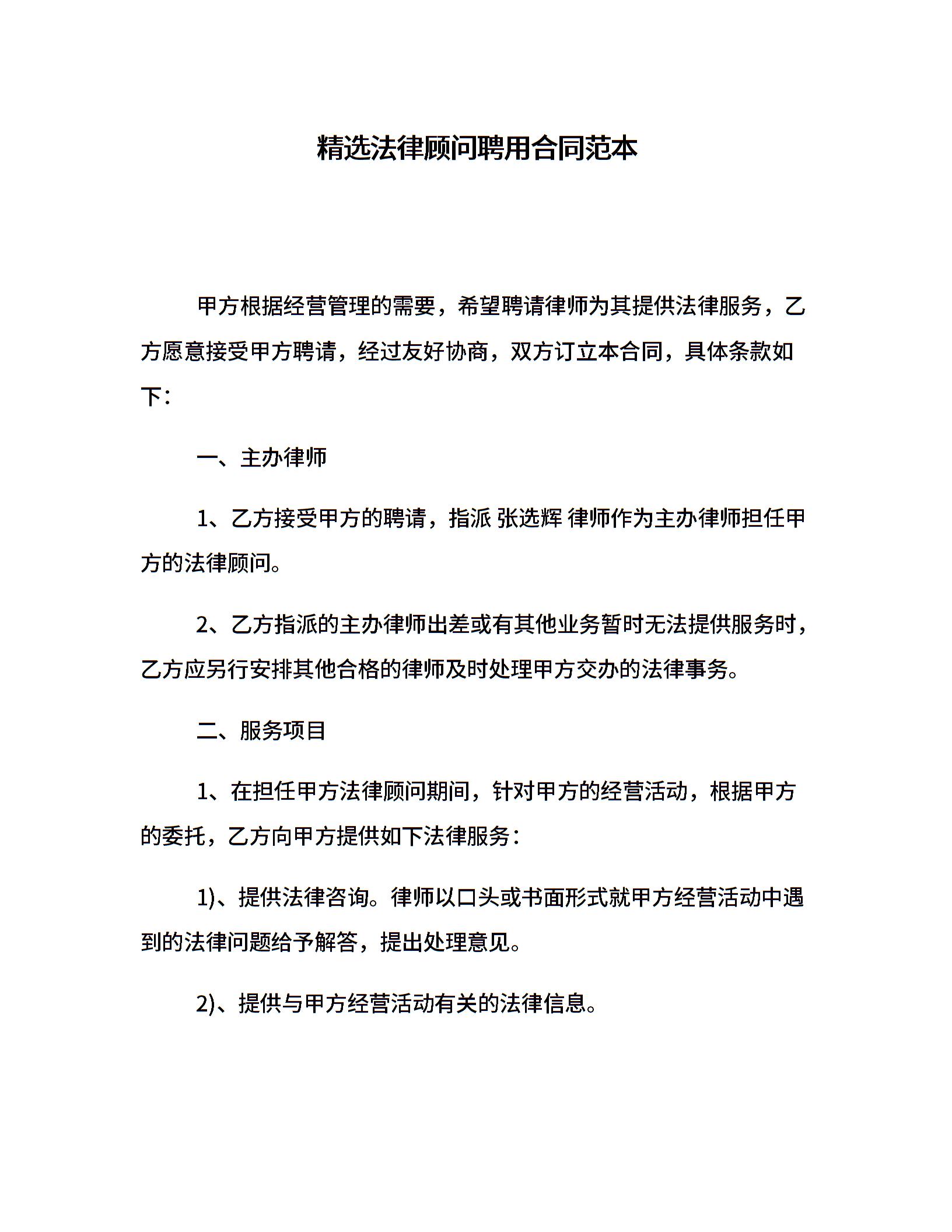 精选法律顾问聘用合同范本
