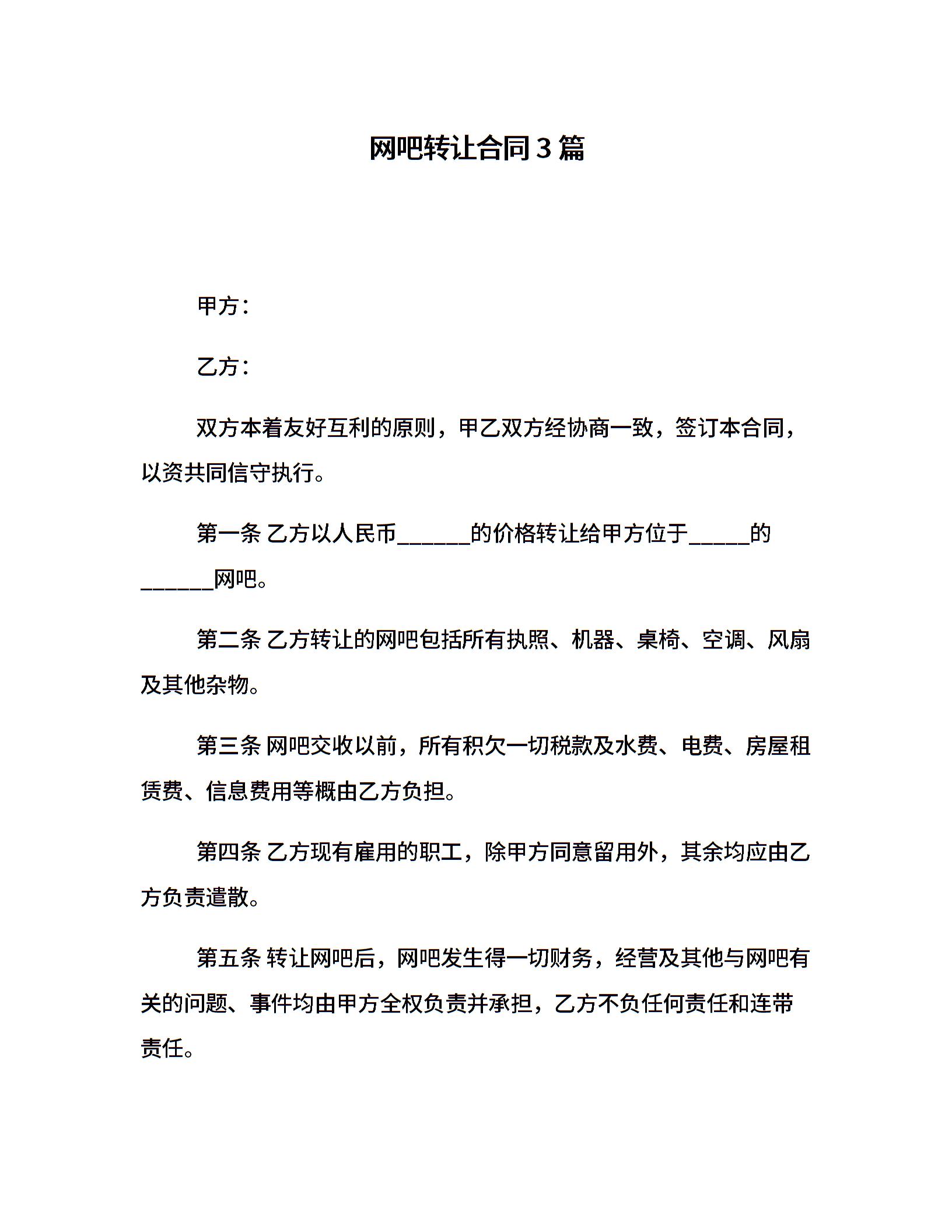 网吧转让合同3篇