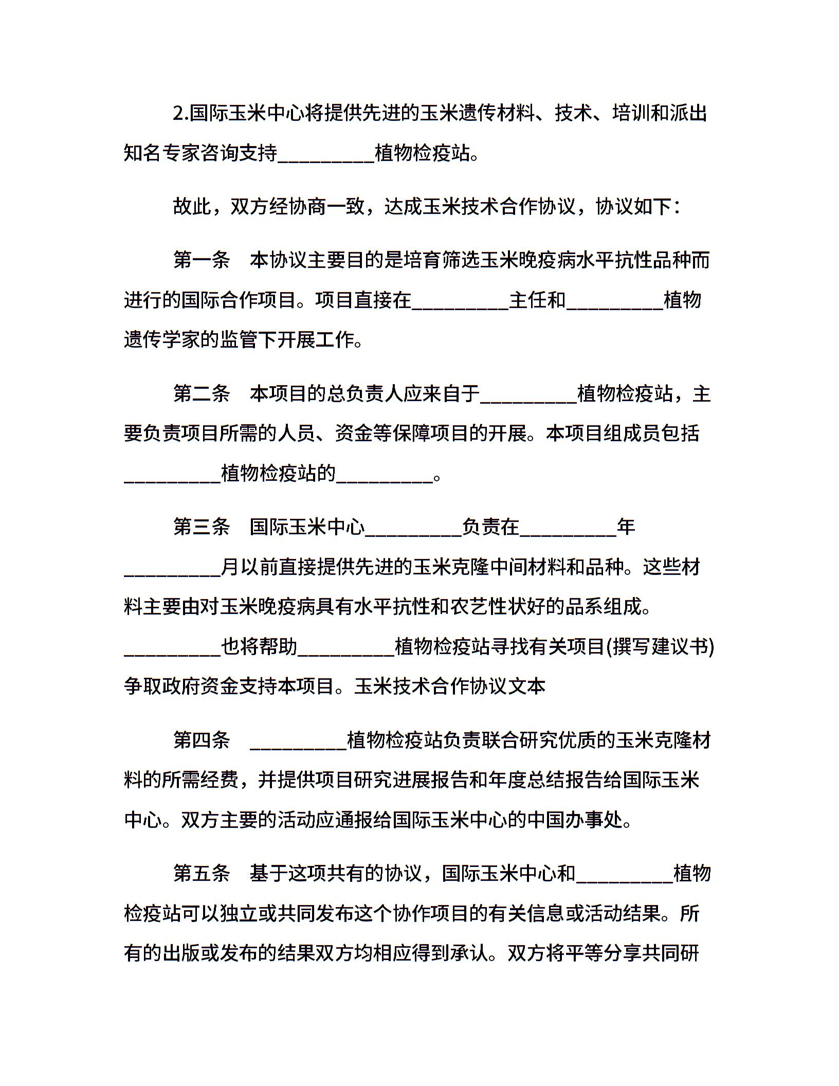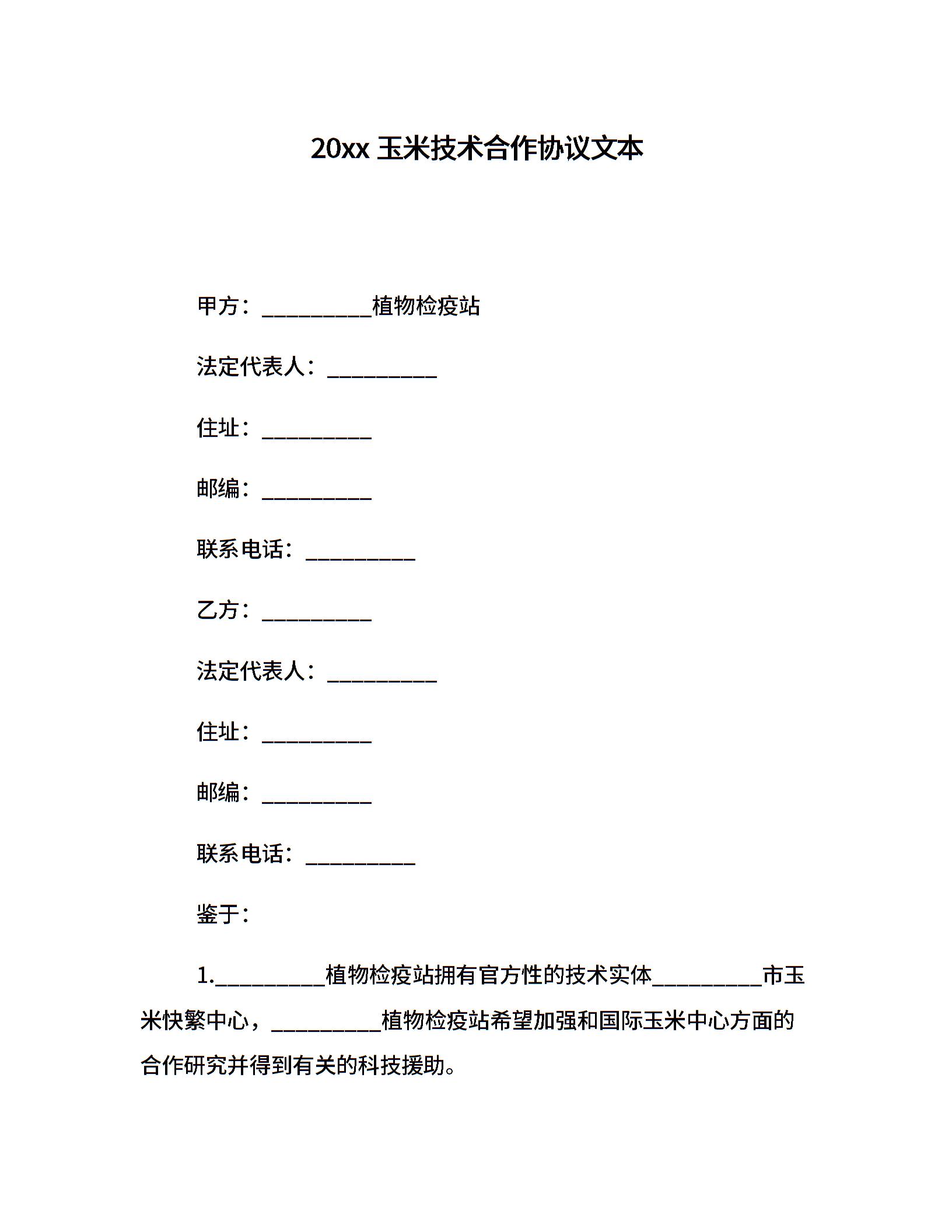 20xx玉米技术合作协议文本
