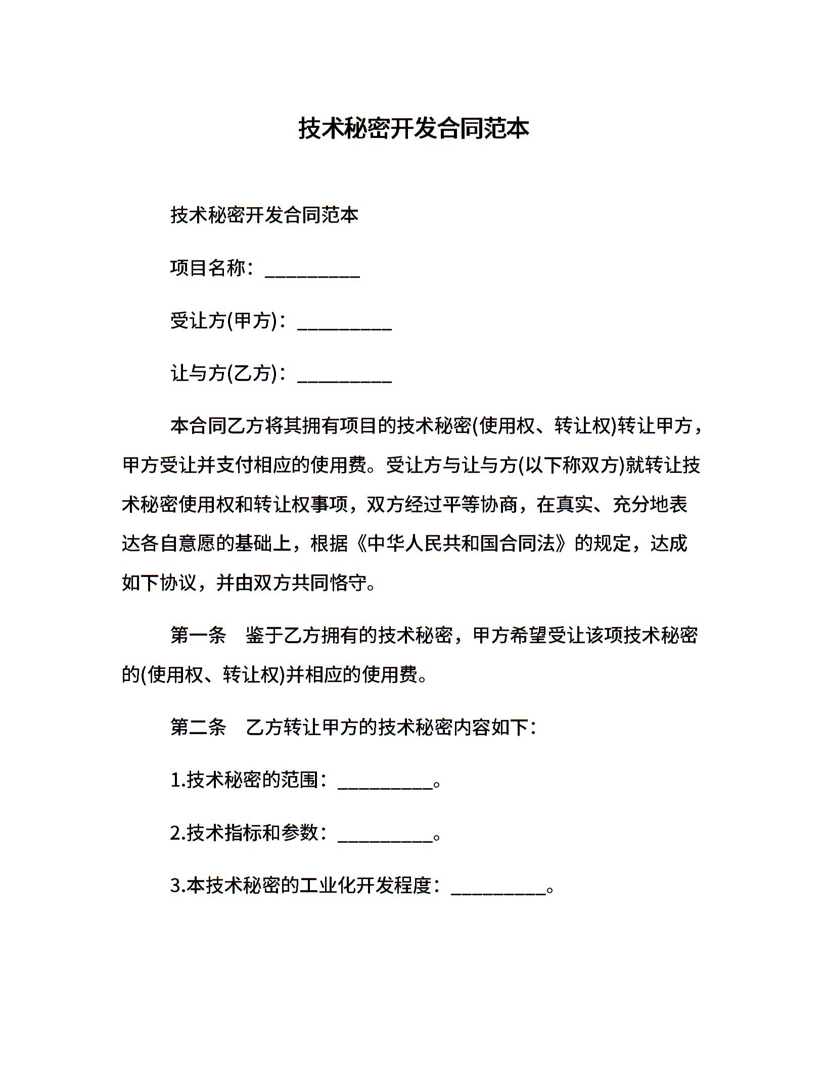 技术秘密开发合同范本