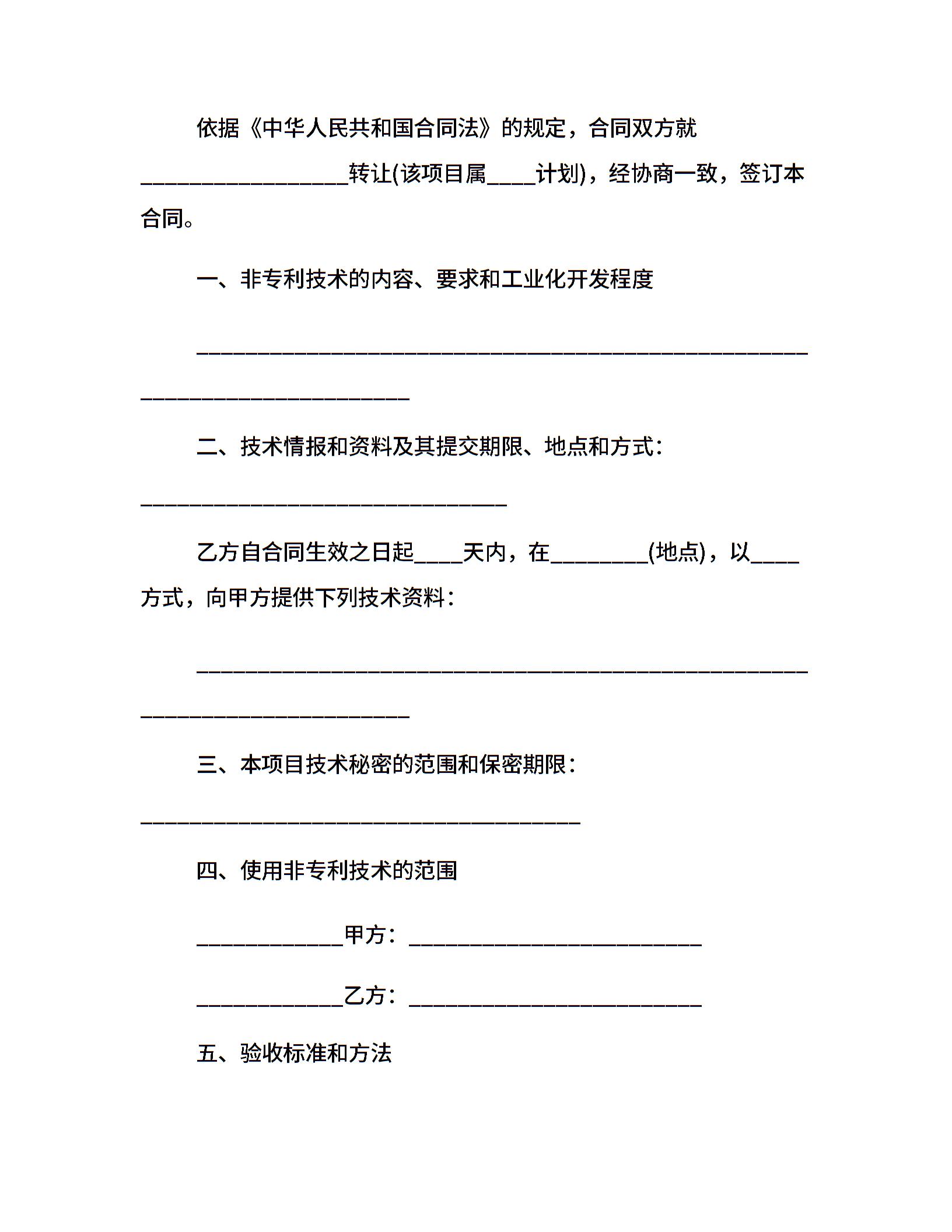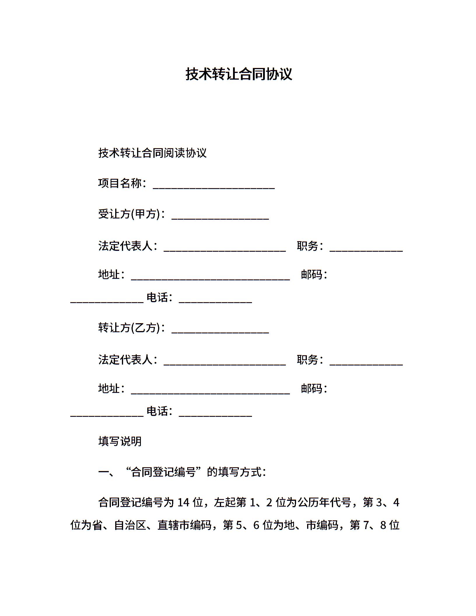技术转让合同协议