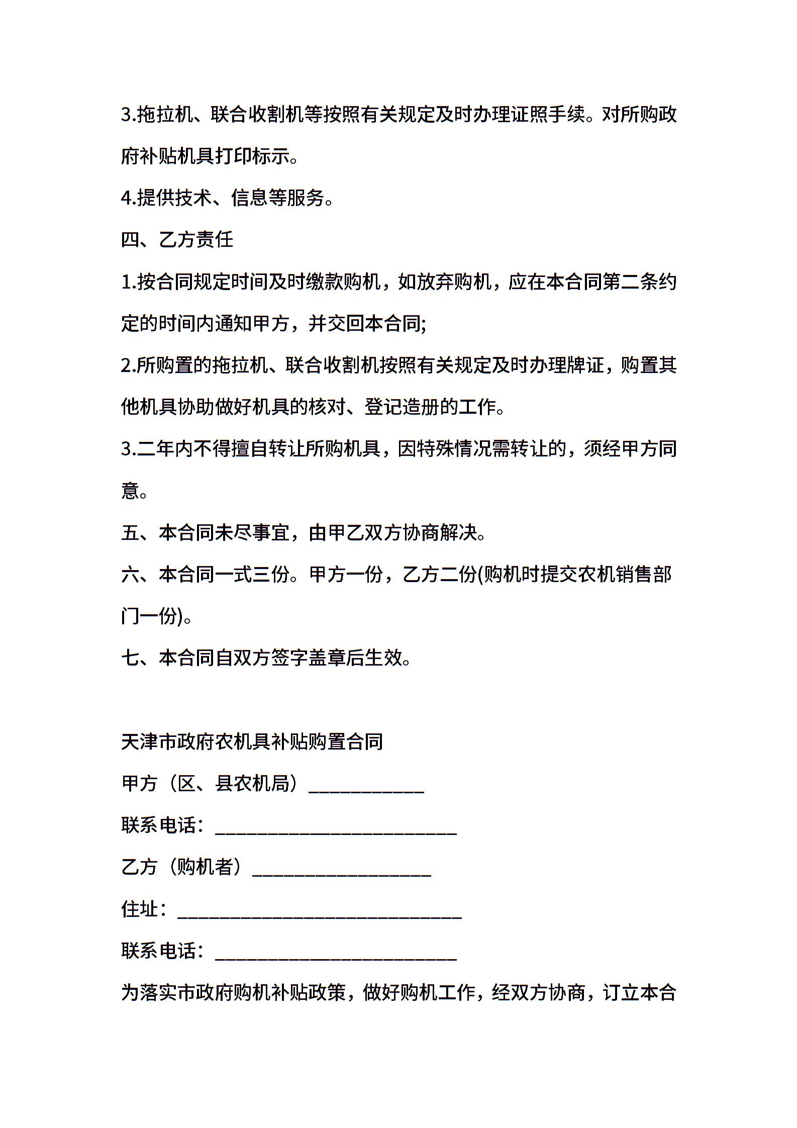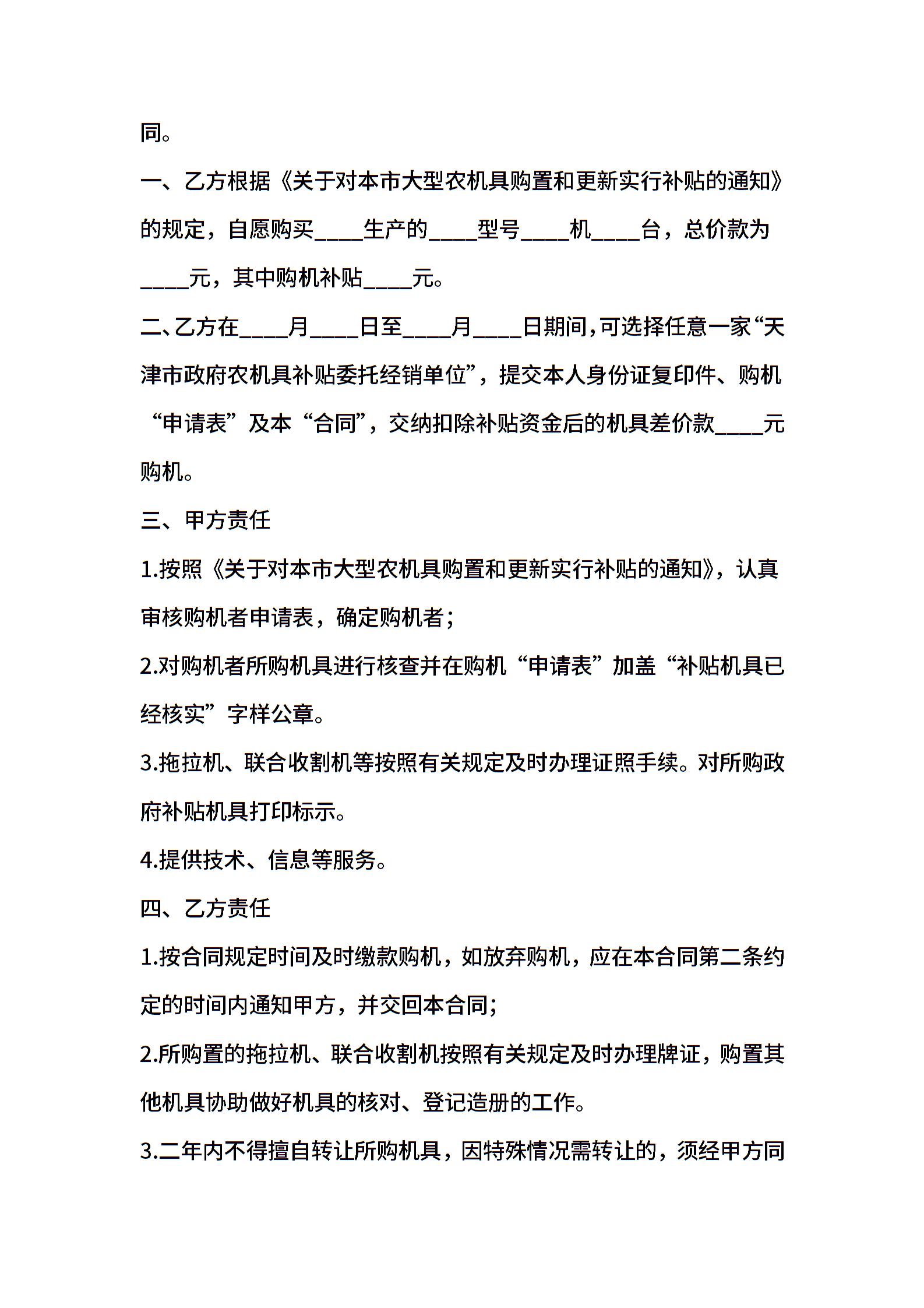 上海市政府农机具补贴购置合同