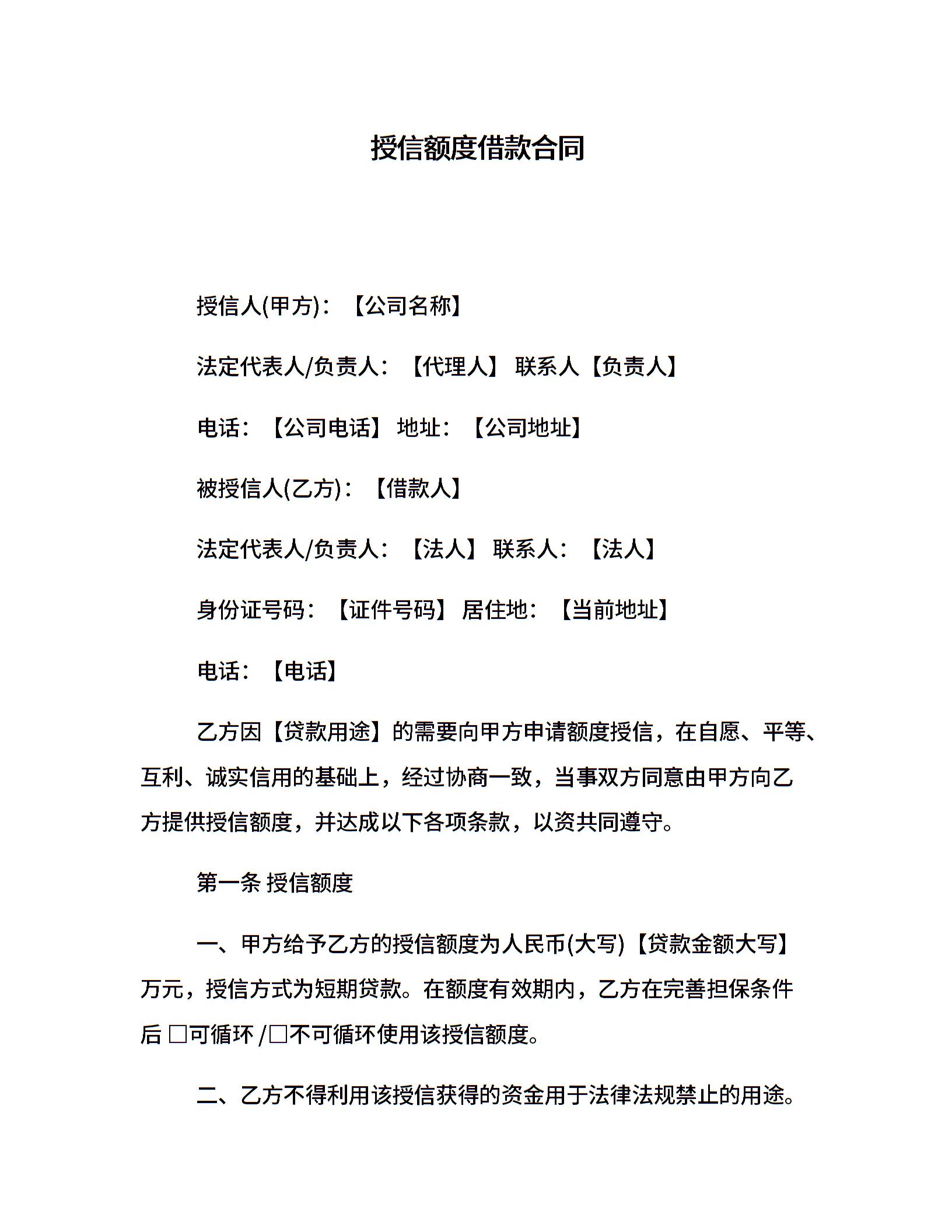授信额度借款合同
