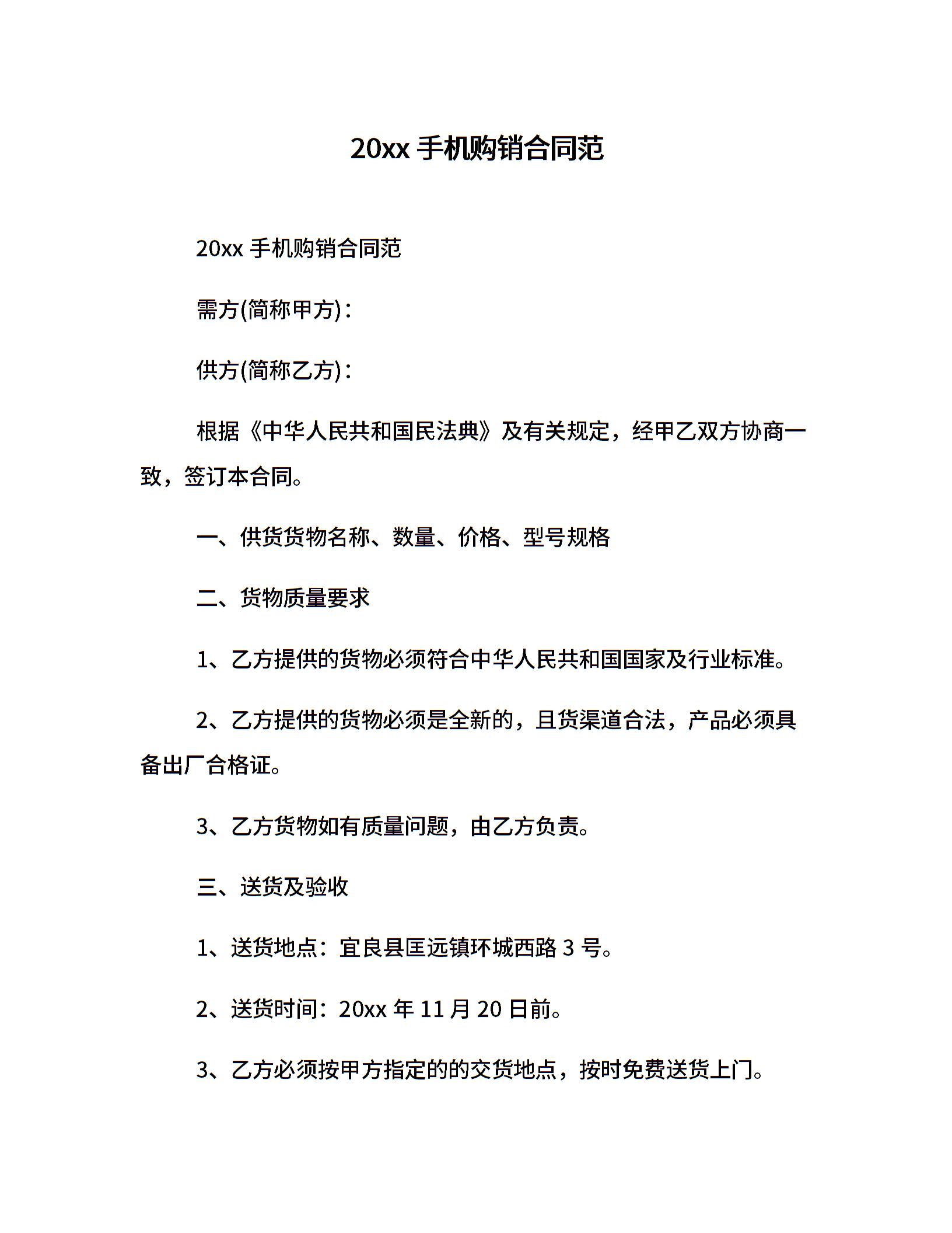 20xx手机购销合同范