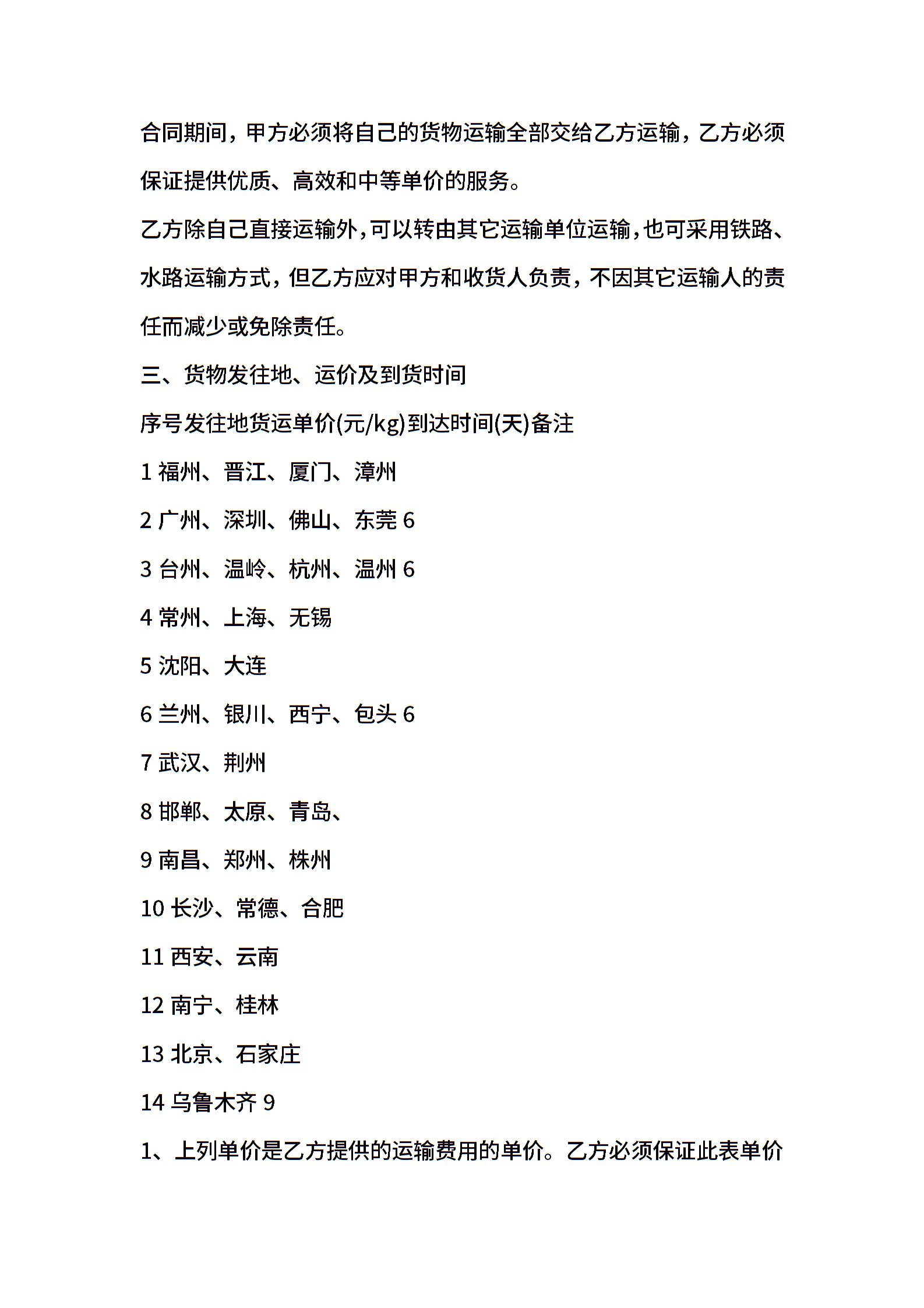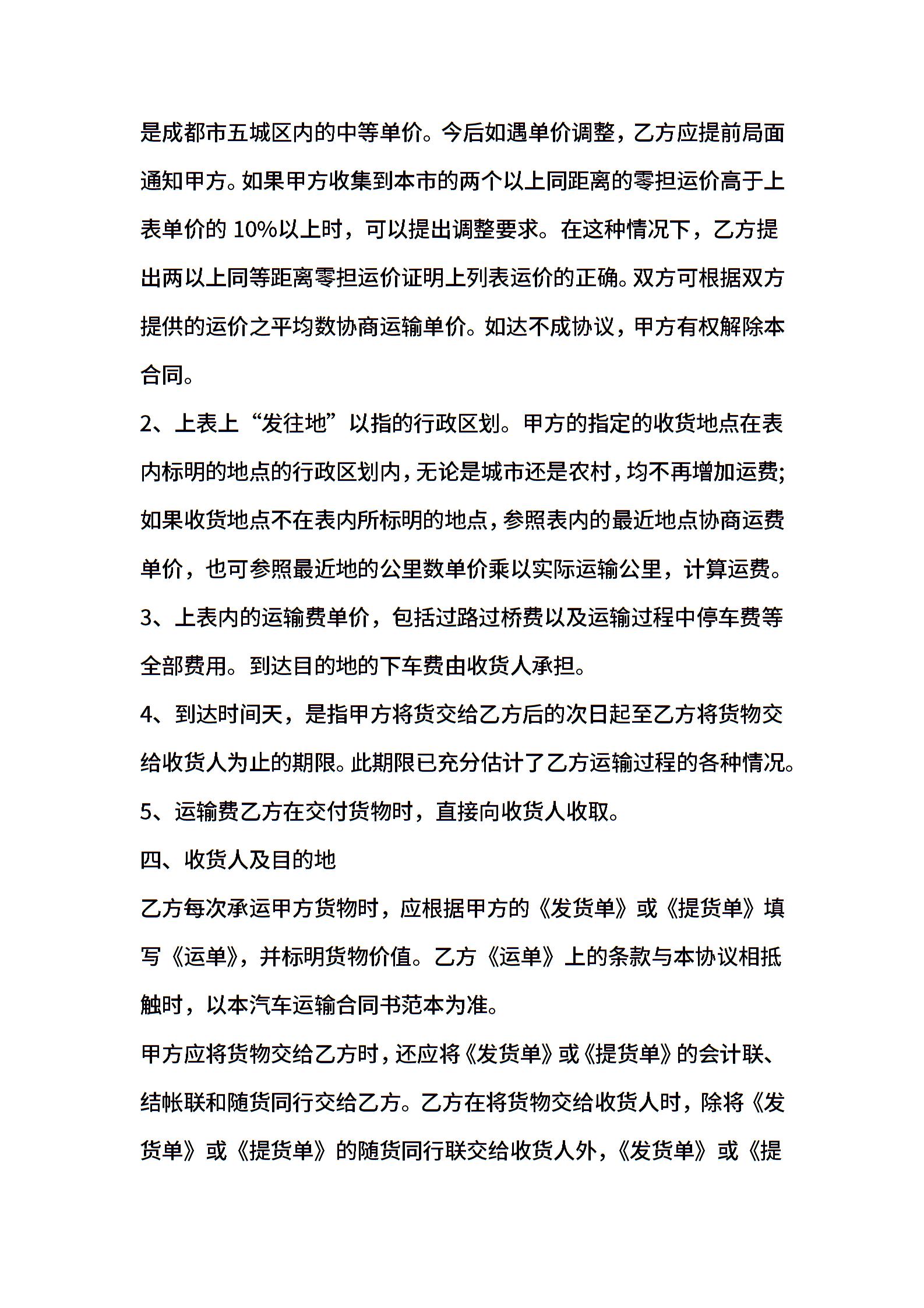 汽车运输合同书范本