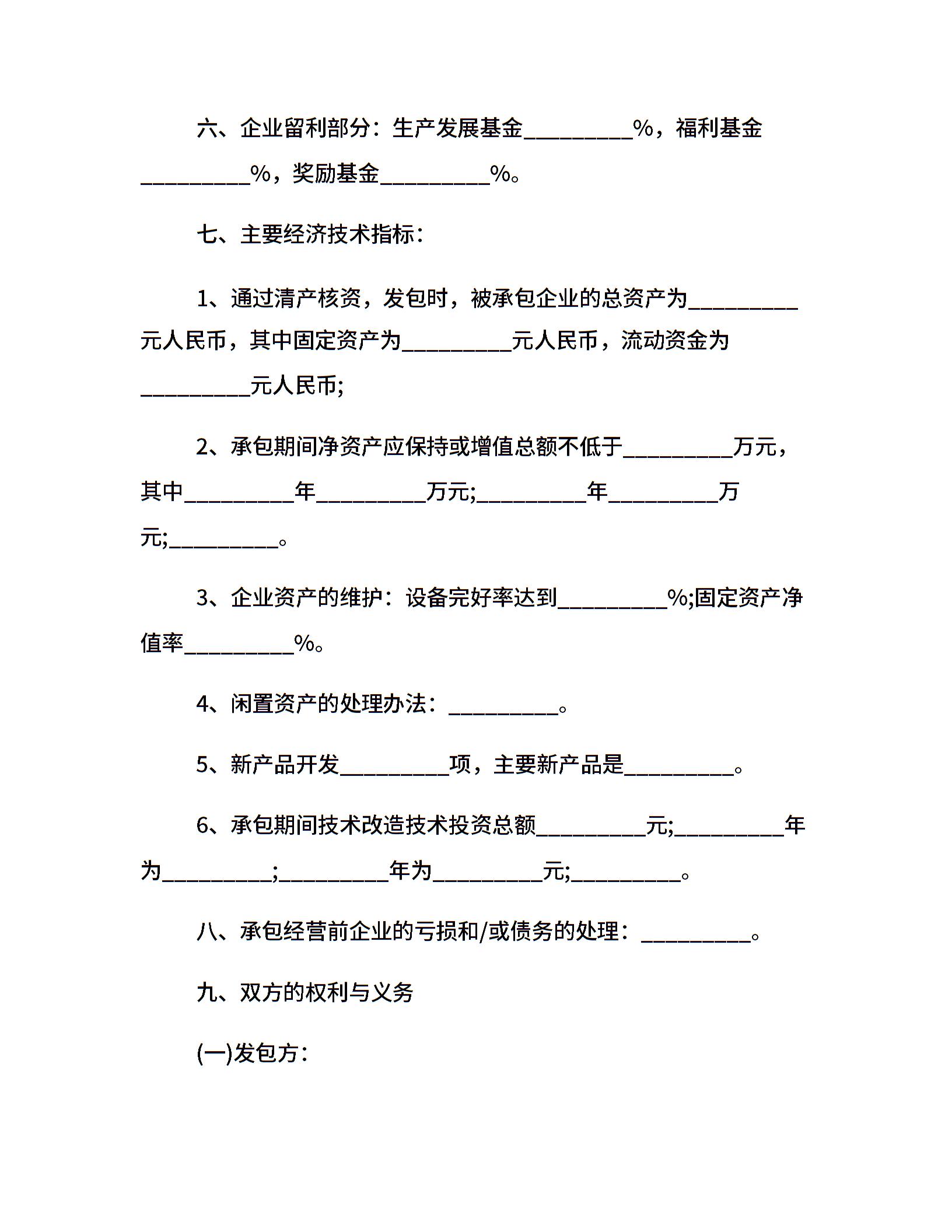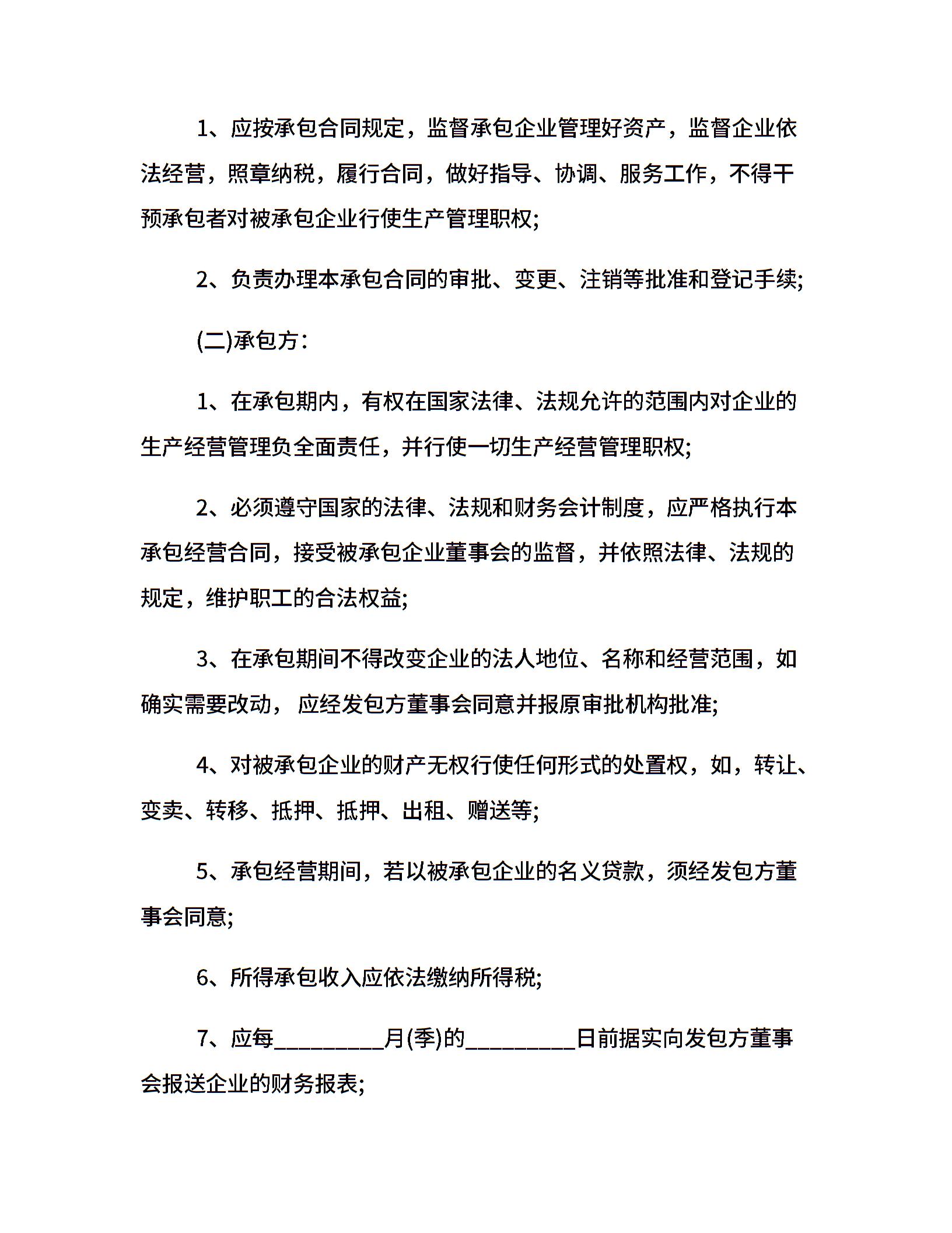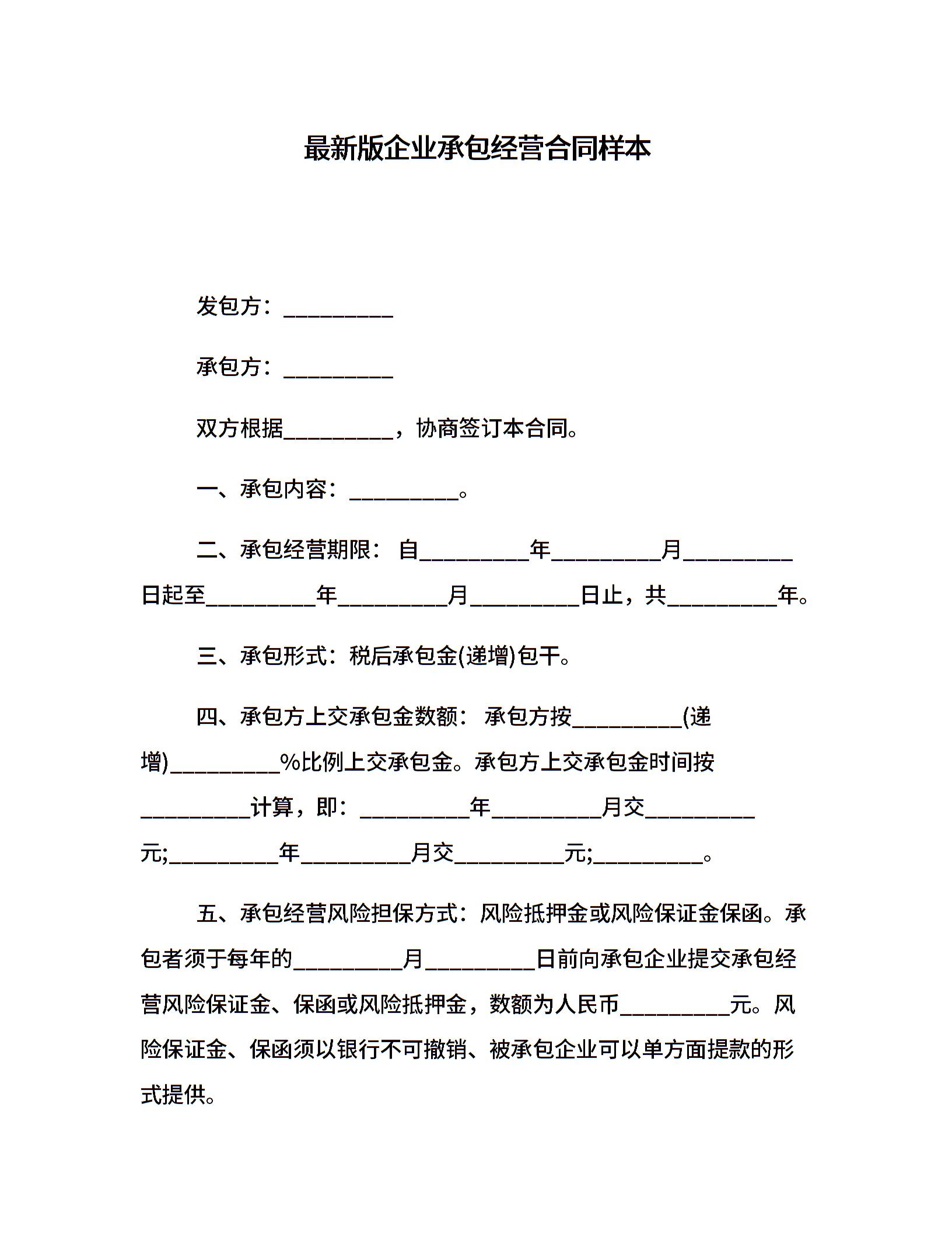 最新版企业承包经营合同样本