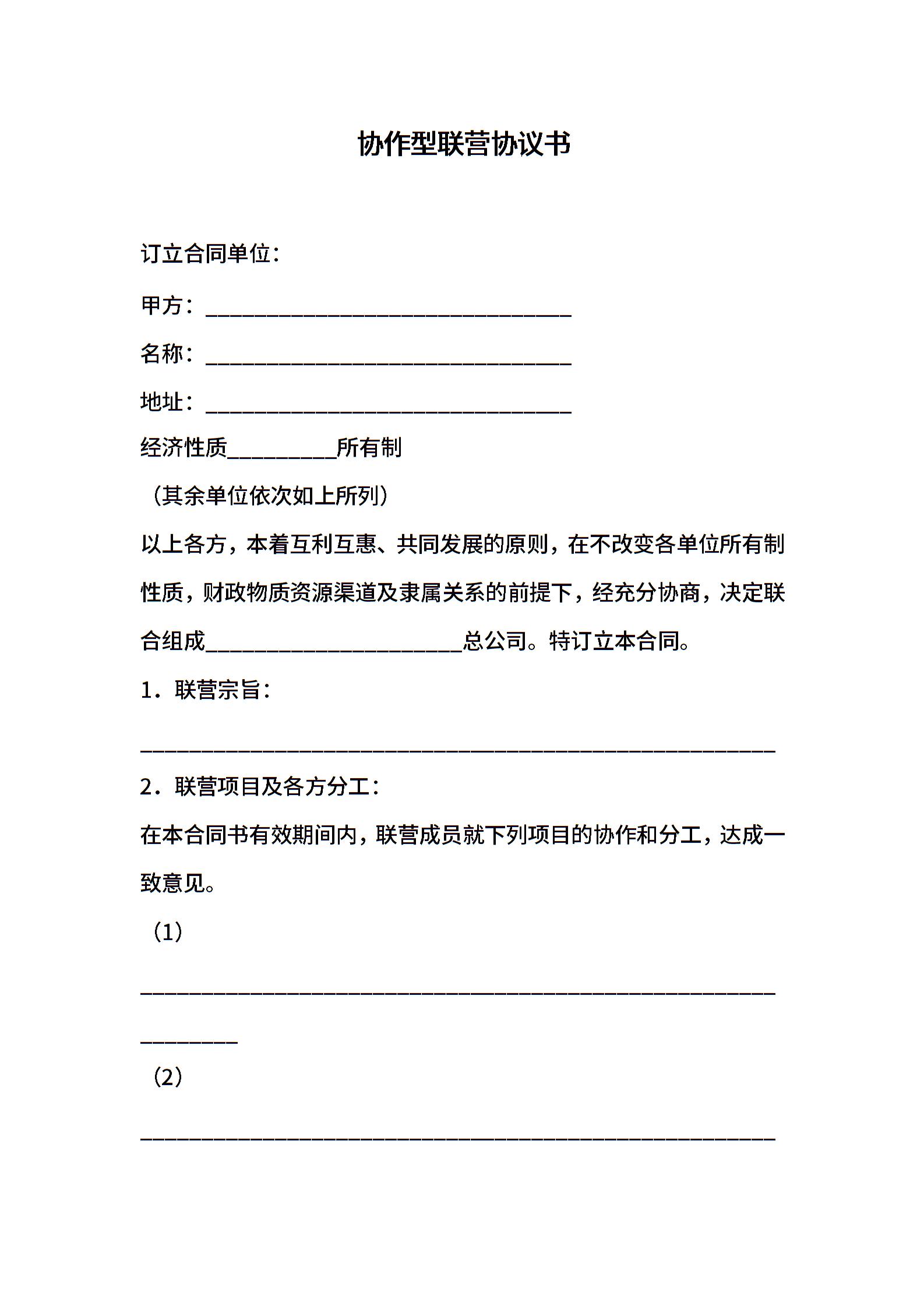 协作型联营协议书 (2)