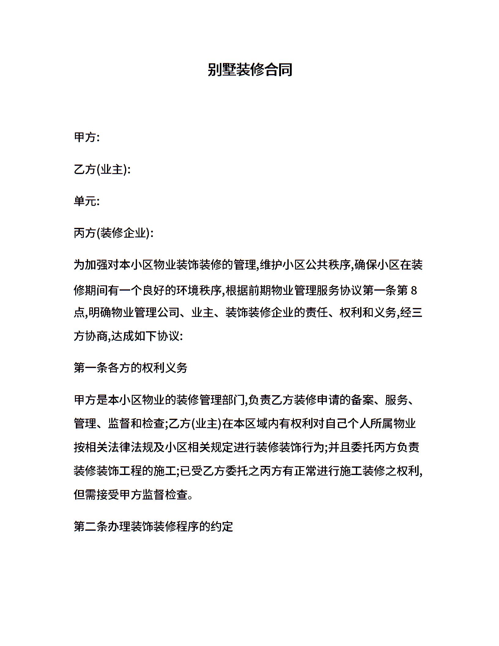 别墅装修合同