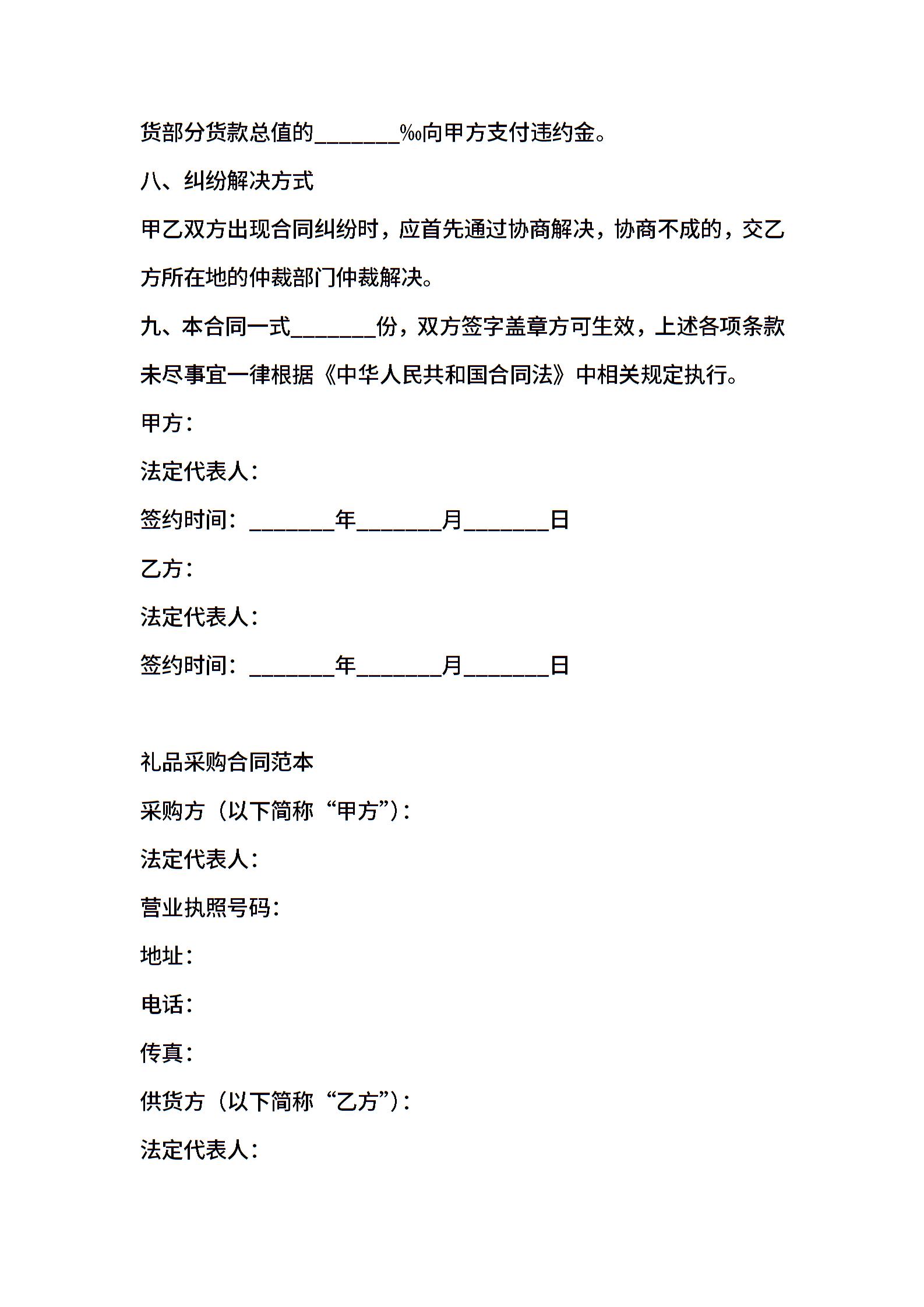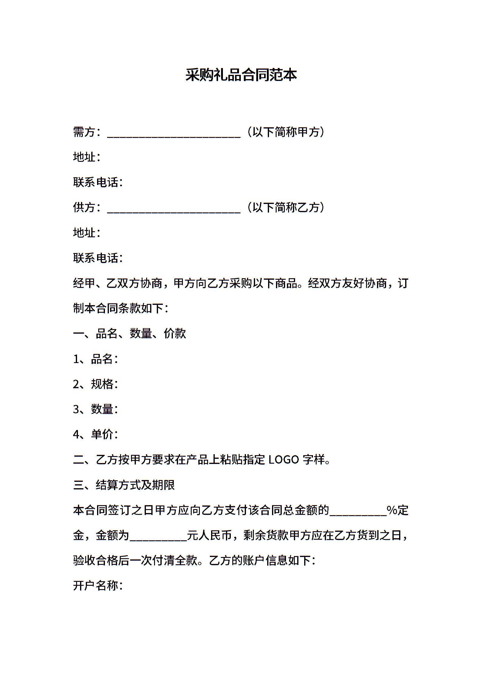 采购礼品合同范本