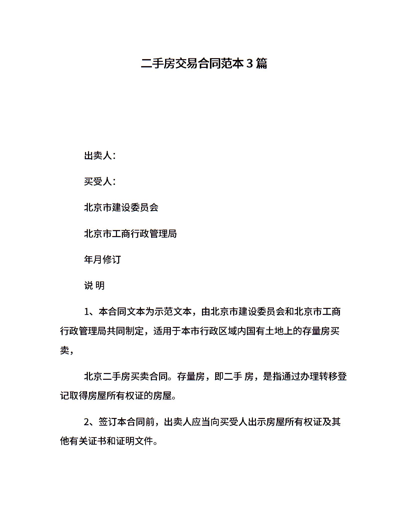 二手房交易合同范本3篇