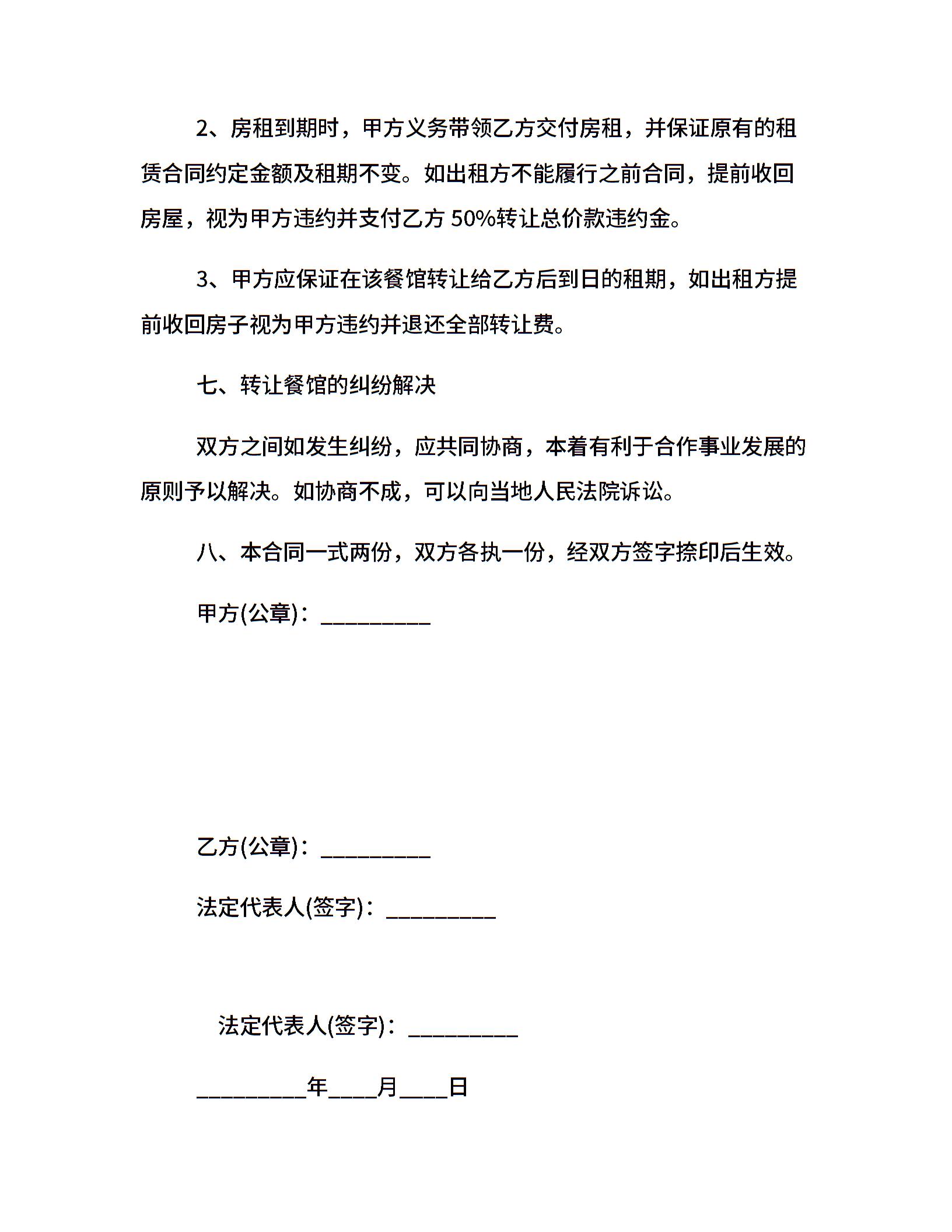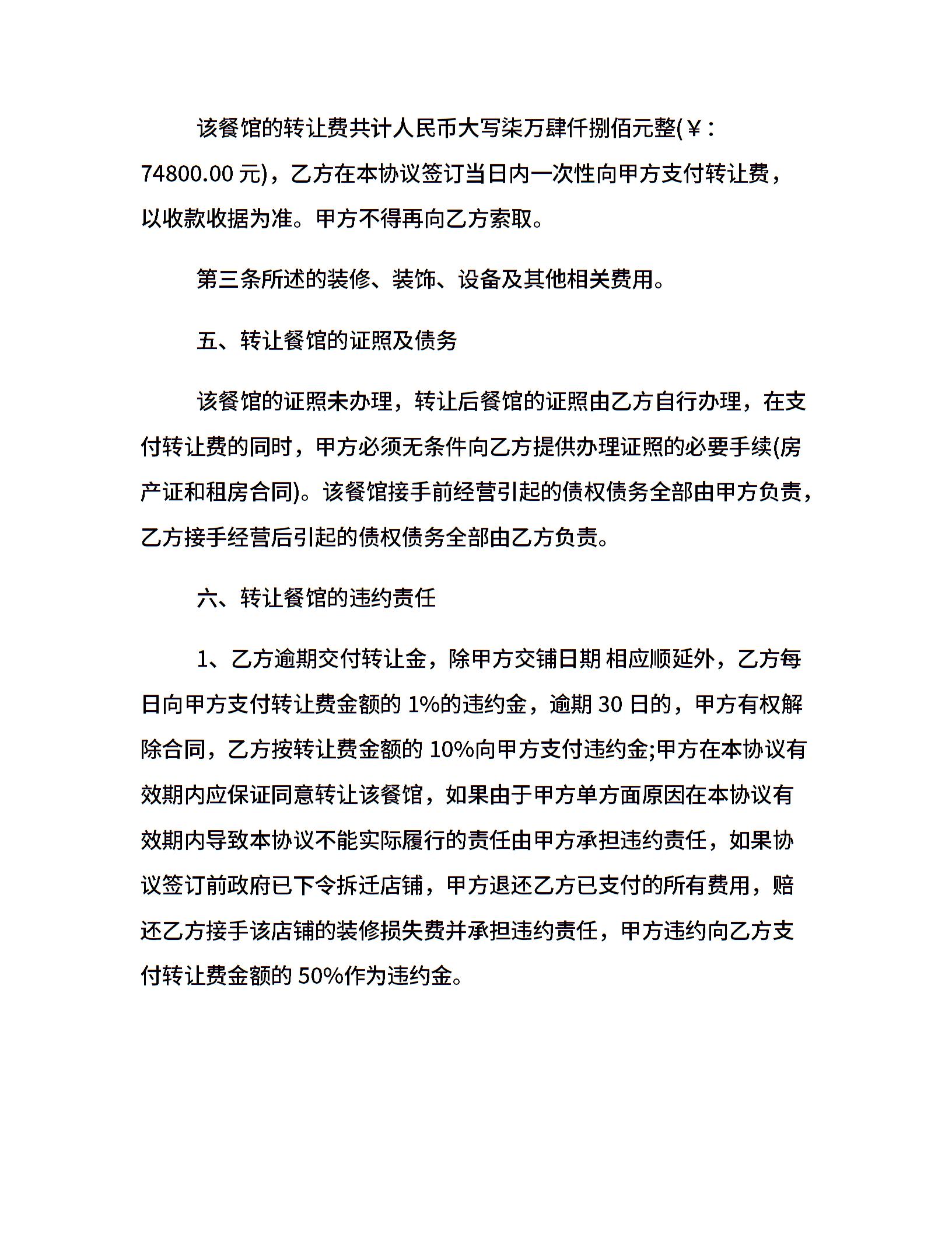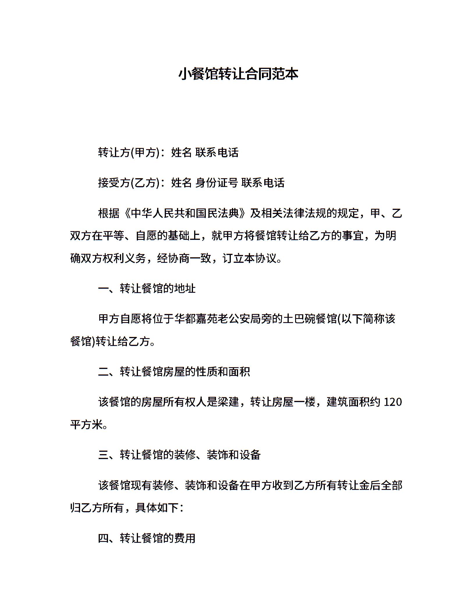 小餐馆转让合同范本