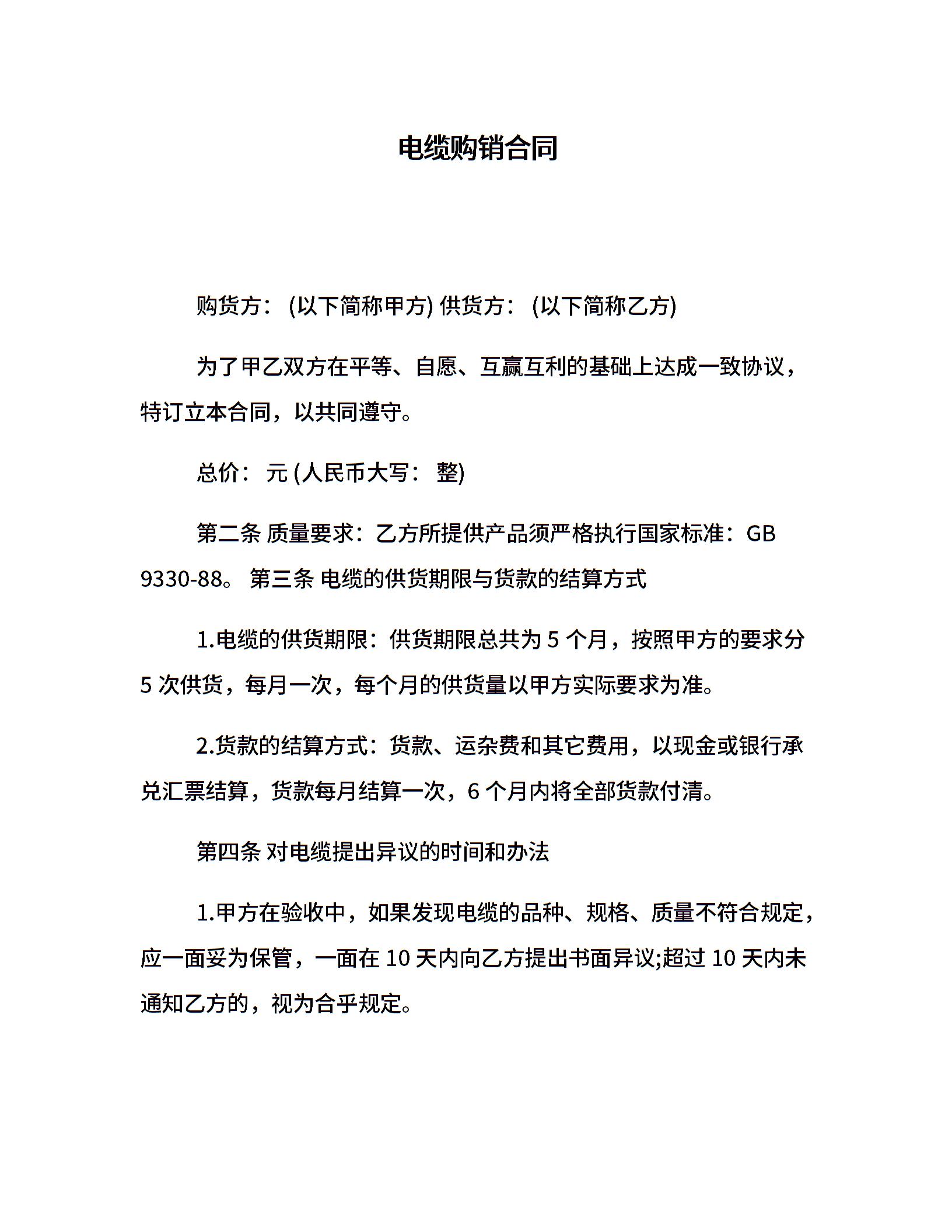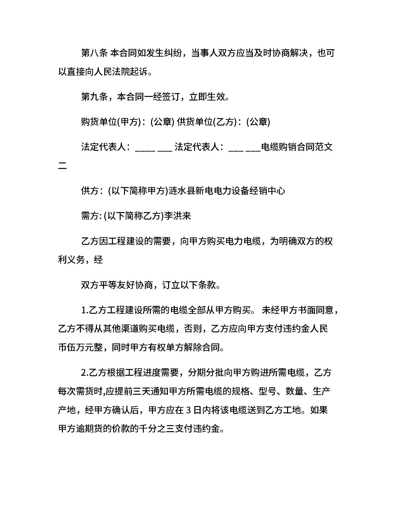 电缆购销合同