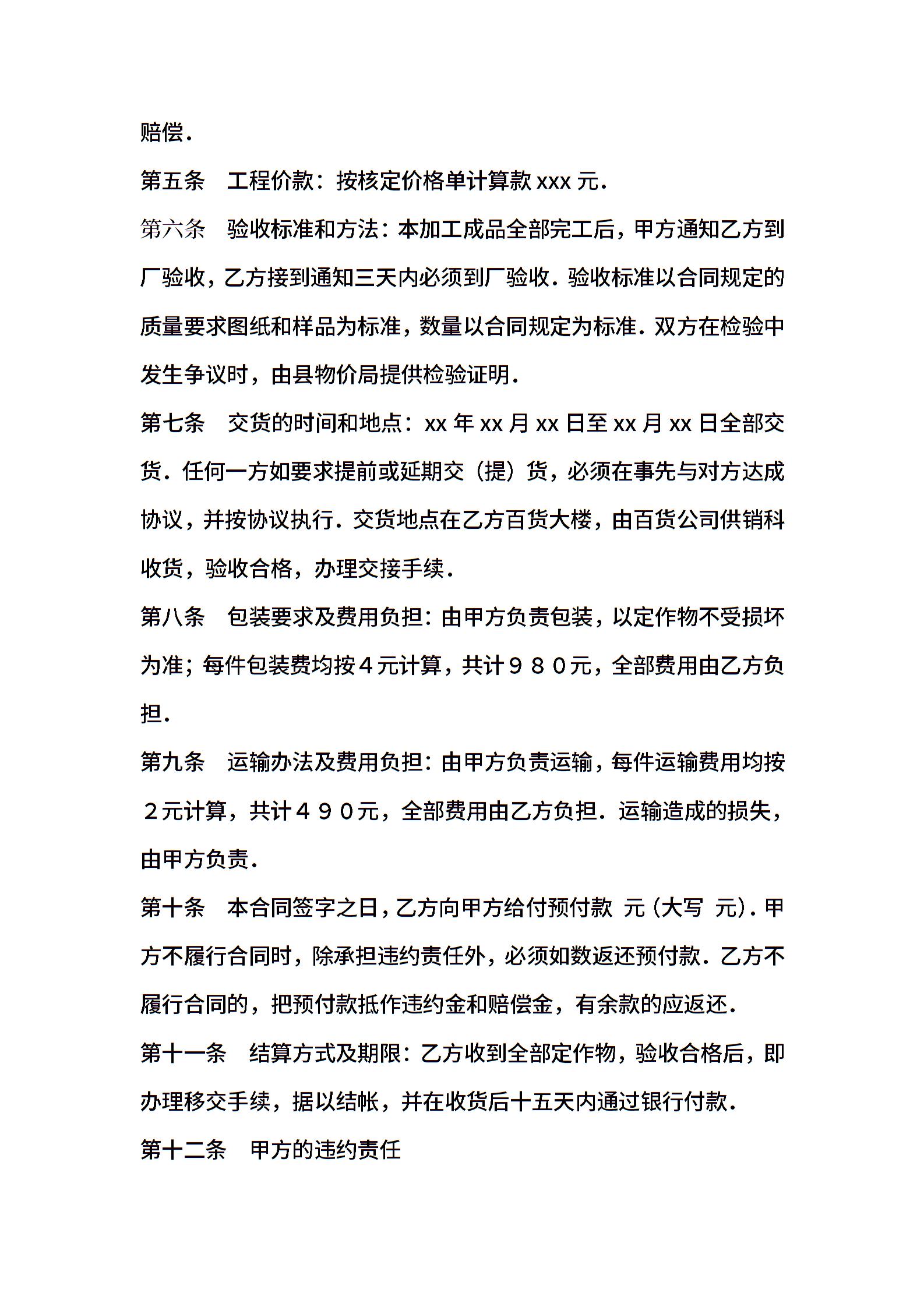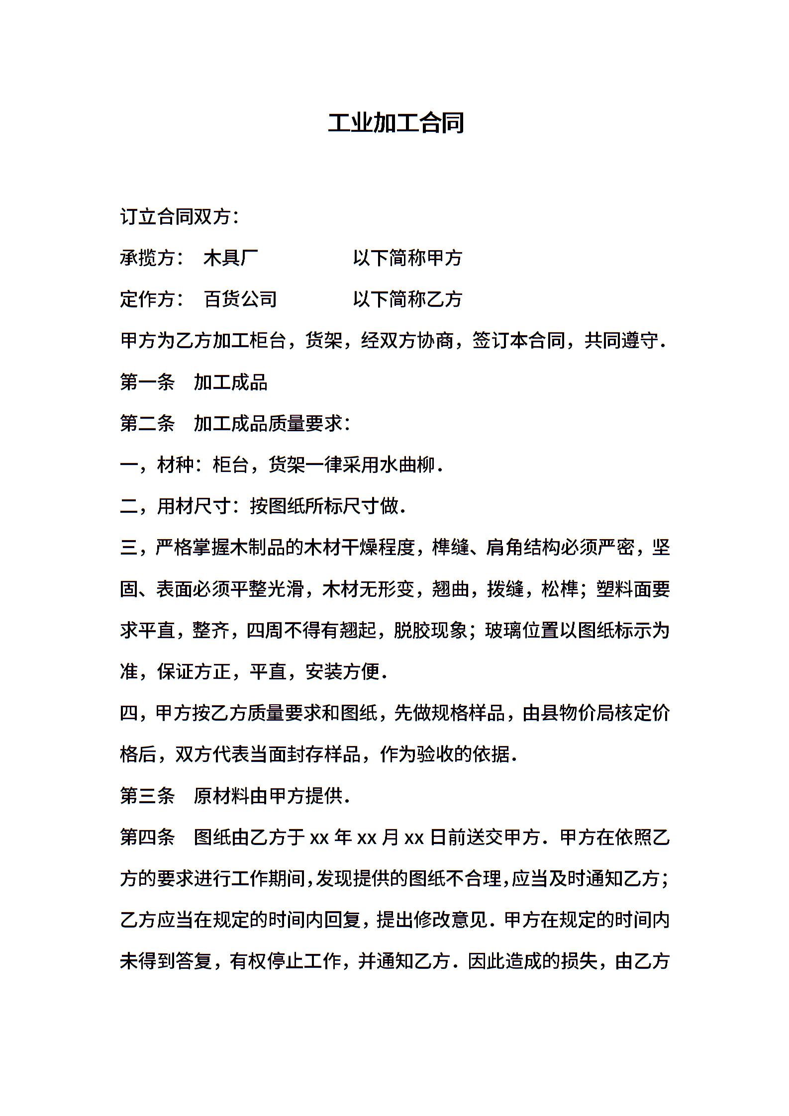 当前位置:量子办公 > 合同模板 > 加工合同 >