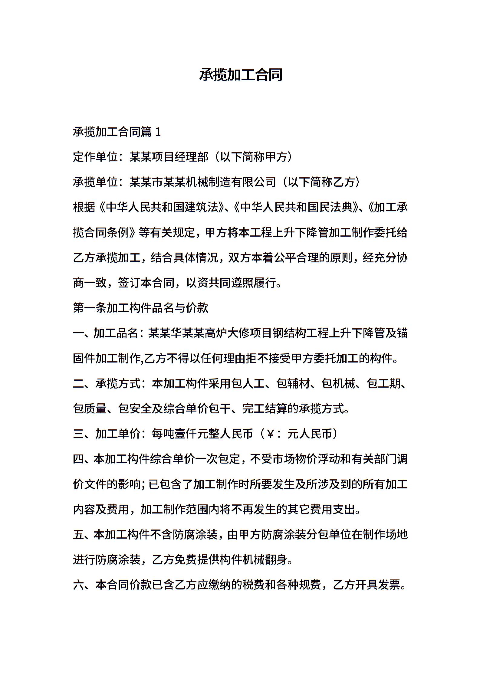当前位置:量子办公 > 合同模板 > 加工合同 >