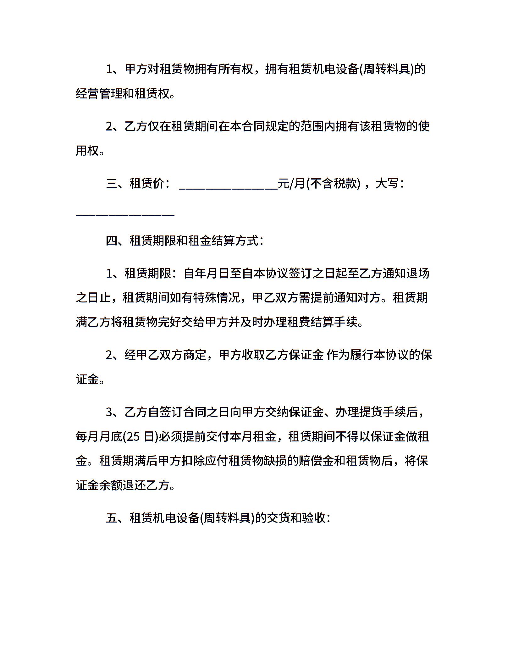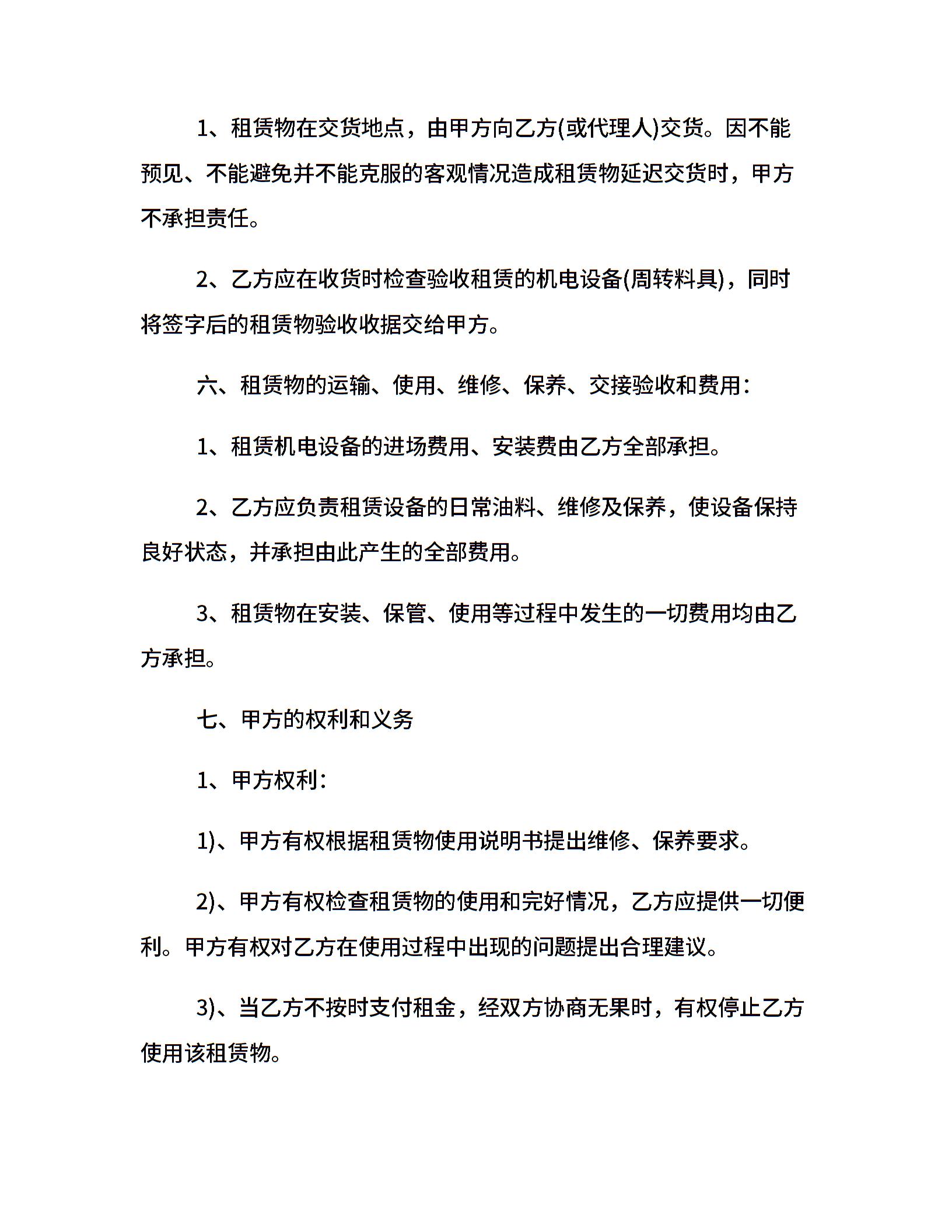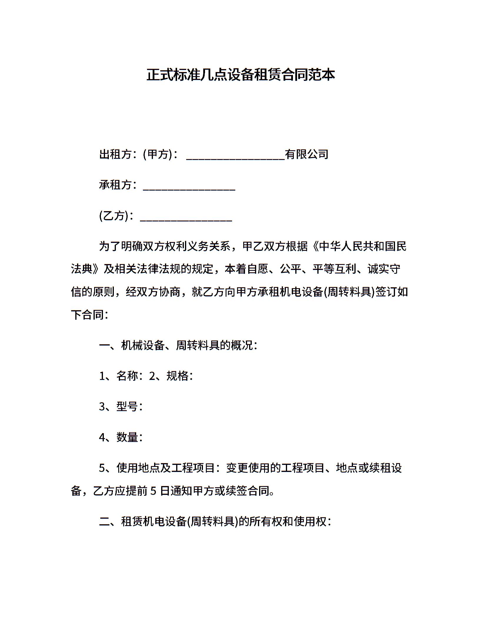 正式标准几点设备租赁合同范本