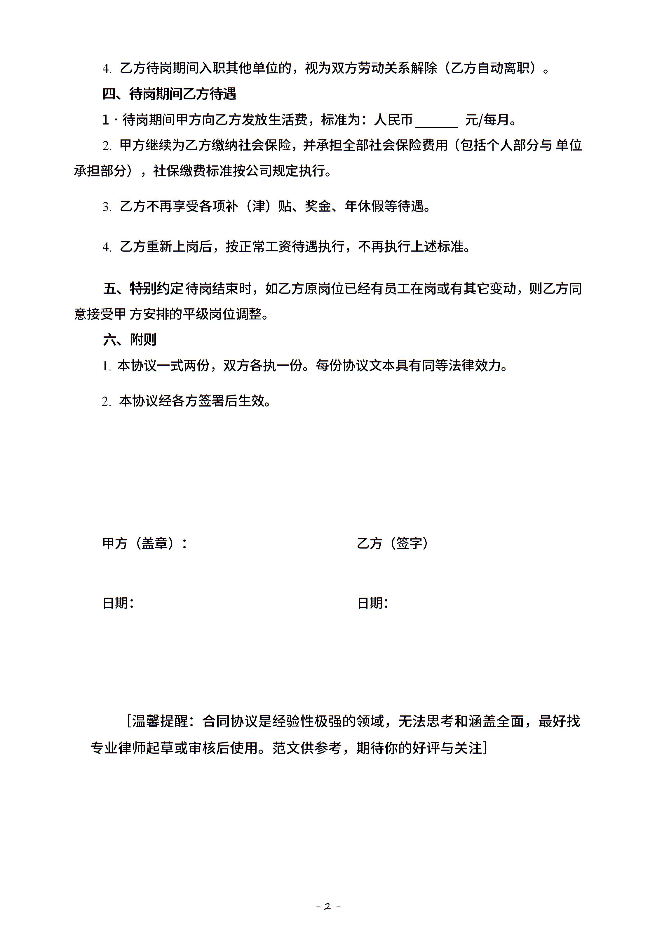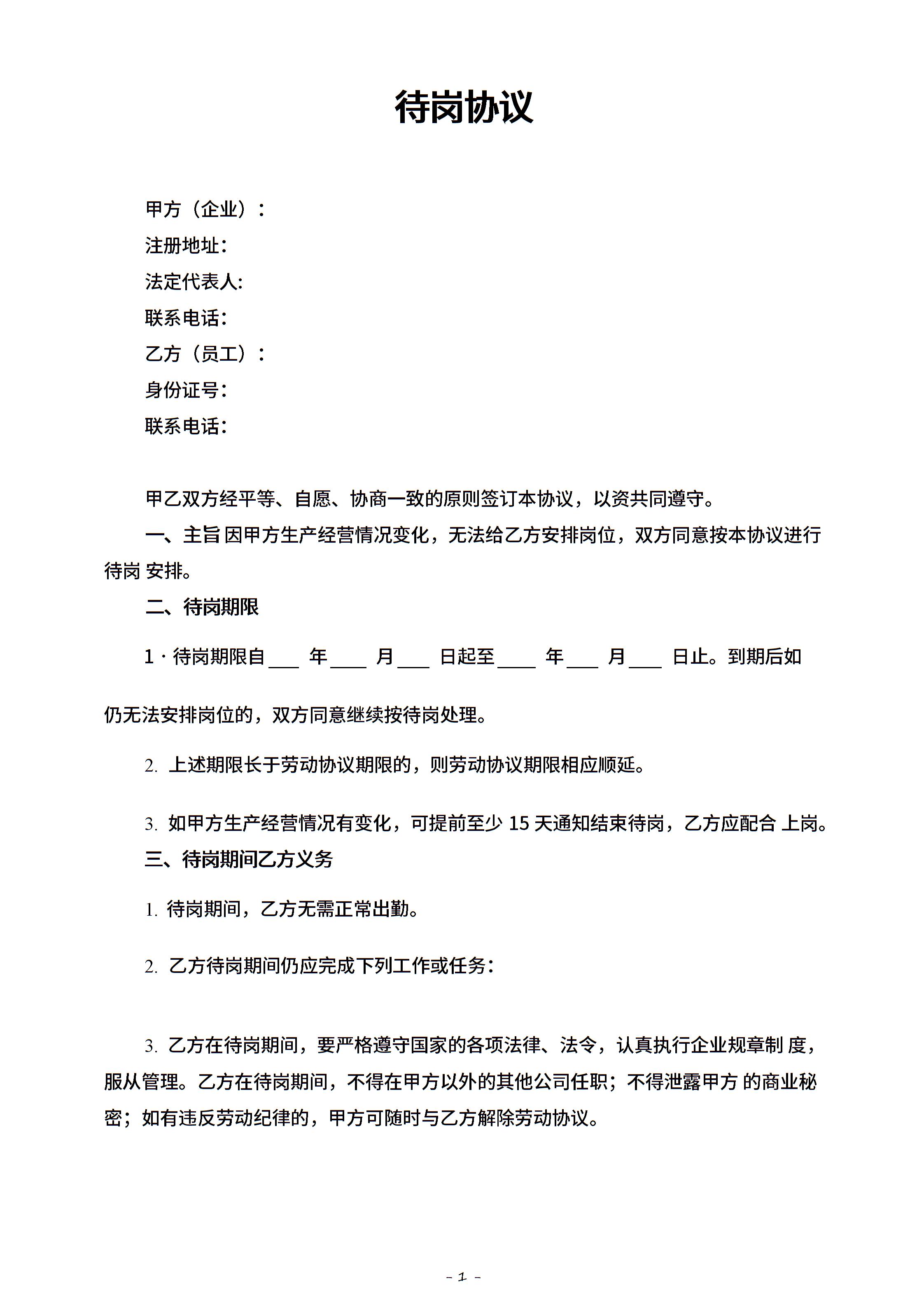 当前位置:量子办公 > 合同模板 > 待岗协议 >